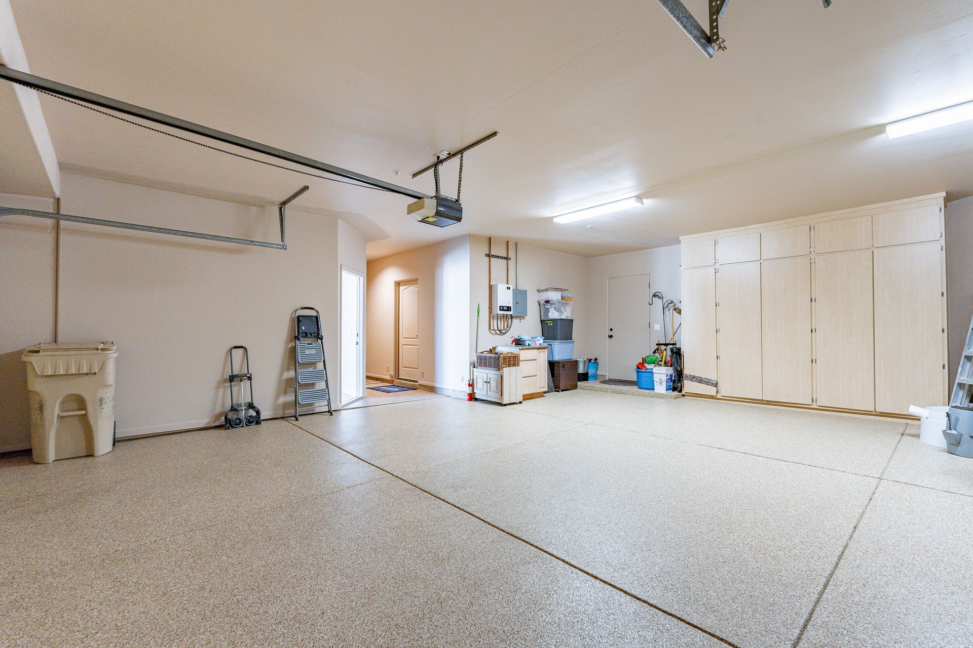 Car enthusiasts will appreciate the oversized three-car garage, which boasts an epoxy-coated floor, an abundance of built-in storage and a large paver driveway.