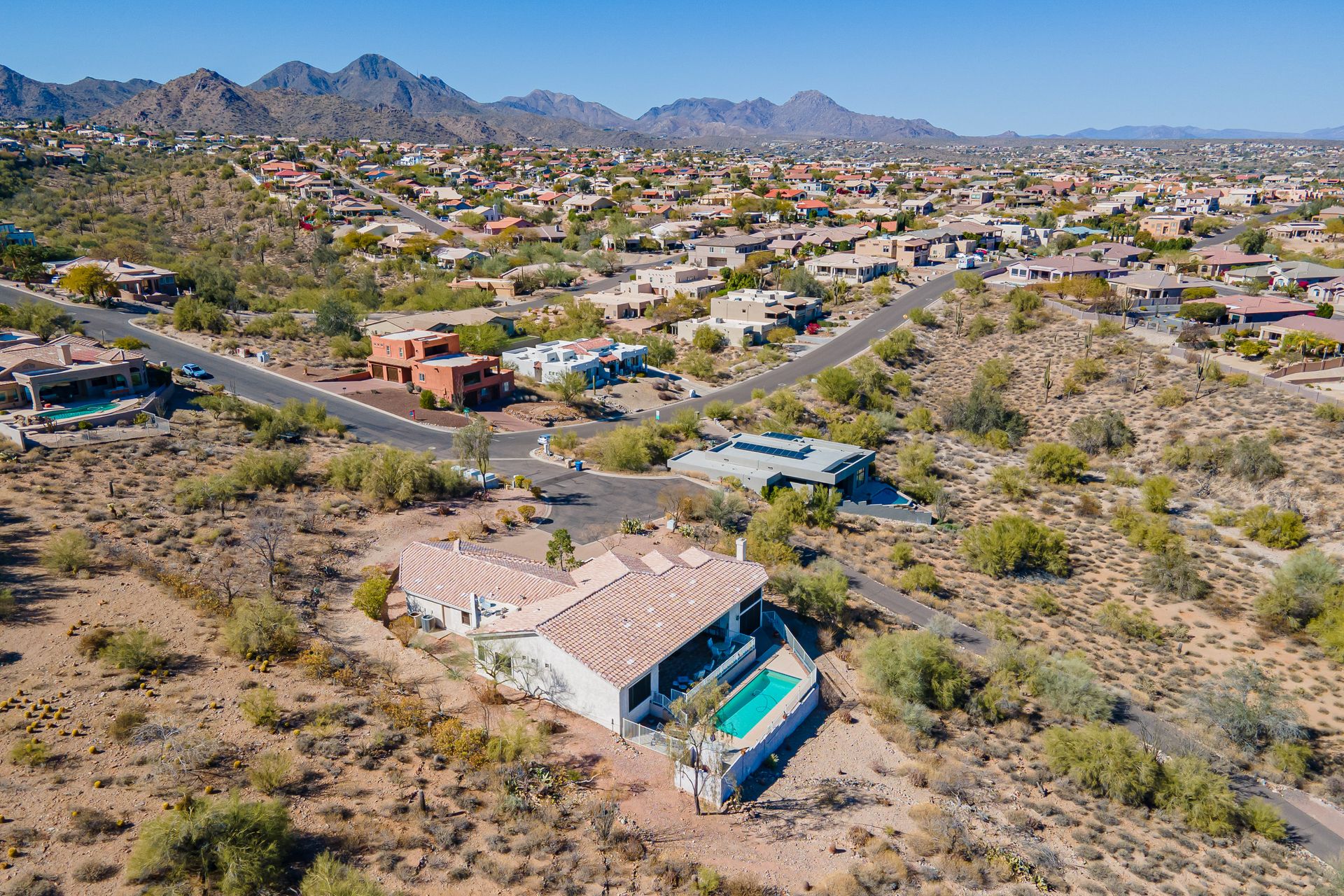 Exquisite Custom-Built Home on Premium 0.93 Acre Cul-de-Sac with Private Pool and Panoramic Mountain and Fountain Views! Discover a sanctuary where elegance meets functionality, offering a lifestyle of unparalleled comfort and sophistication.