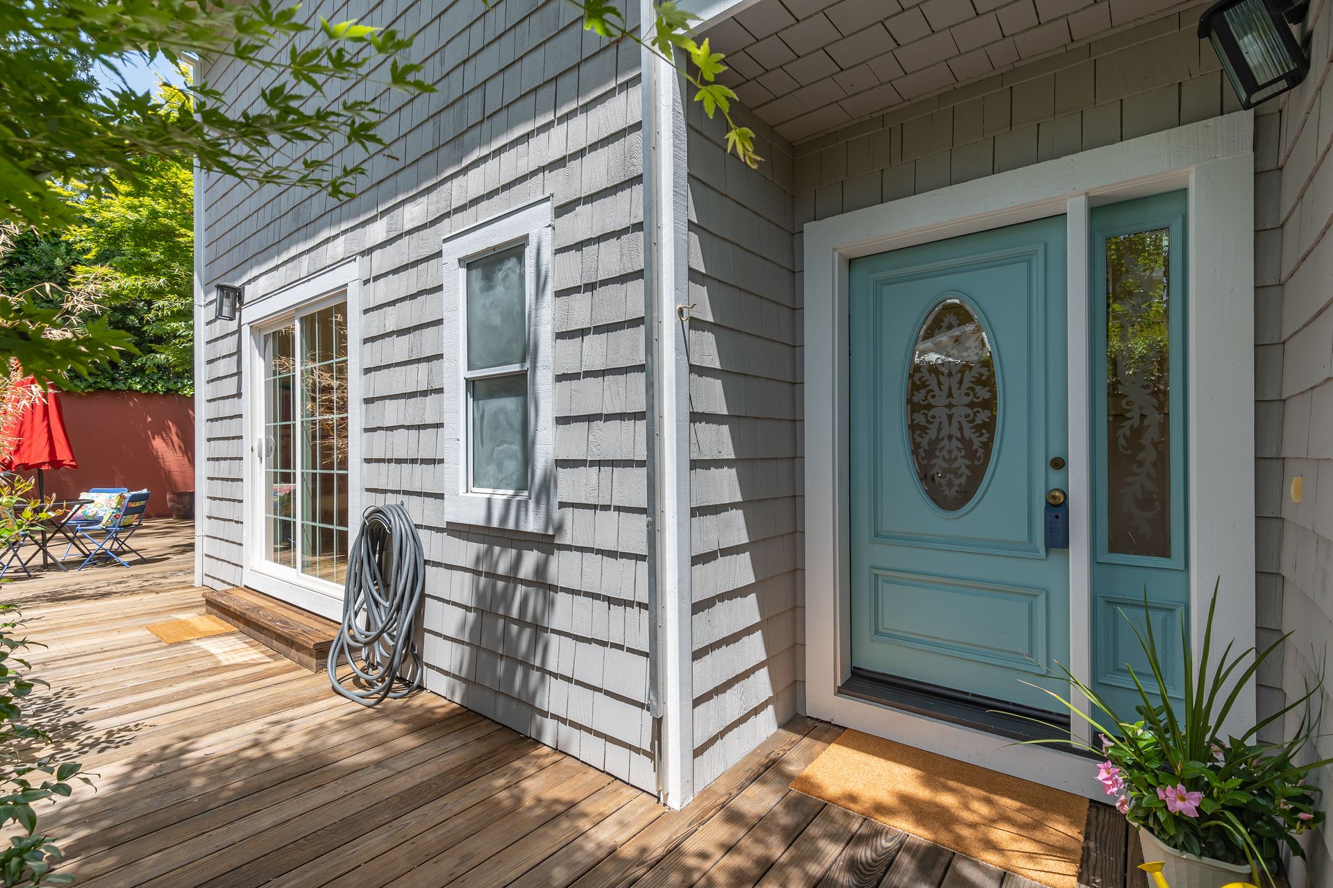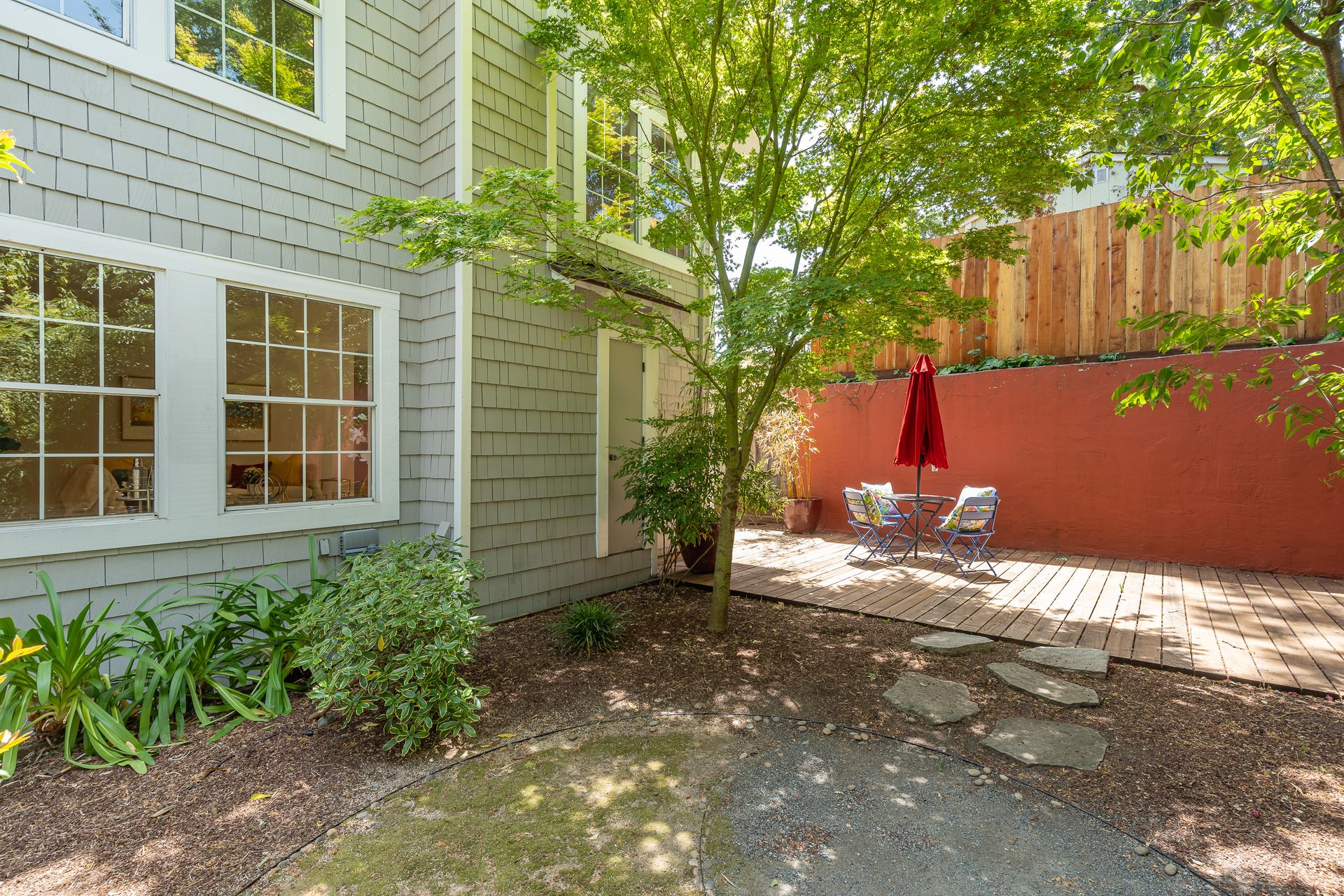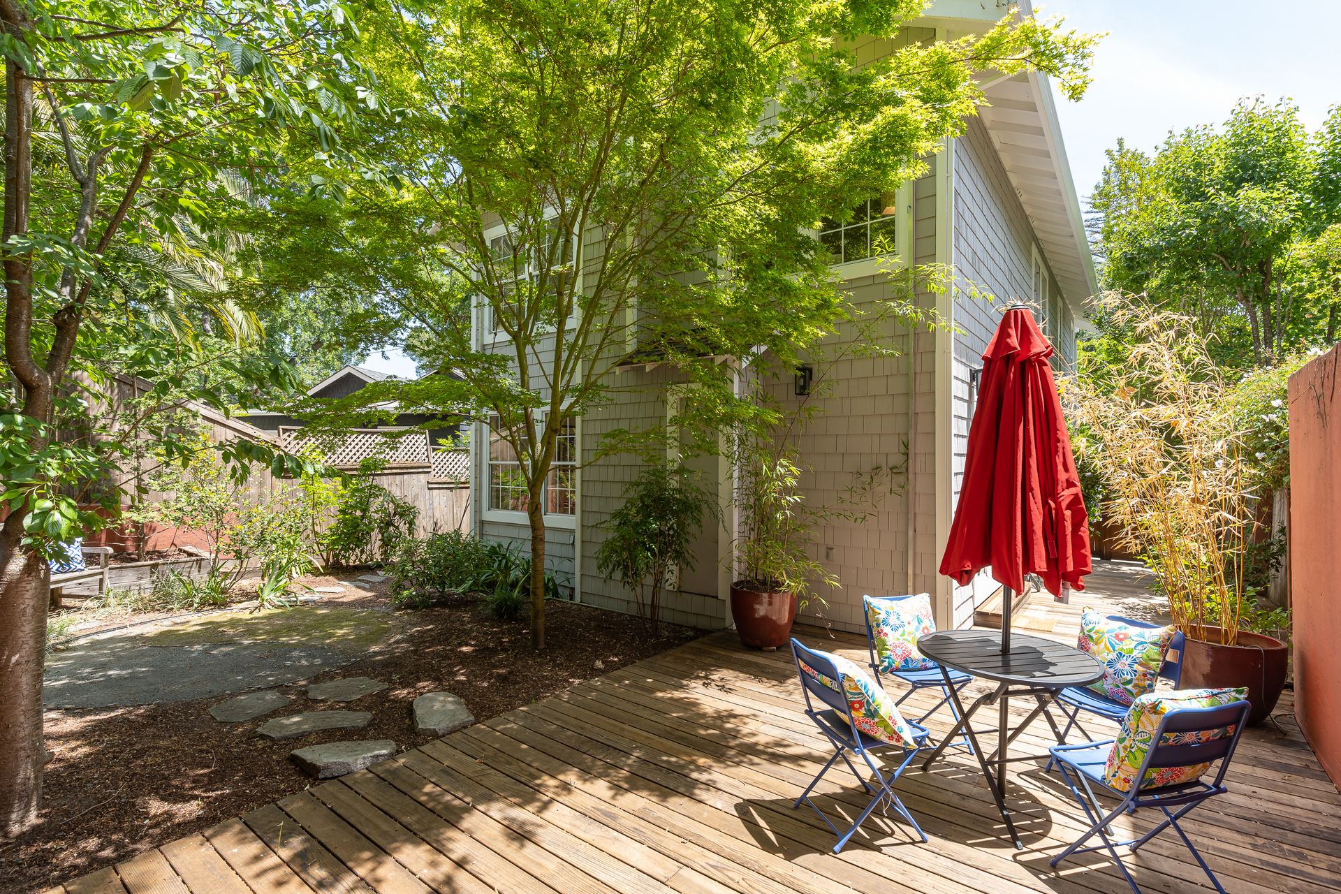 This beautiful contemporary grey shingle home is a delight! In a wonderful location on the flats, close to excellent schools and the towns of both San Anselmo and Fairfax. A formal entry is accessed through a private side gate! The kitchen has all stainless steel appliances, gas stove and recessed lighting. There's a spacious dining living room/family room with a gas fireplace and built-in bookcases and a powder room. All four bedrooms are upstairs; the primary bedroom has a walk in closet and lovely en suite bathroom with Italian porcelain tile floor, dual sinks, a spa tub and separate shower. There is also a romantic balcony to enjoy your coffee or glass of wine and a spacious separate laundry room. The private level backyard is water wise and low maintenance. There is a one car garage with more storage, plus parking for 3 more cars. Very well maintained with many upgrades, this is the one to see! Enjoy your Dream Home!