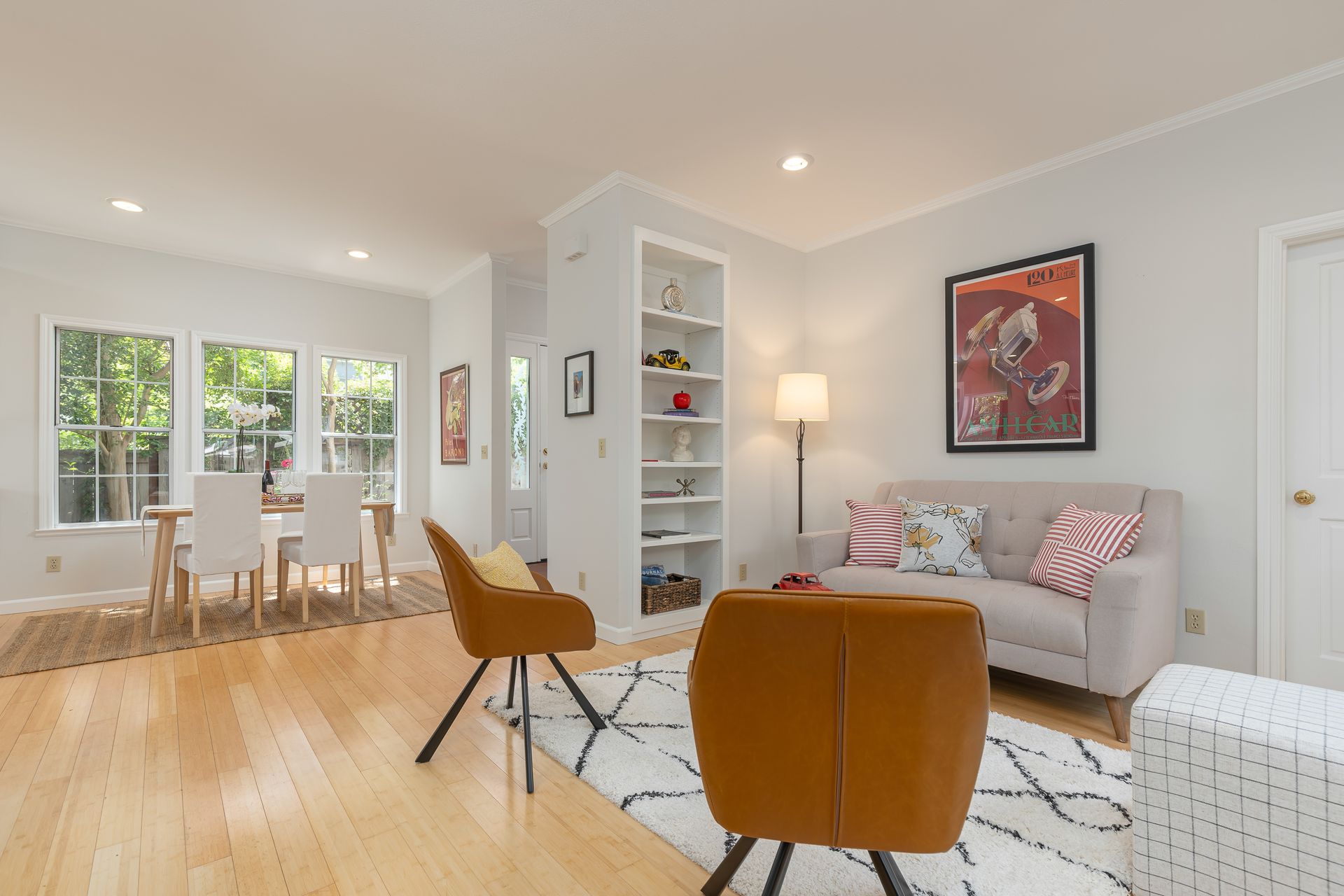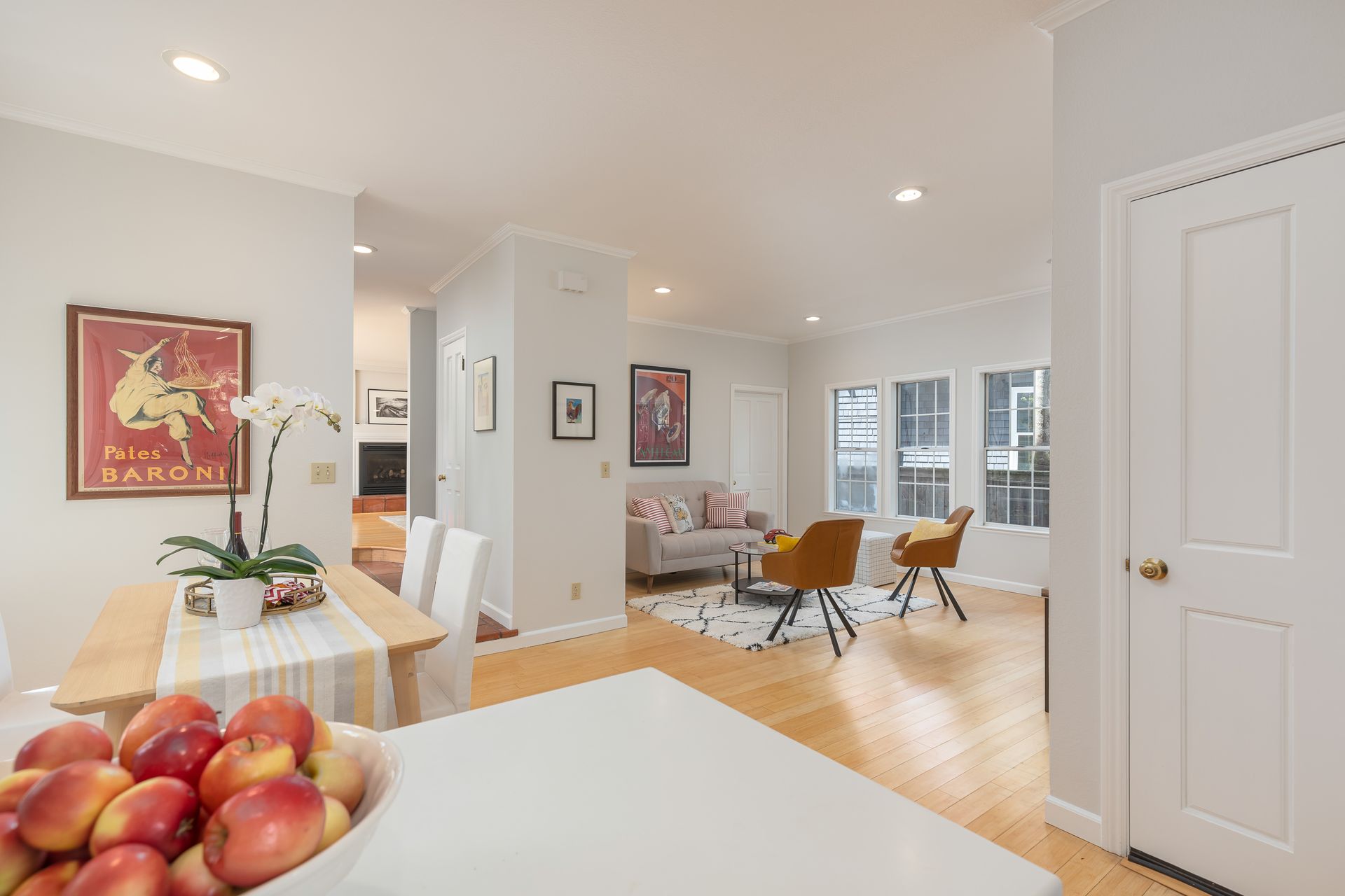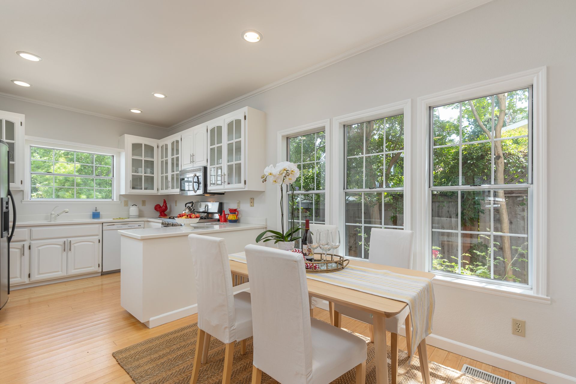 This beautiful contemporary grey shingle home is a delight! In a wonderful location on the flats, close to excellent schools and the towns of both San Anselmo and Fairfax. A formal entry is accessed through a private side gate! The kitchen has all stainless steel appliances, gas stove and recessed lighting. There's a spacious dining living room/family room with a gas fireplace and built-in bookcases and a powder room. All four bedrooms are upstairs; the primary bedroom has a walk in closet and lovely en suite bathroom with Italian porcelain tile floor, dual sinks, a spa tub and separate shower. There is also a romantic balcony to enjoy your coffee or glass of wine and a spacious separate laundry room. The private level backyard is water wise and low maintenance. There is a one car garage with more storage, plus parking for 3 more cars. Very well maintained with many upgrades, this is the one to see! Enjoy your Dream Home!