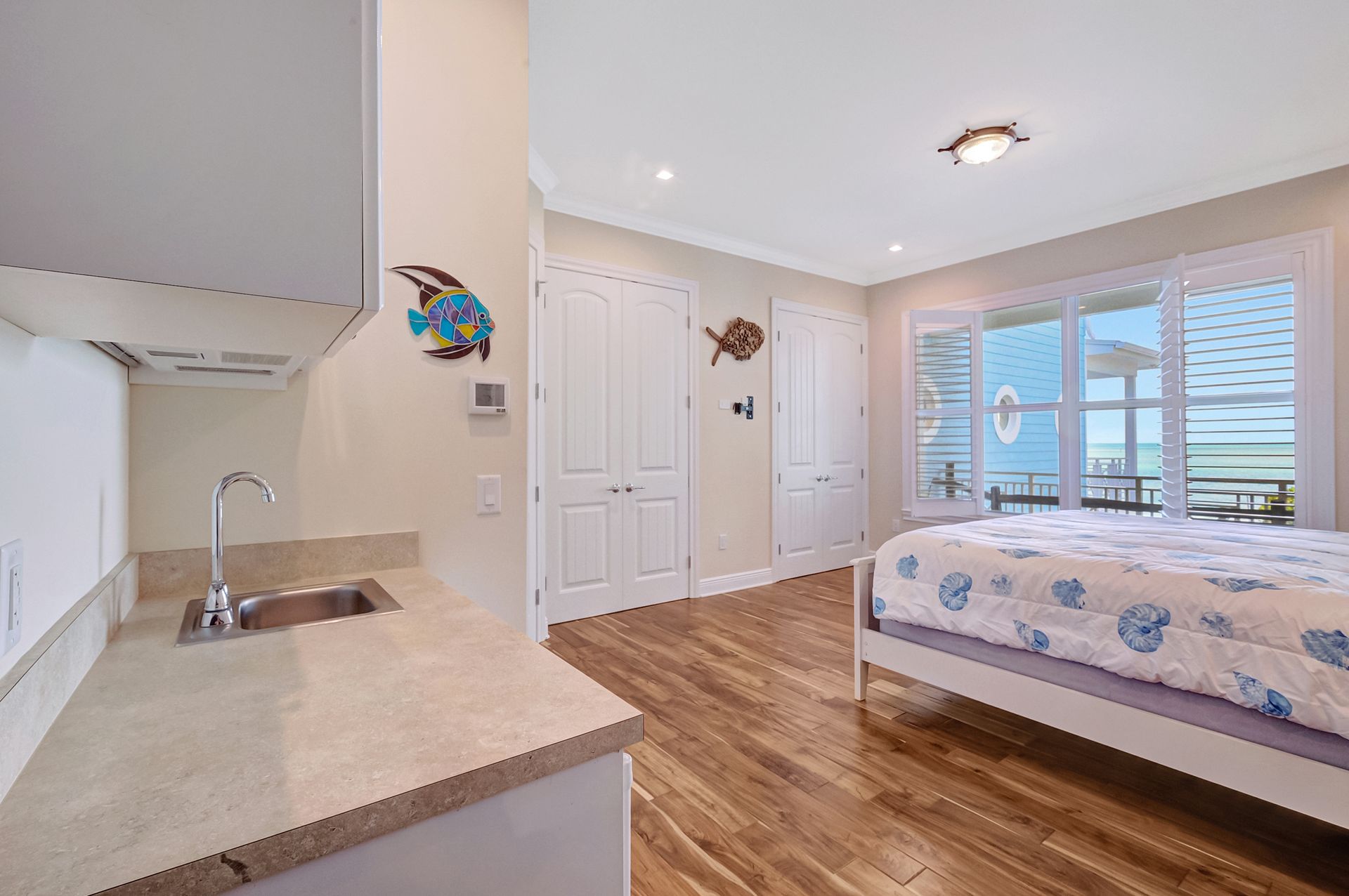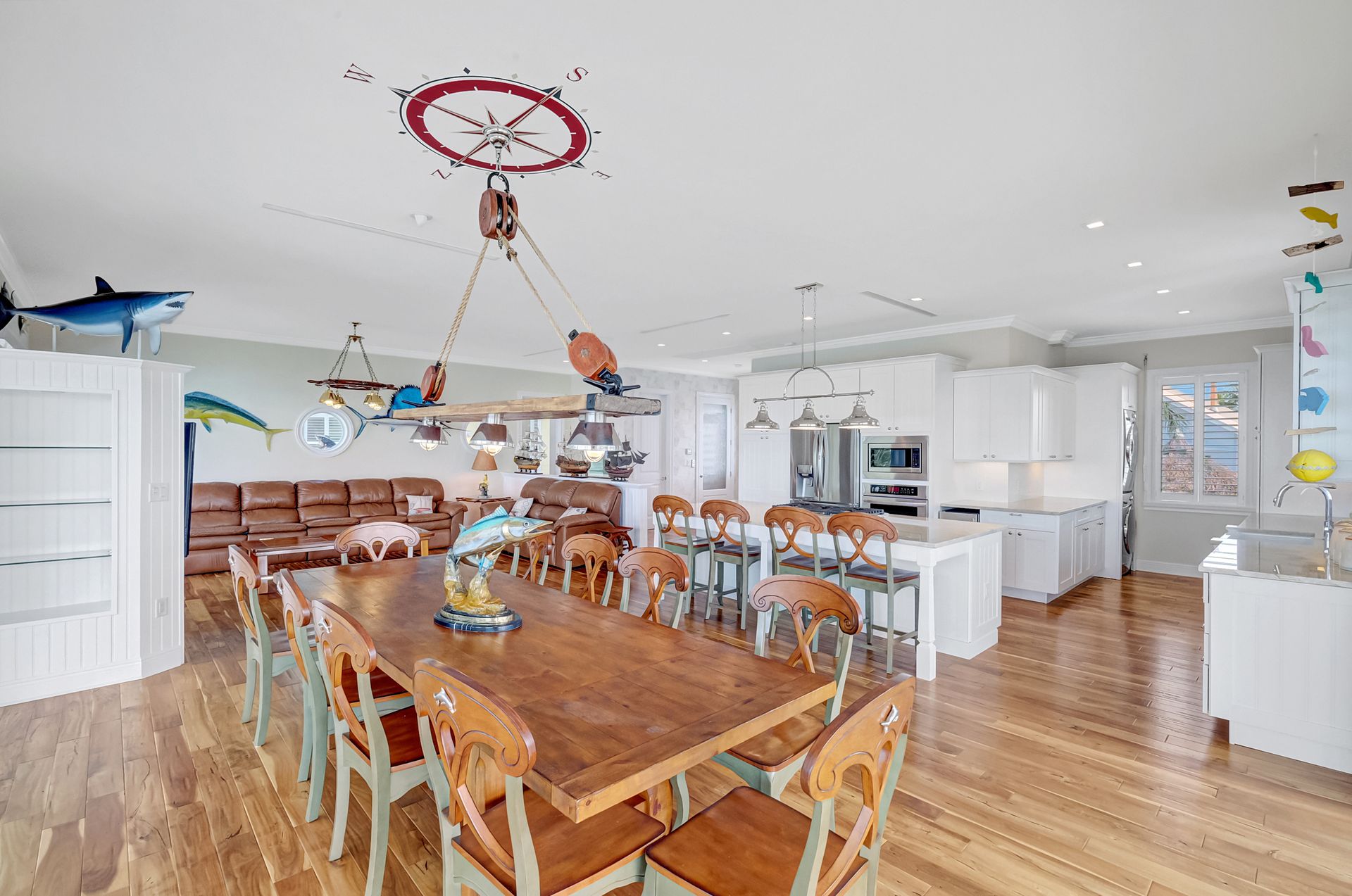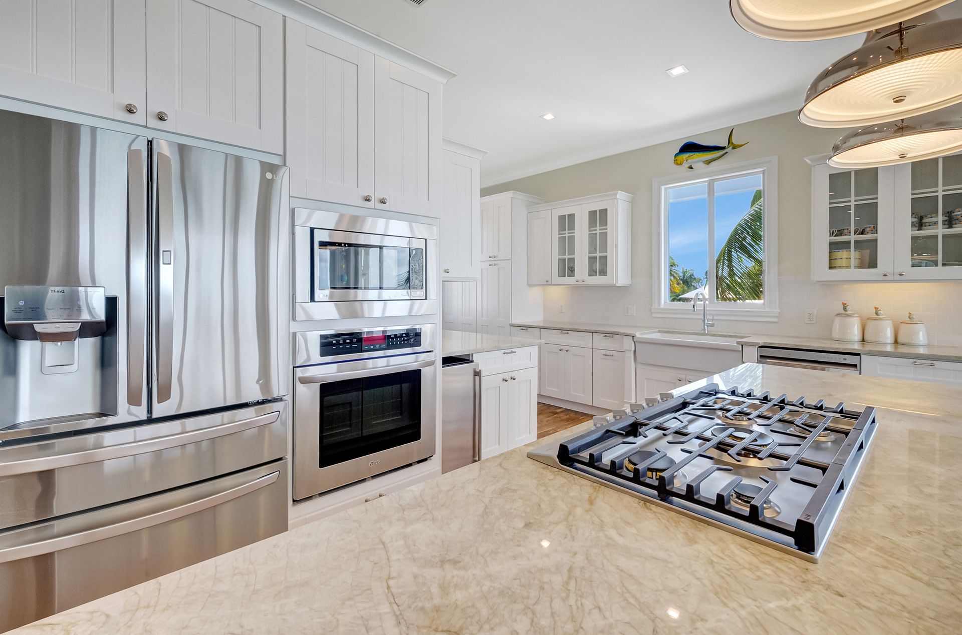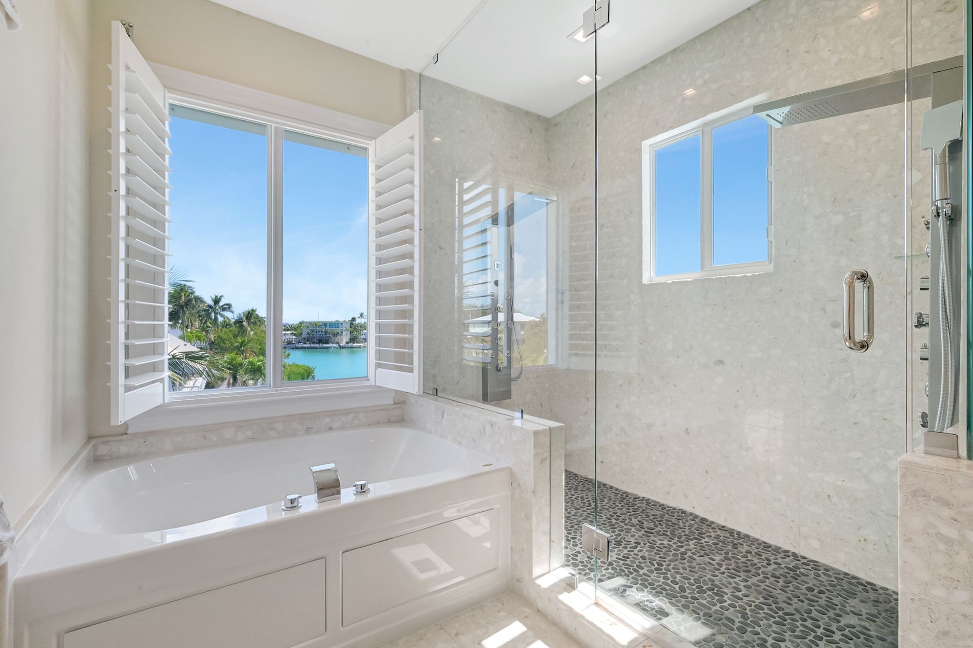 Inside, the home features eight spacious bedrooms, each with its own en-suite bath, plus two additional half baths for convenience. The primary suite is a private sanctuary with a spa-inspired bath, while the open layout showcases spectacular water views through impact windows and sliding glass doors. An elevator ensures effortless access to all levels, and the large balcony invites you to savor the views. The gourmet kitchen, complete with high-end stainless steel appliances and gas cooktop, is a chef’s delight, complemented by an outdoor kitchen for alfresco entertaining. With its seamless indoor-outdoor design and unmatched location, this property is the epitome of luxurious Keys living.