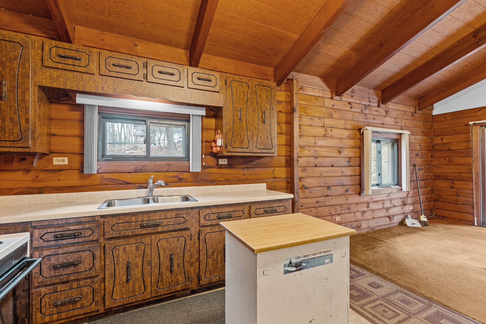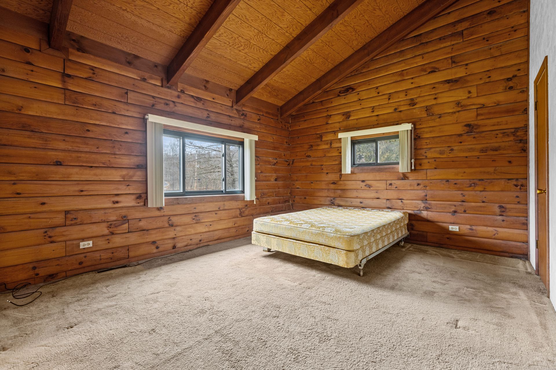 If location is everything, this is the home for you! Positioned perfectly, with quick access to the new 576 Southern Beltway while maintaining its immediate proximity to Southpointe! Over a half-acre of scenic land, lots of off-street parking plus an oversized two-car garage, there is a lot to love about 163 Cecil-Henderson Road! Custom-built in 1983 with true tongue-in-groove cedar log construction, this home is the perfect balance of rustic and residential! Three bedrooms and two full bathrooms upstairs, along with an open, flowing floorplan in the main living areas. A cast iron wood burner is the centerpiece of the oversized living room, adding charm and supplemental heat to the forced air HVAC system. Enjoy evenings on the expansive, cathedral-covered side patio. The lower level presents a bedroom, a third fully plumbed bathroom, tons of storage and room for more finishing! This move-in ready home was meticulously maintained and ready to be cosmetically updated by its next owner.