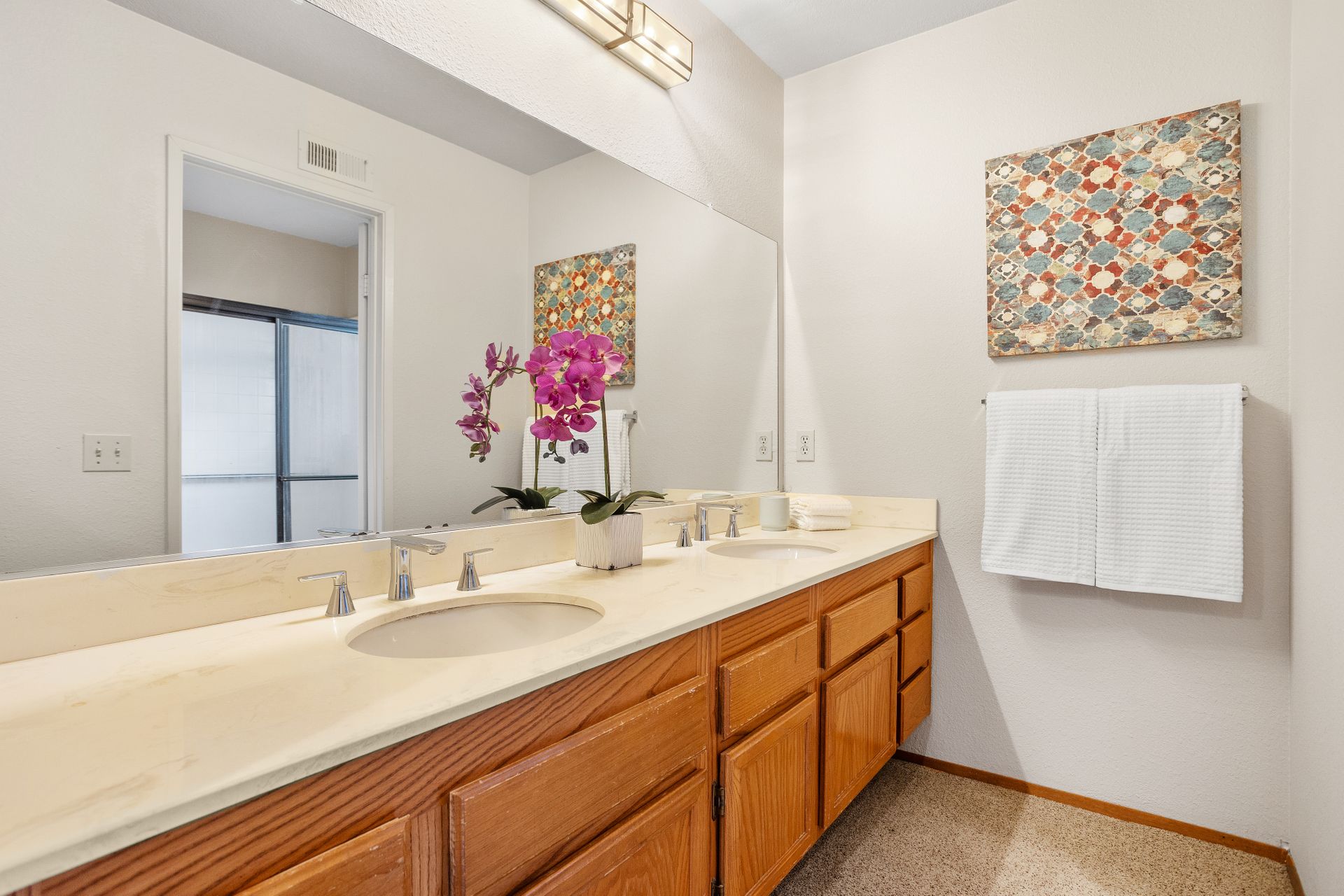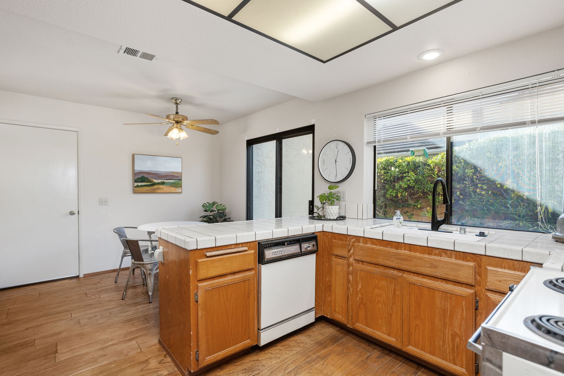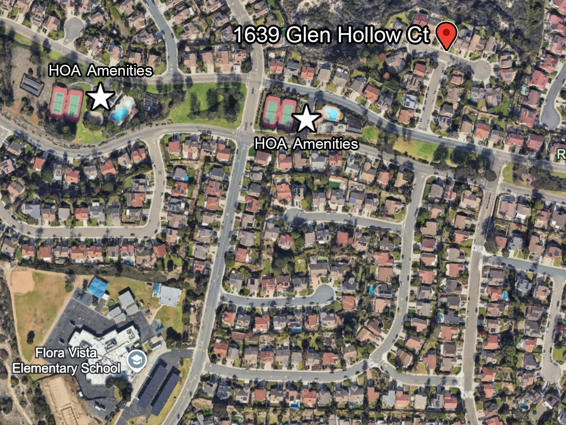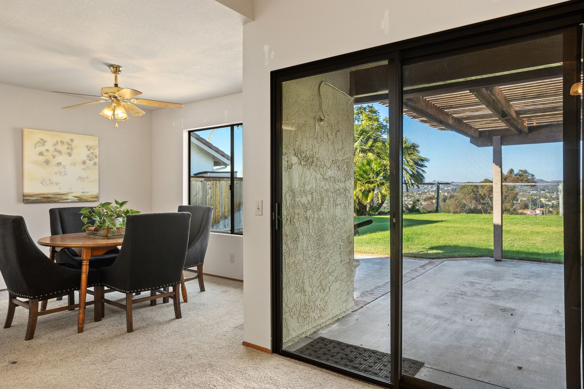 Awesome location in a double cul-de-sac, close to great schools and community amenities! This single level home has sit-down views for miles both inside and out- from the hills of La Costa to the mountains of Camp Pendleton! First time on the market! Enjoy a large great room with vaulted ceilings, fireplace and sliding door to a oversized patio that spans the entire back of the home providing ample entertaining areas for ultimate view enjoyment. The primary bedroom is also large with double doors, two closets, another sliding door to the patio and en-suite bath with dual sinks and separate shower area. The kitchen has an eat-in dining area and a third sliding door to yet another side patio! Other features include a dining room with views, two secondary bedrooms- one with double doors that makes a great den, and an attached two-car garage with laundry facilities. Community amenities include two pools, four tennis courts, pickle ball courts and two playgrounds all for a low HOA of $67 per month. Well located between Flora Vista Elementary and DiegueƱo Middle Schools and within the San Dieguito Union High School District. This convenient location provides easy access to the retail shops and restaurants of El Camino Real, 5 freeway access at Manchester, and is approximately three miles to world class Encinitas beaches and downtown fun on the Coast Highway 101!