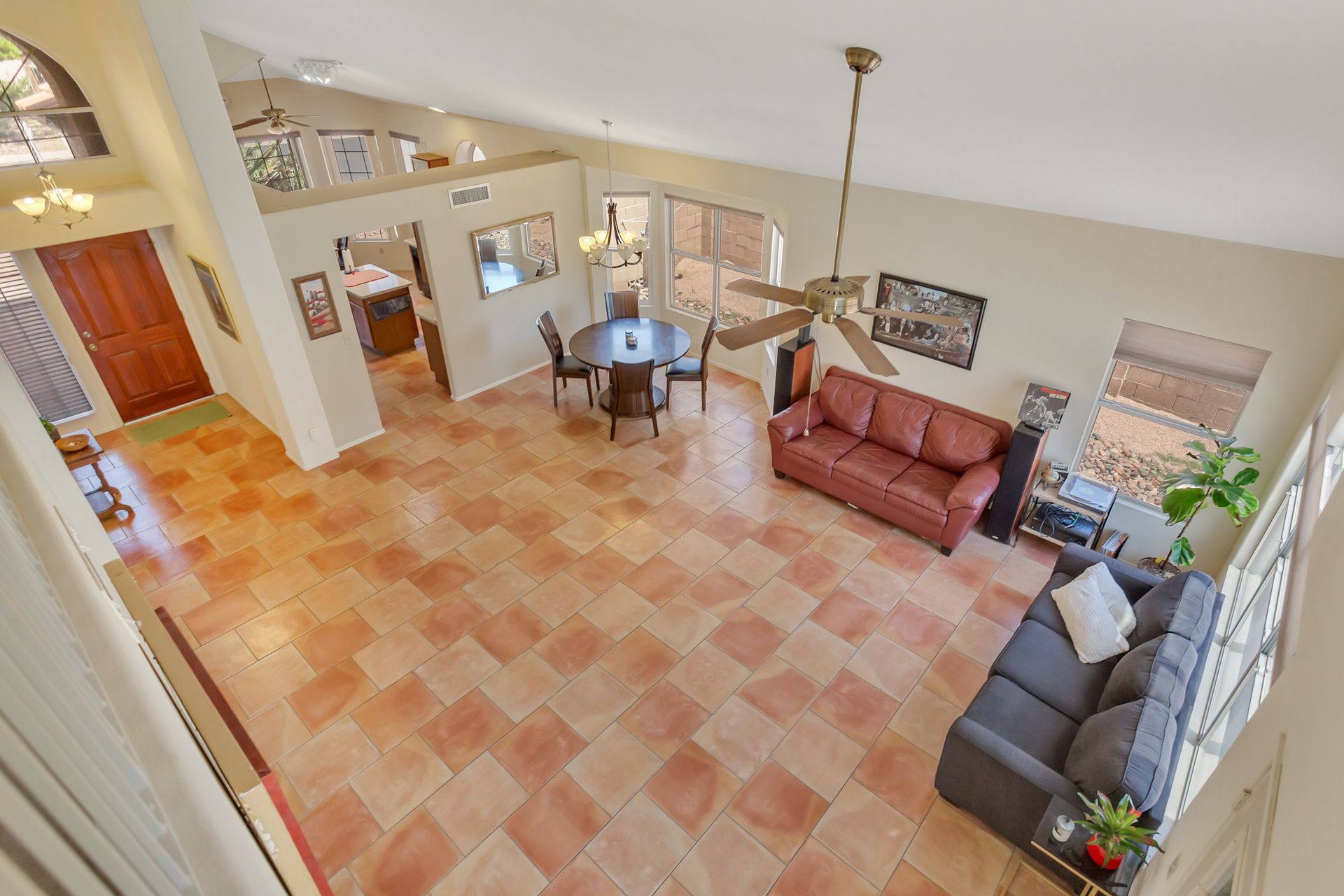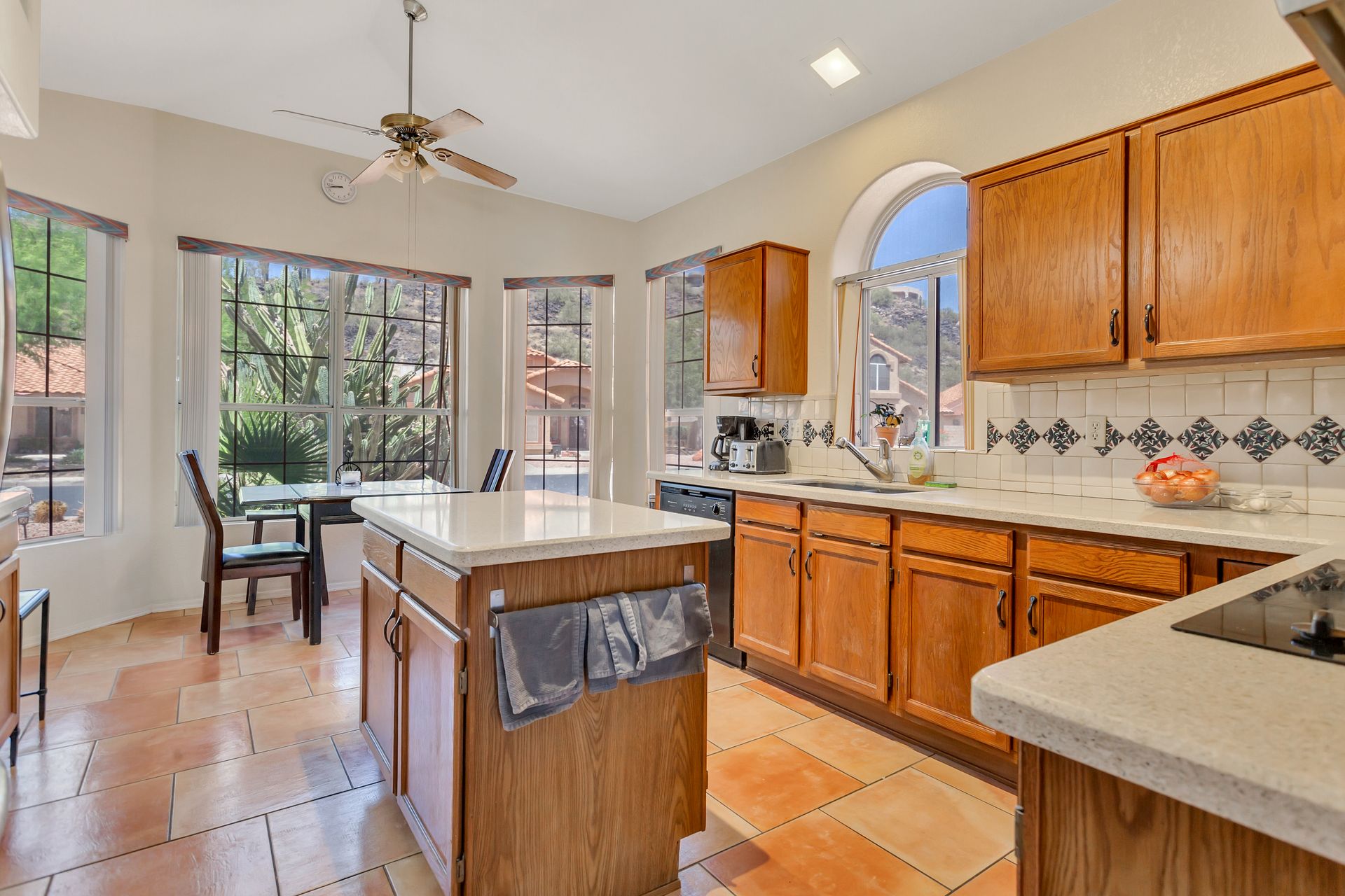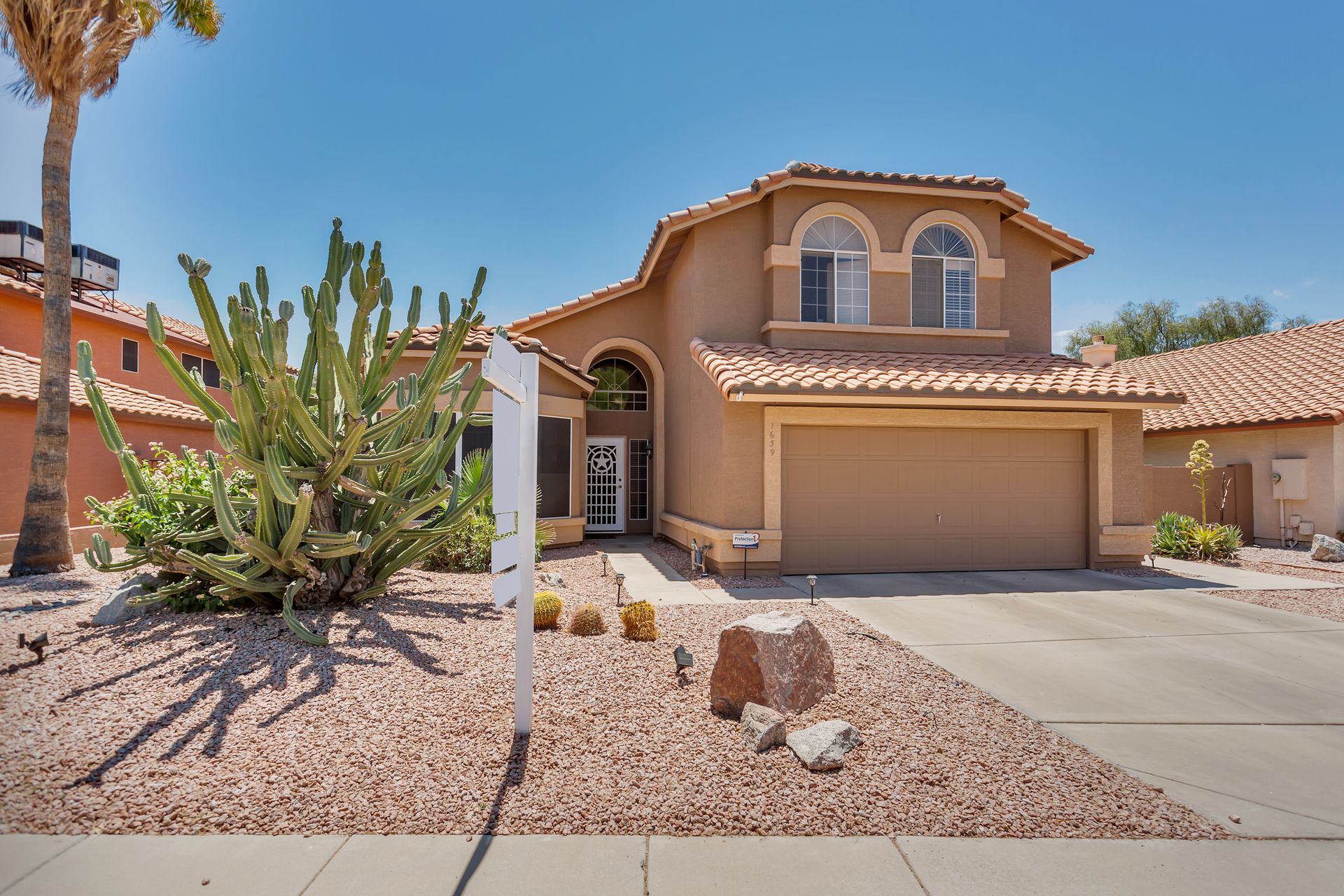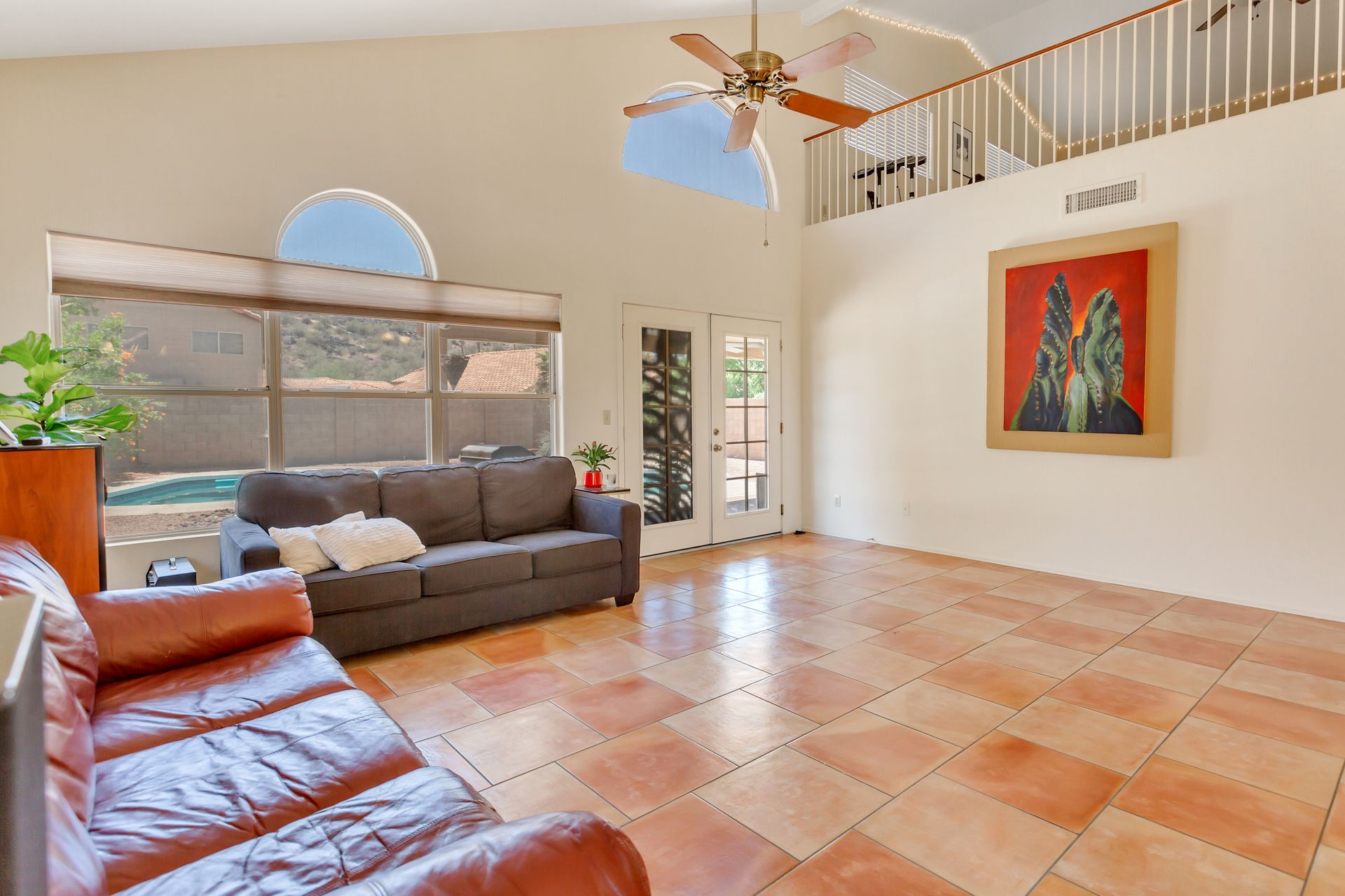 Enjoy dazzling mountain views from every angle of this desirable Moon Mountain Vista home! With three bedrooms, two and a half-bathrooms, and more than 2,200 square-feet of livable space, this home has been well-maintained and features soaring vaulted ceilings, and a large great room that flows into an eat-in kitchen. Bay windows have been placed throughout the home, including the rare downstairs master suite which looks out to the rear yard. The remaining rooms and full bathroom are located upstairs off the sizable loft. Enjoy outdoor living in the backyard with a covered patio for relaxing and enjoying the Arizona weather, and the private pebble tec pool to cool off during those hot summer days. The possibilities are endless, come use your creative mind to build your dream home!