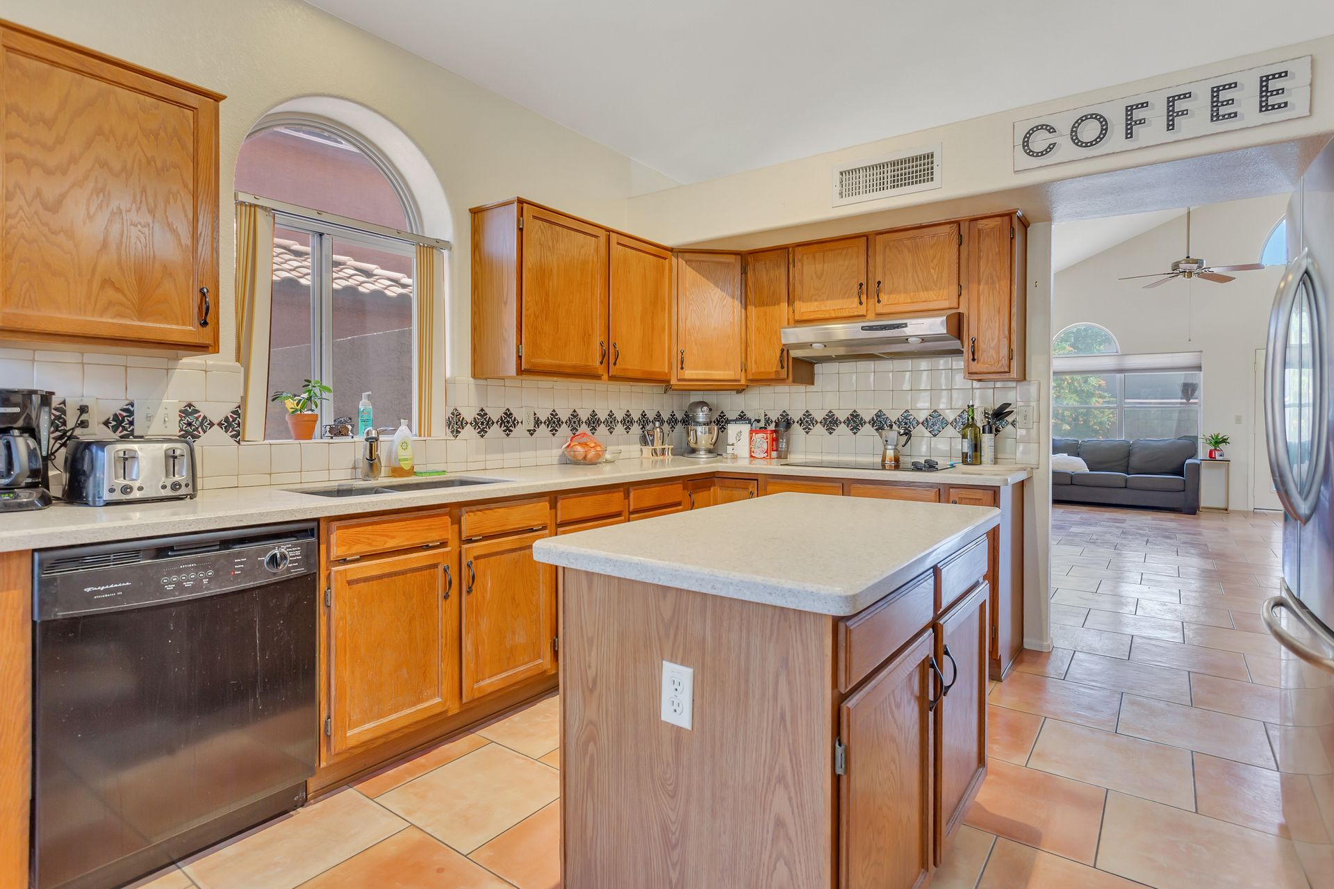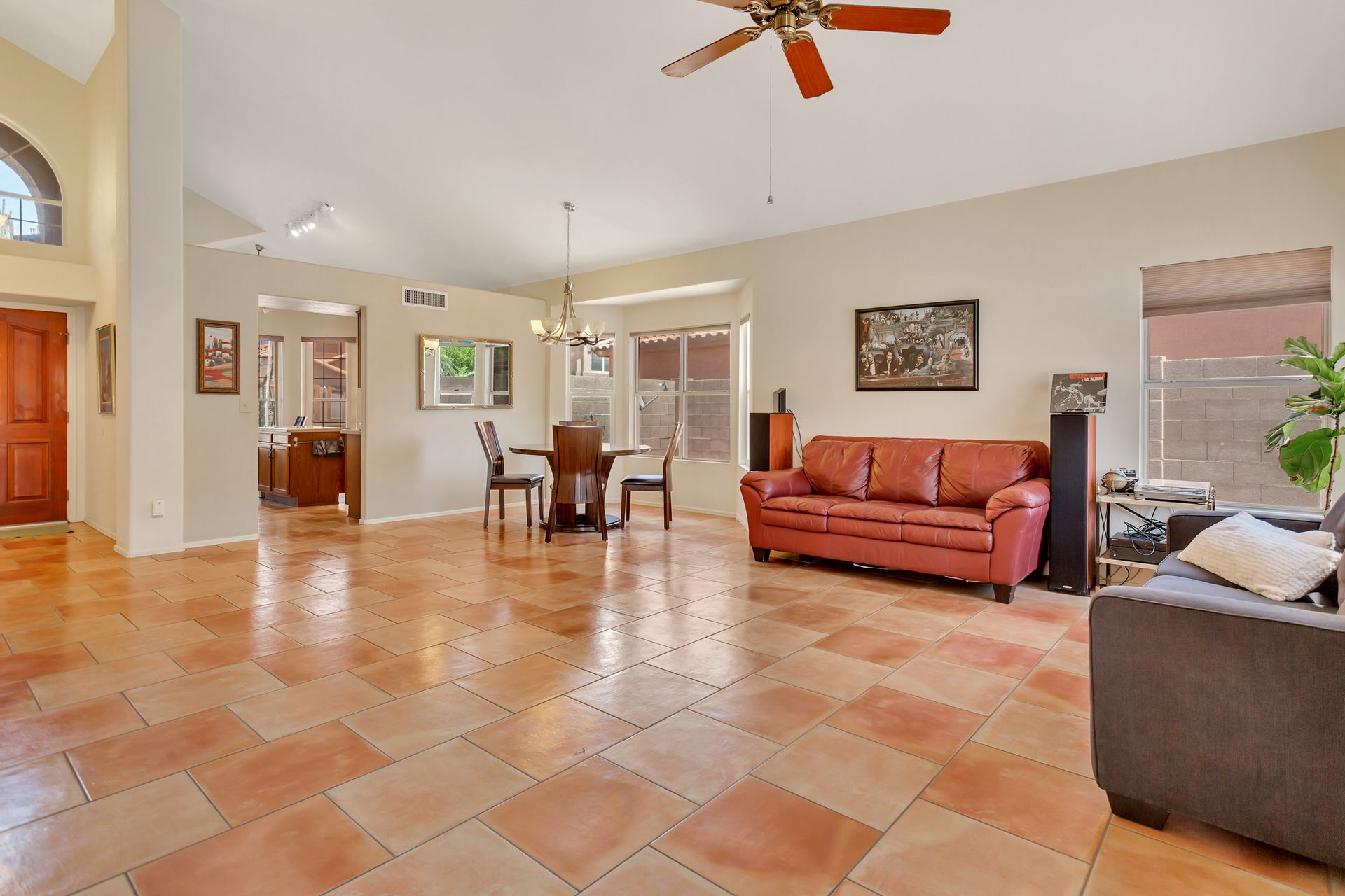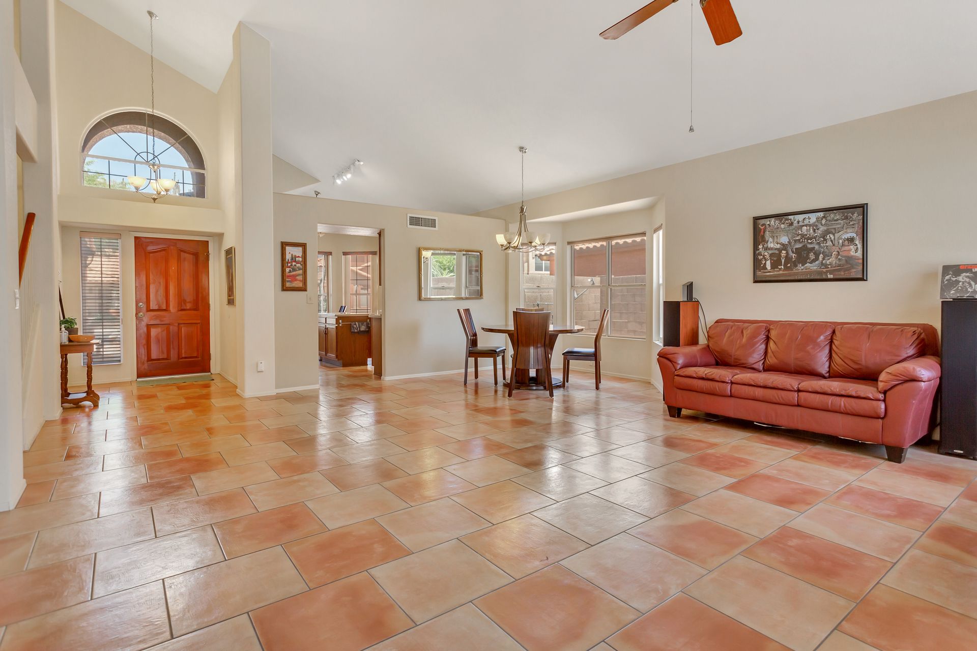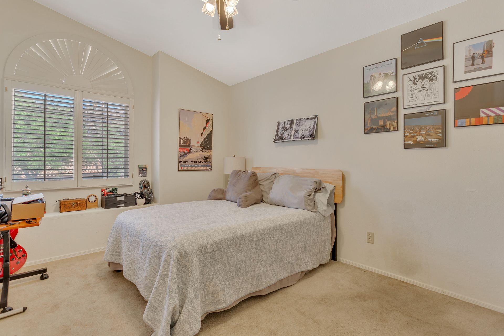 Enjoy dazzling mountain views from every angle of this desirable Moon Mountain Vista home! With three bedrooms, two and a half-bathrooms, and more than 2,200 square-feet of livable space, this home has been well-maintained and features soaring vaulted ceilings, and a large great room that flows into an eat-in kitchen. Bay windows have been placed throughout the home, including the rare downstairs master suite which looks out to the rear yard. The remaining rooms and full bathroom are located upstairs off the sizable loft. Enjoy outdoor living in the backyard with a covered patio for relaxing and enjoying the Arizona weather, and the private pebble tec pool to cool off during those hot summer days. The possibilities are endless, come use your creative mind to build your dream home!