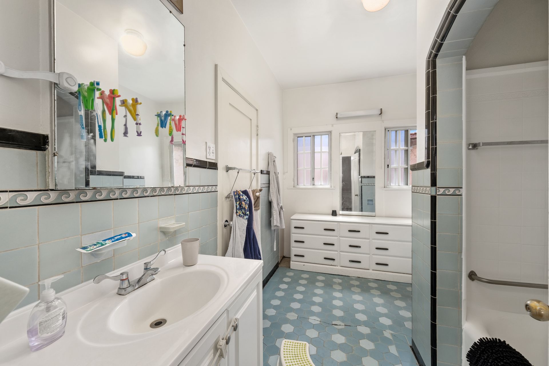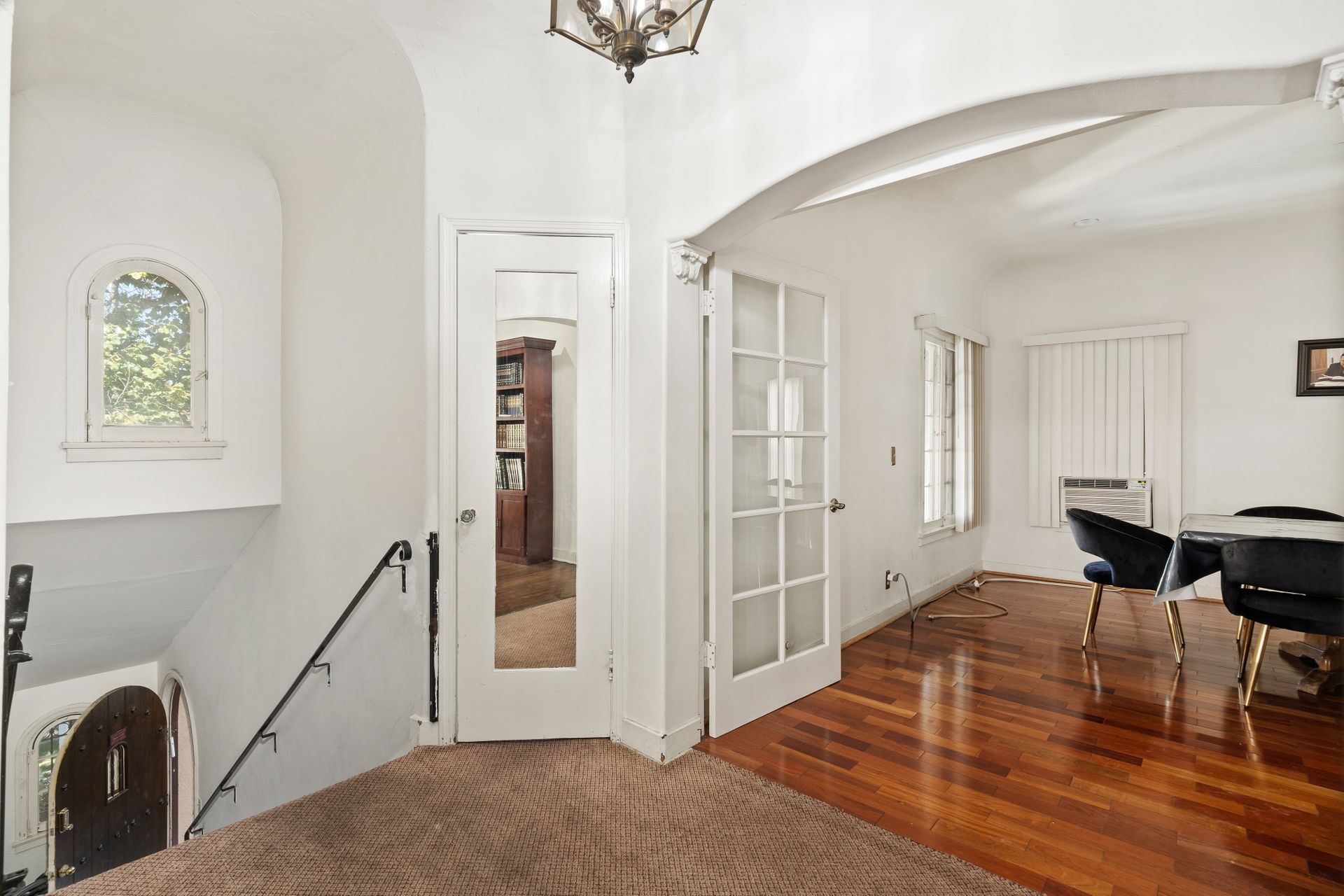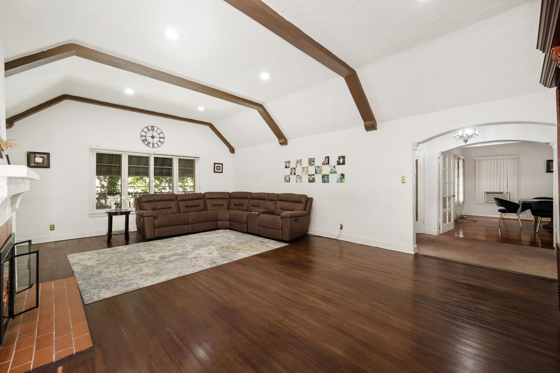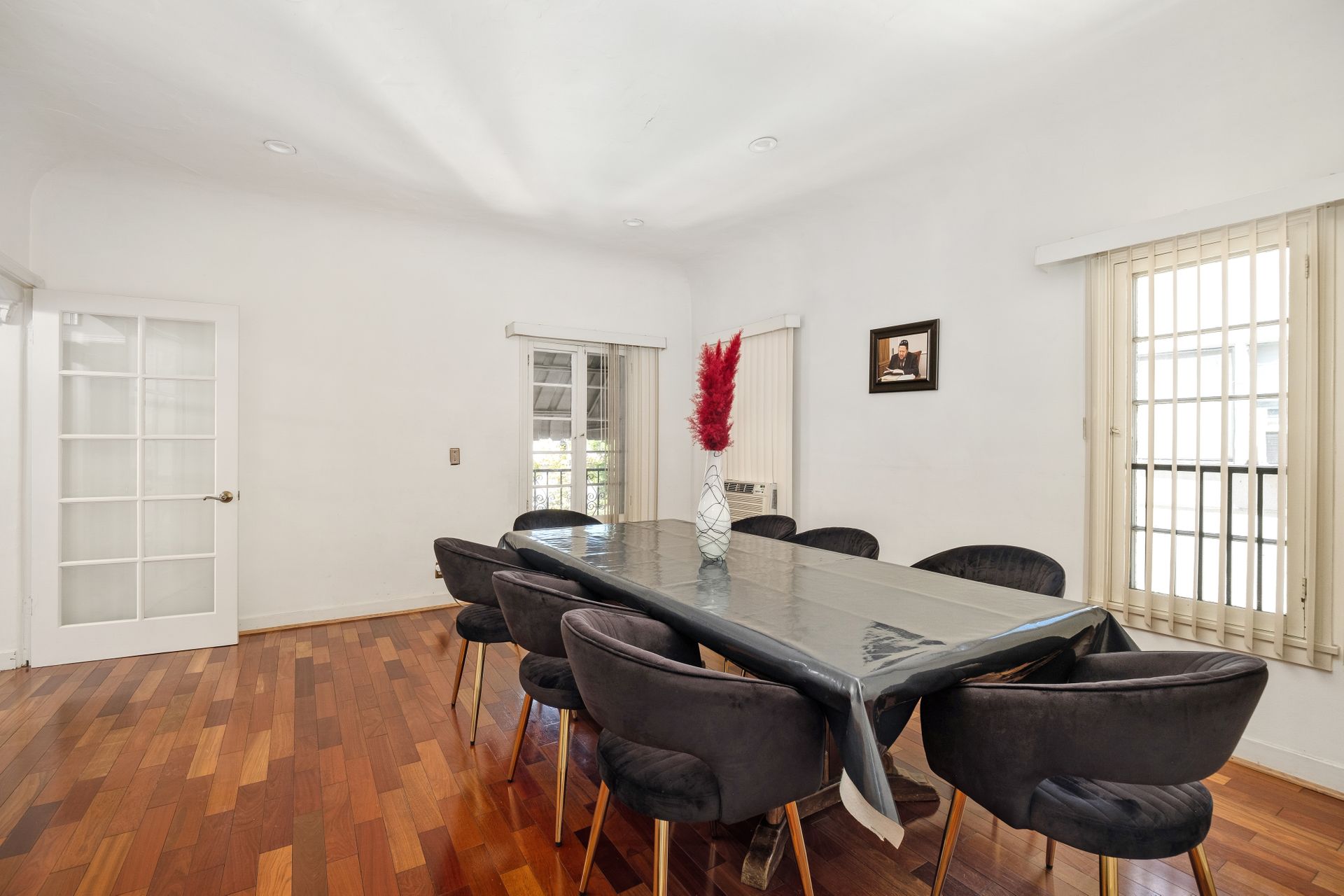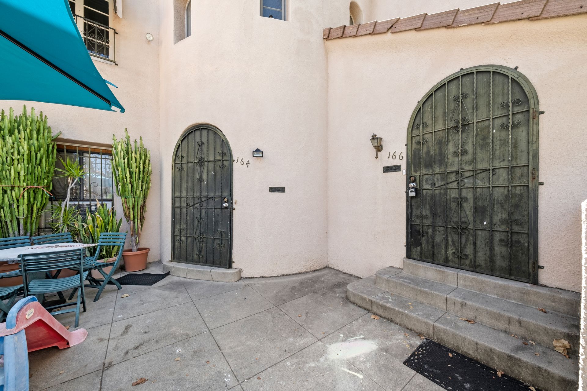 Spanish-style Duplex spanning over 5,000 square feet located on the sought-after Mansfield Avenue. This unique property showcases its original floor plan, with each unit boasting three spacious bedrooms and two baths, while the upper unit offers an additional fourth room above the driveway, a little office in the front tower and a powder room. The upstairs living room is adorned with high ceilings with wooden beams and a character-rich fireplace. Adjacent is a generously sized formal dining room. A well-appointed kitchen, abundant in storage, connects to a breakfast room on one side and a laundry room on the other. The property features two double-car garages and a charming yard.