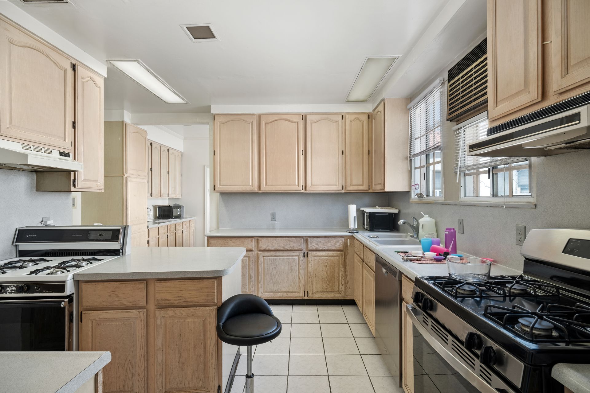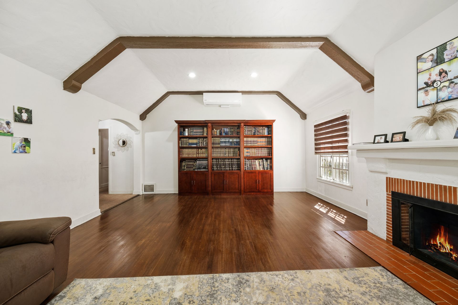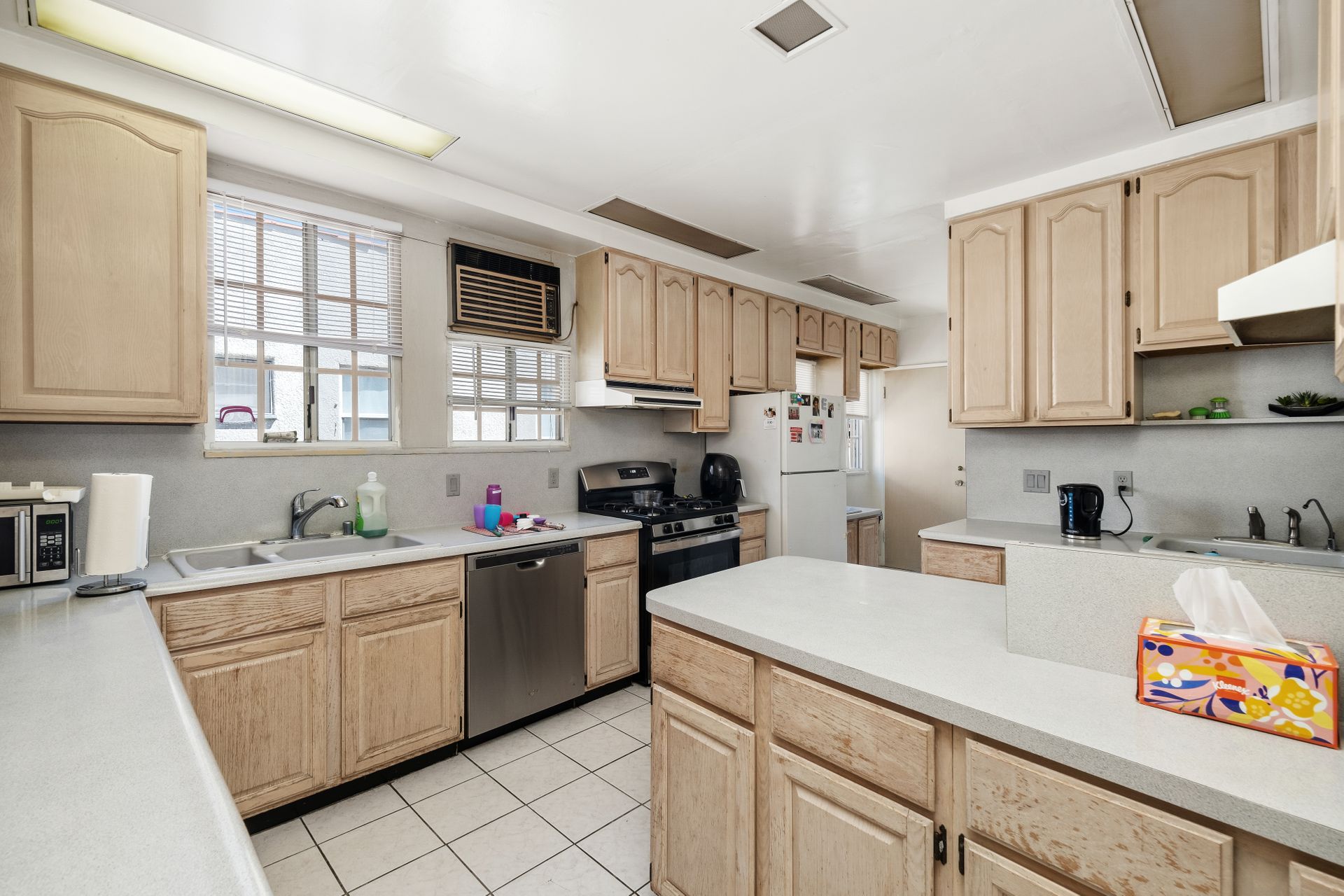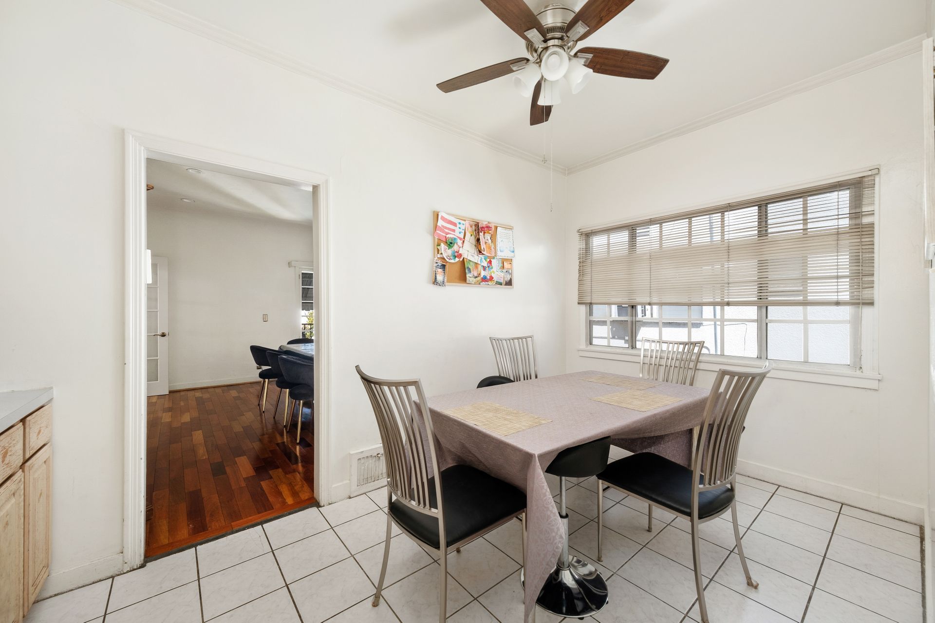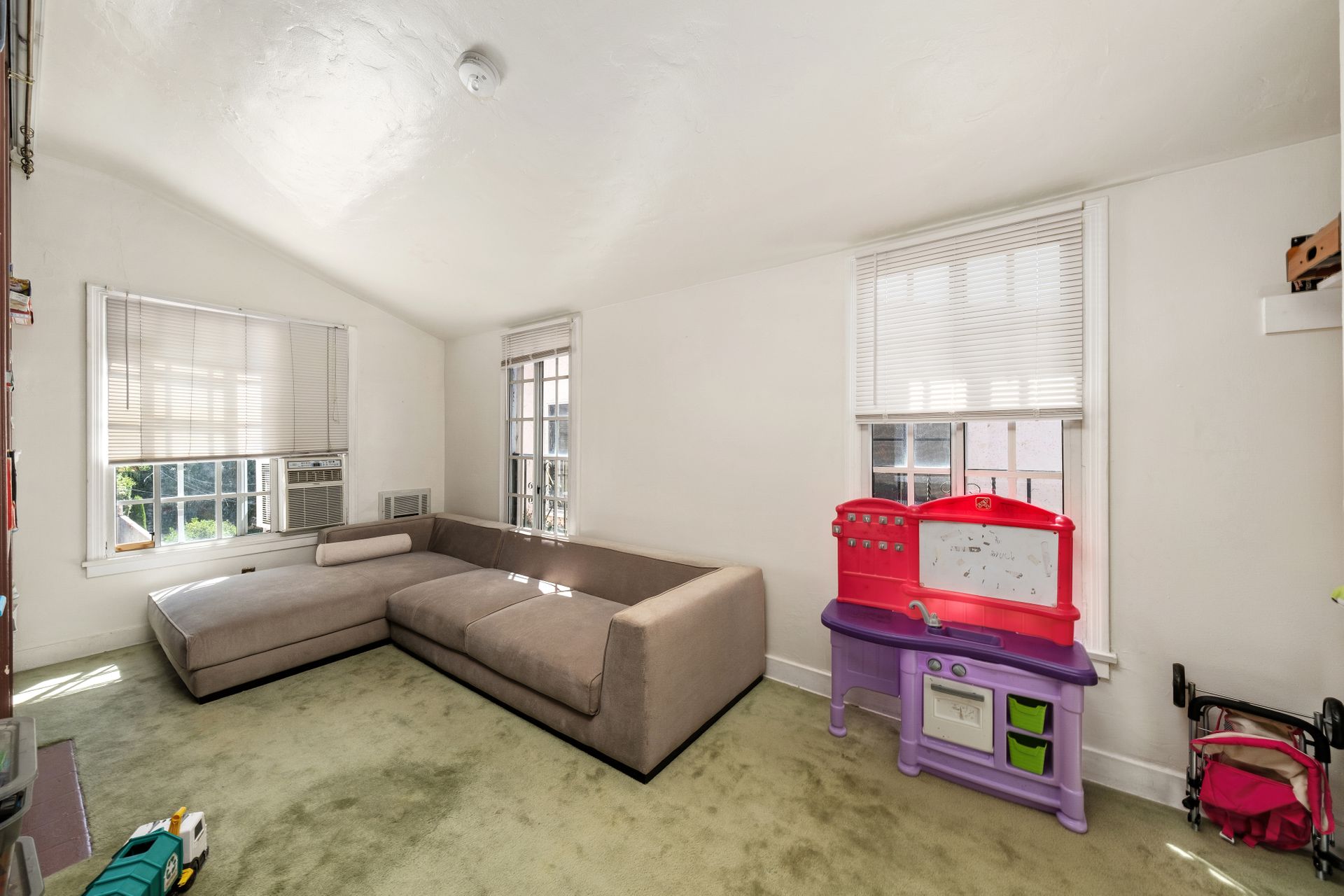 Spanish-style Duplex spanning over 5,000 square feet located on the sought-after Mansfield Avenue. This unique property showcases its original floor plan, with each unit boasting three spacious bedrooms and two baths, while the upper unit offers an additional fourth room above the driveway, a little office in the front tower and a powder room. The upstairs living room is adorned with high ceilings with wooden beams and a character-rich fireplace. Adjacent is a generously sized formal dining room. A well-appointed kitchen, abundant in storage, connects to a breakfast room on one side and a laundry room on the other. The property features two double-car garages and a charming yard.