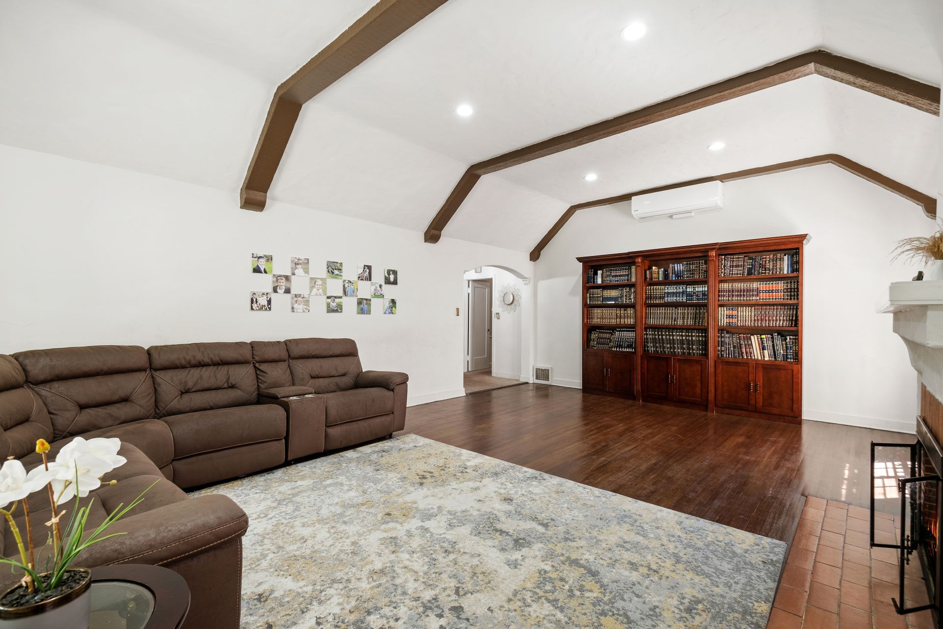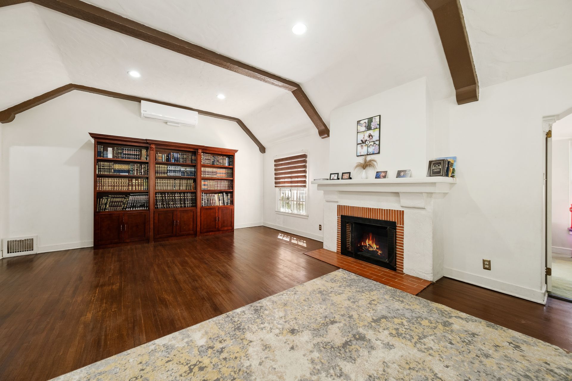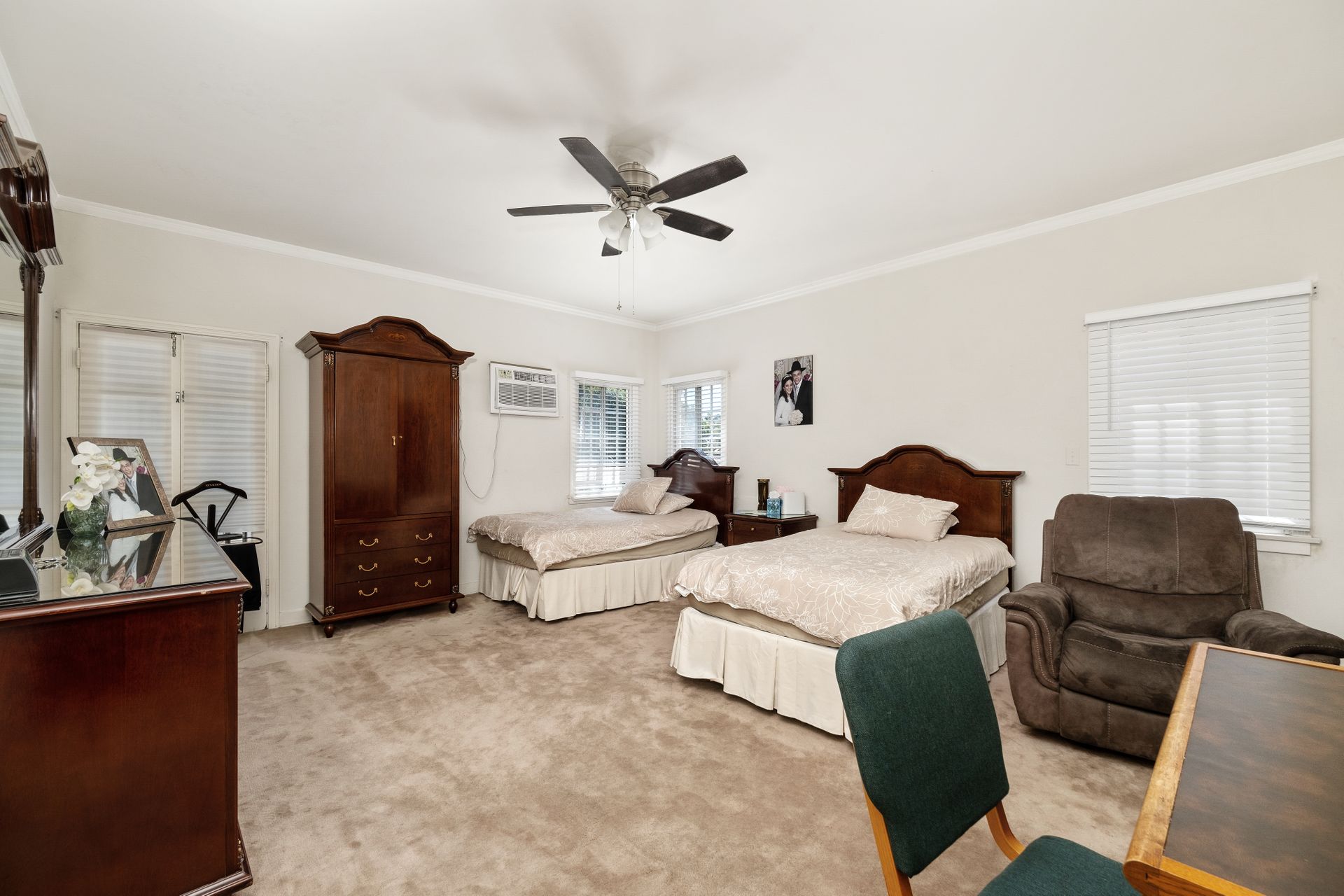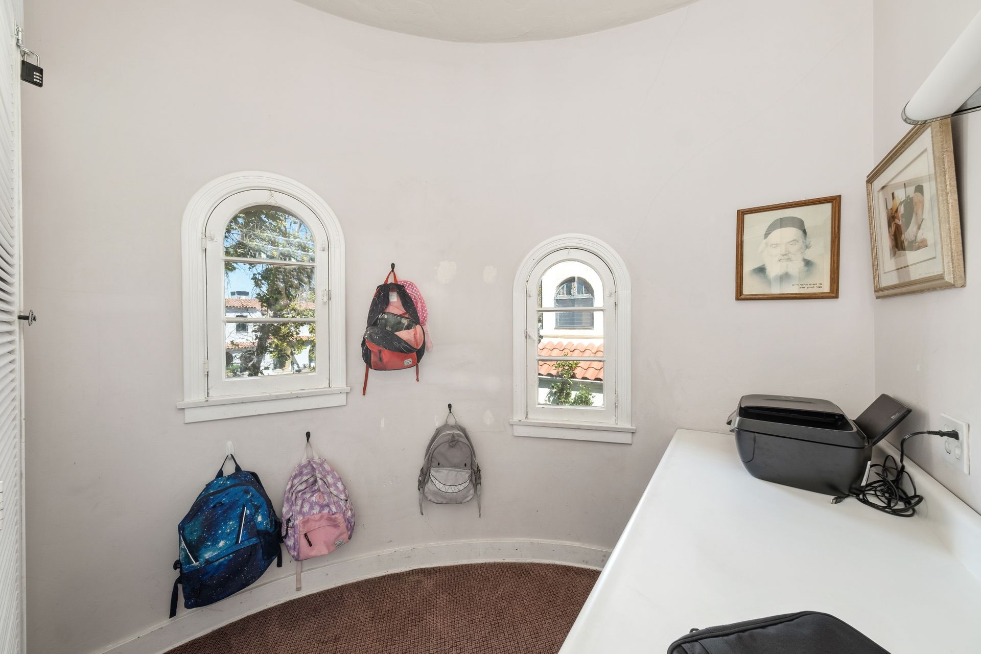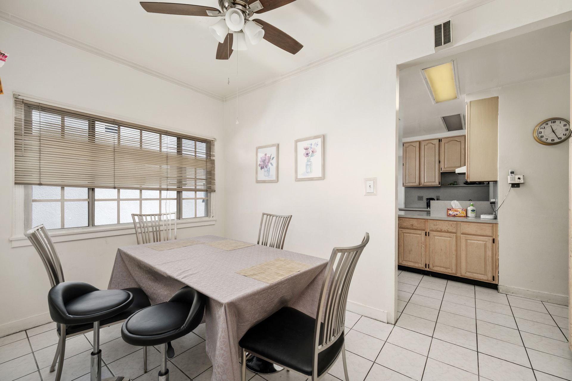 Spanish-style Duplex spanning over 5,000 square feet located on the sought-after Mansfield Avenue. This unique property showcases its original floor plan, with each unit boasting three spacious bedrooms and two baths, while the upper unit offers an additional fourth room above the driveway, a little office in the front tower and a powder room. The upstairs living room is adorned with high ceilings with wooden beams and a character-rich fireplace. Adjacent is a generously sized formal dining room. A well-appointed kitchen, abundant in storage, connects to a breakfast room on one side and a laundry room on the other. The property features two double-car garages and a charming yard.