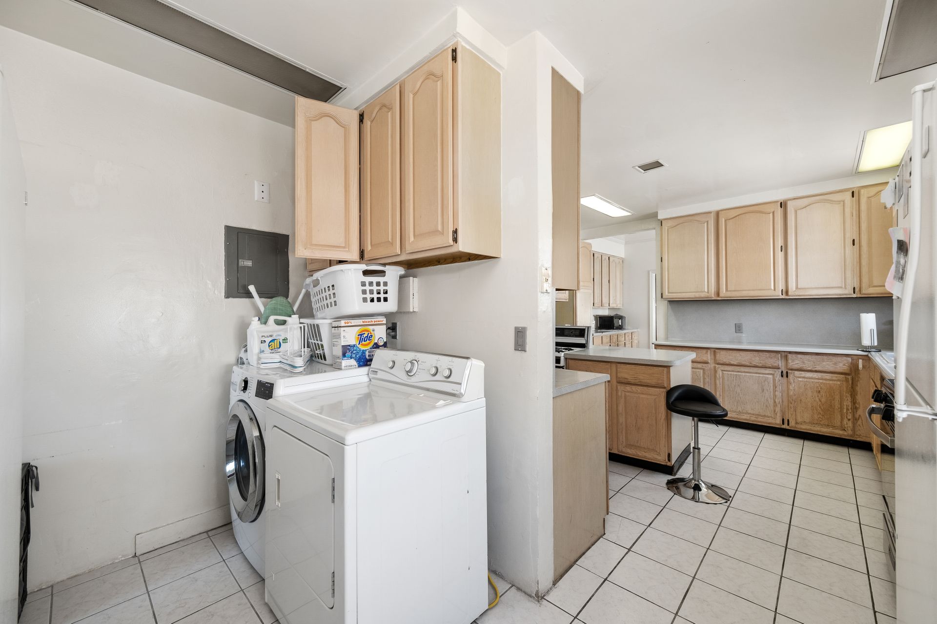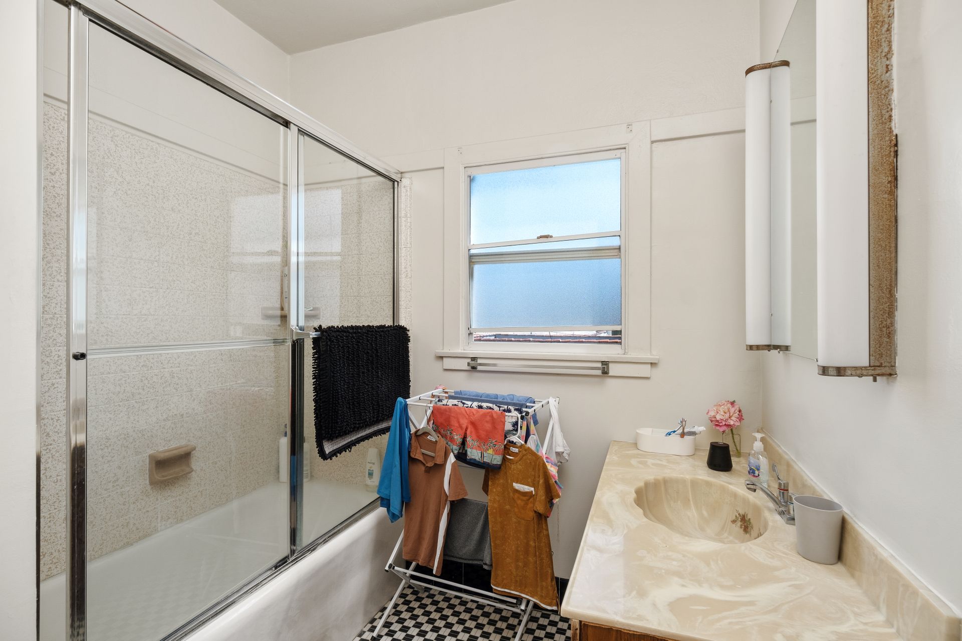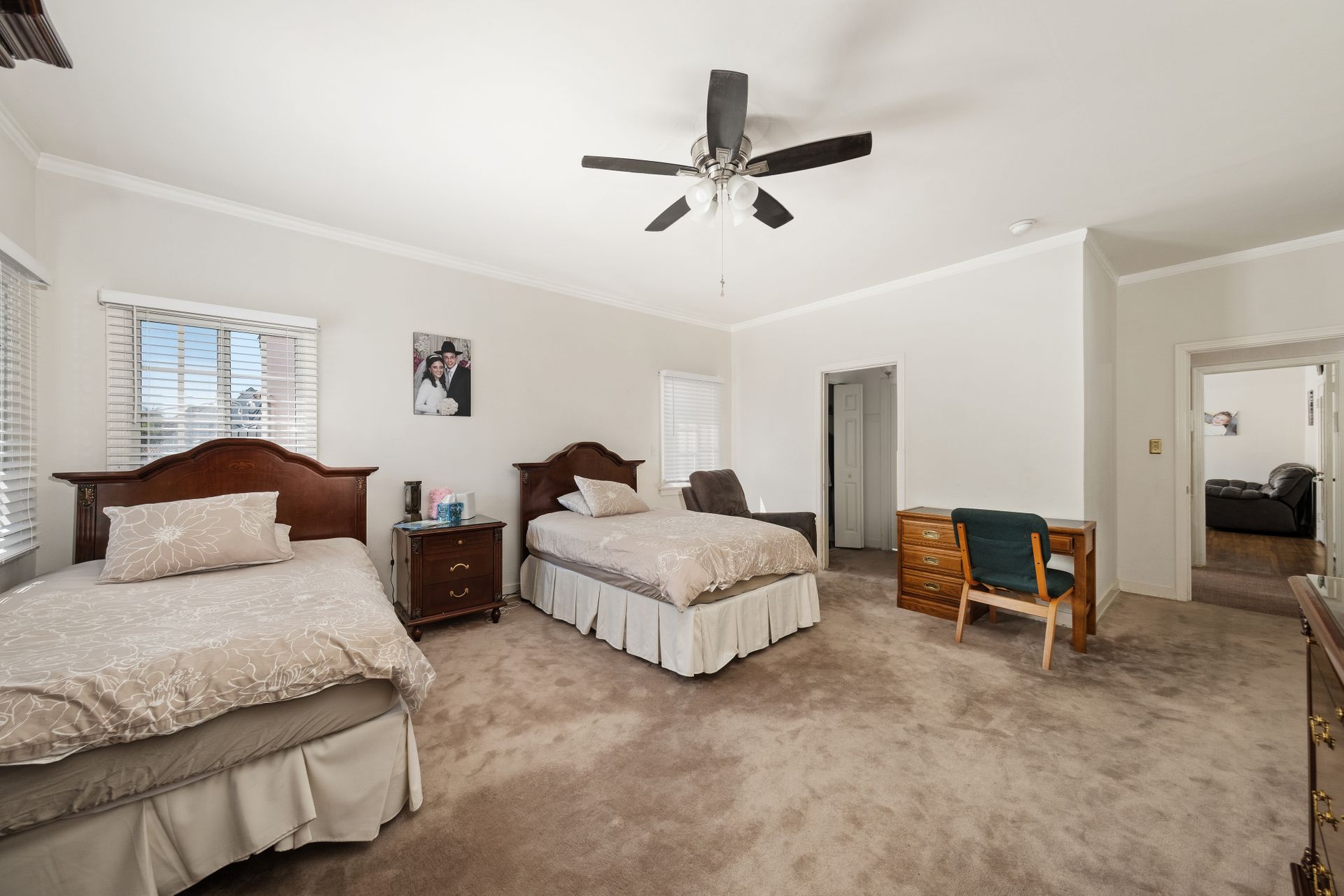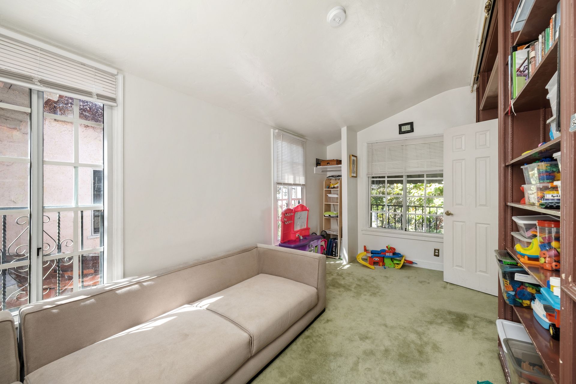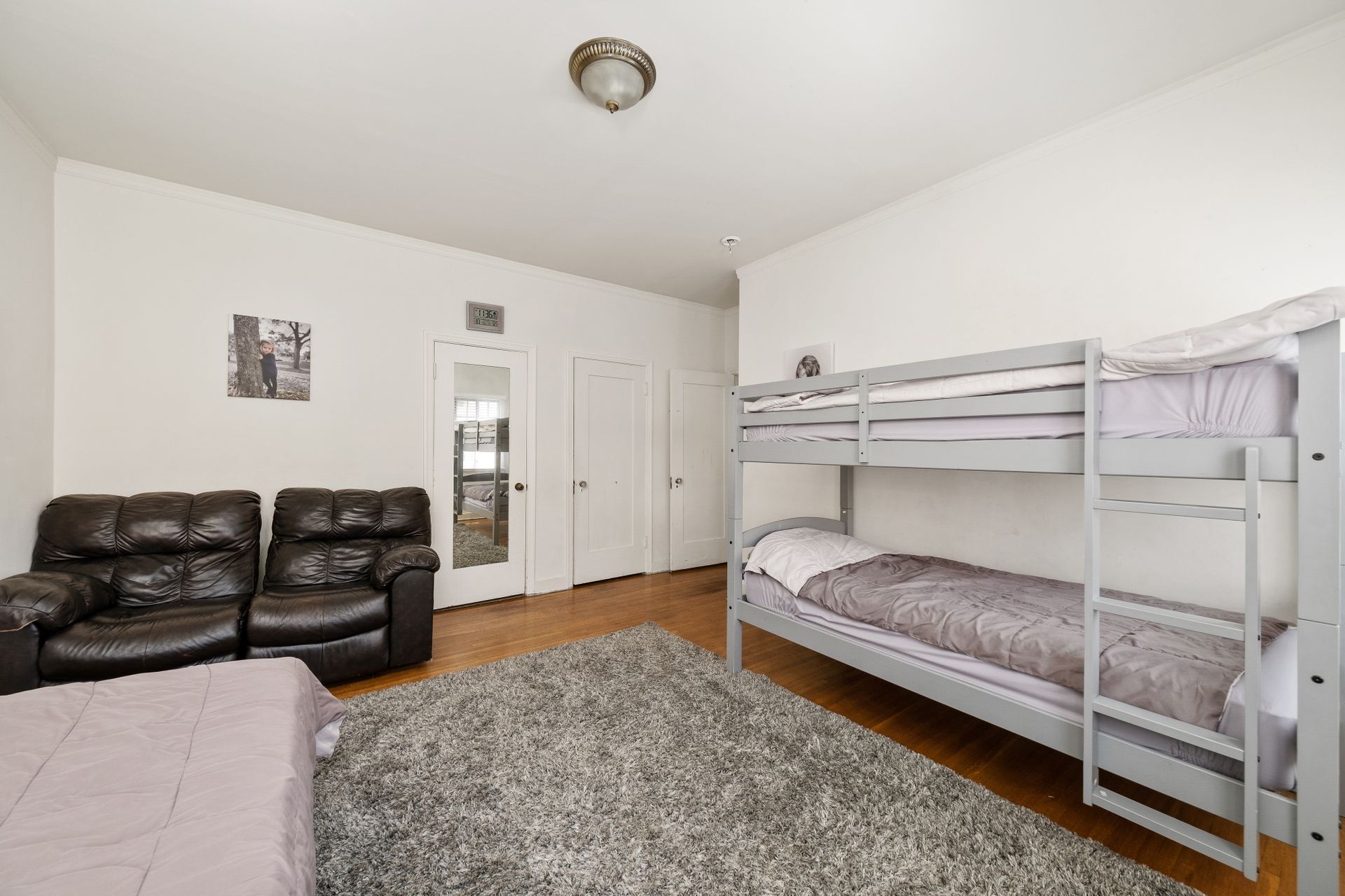 Spanish-style Duplex spanning over 5,000 square feet located on the sought-after Mansfield Avenue. This unique property showcases its original floor plan, with each unit boasting three spacious bedrooms and two baths, while the upper unit offers an additional fourth room above the driveway, a little office in the front tower and a powder room. The upstairs living room is adorned with high ceilings with wooden beams and a character-rich fireplace. Adjacent is a generously sized formal dining room. A well-appointed kitchen, abundant in storage, connects to a breakfast room on one side and a laundry room on the other. The property features two double-car garages and a charming yard.