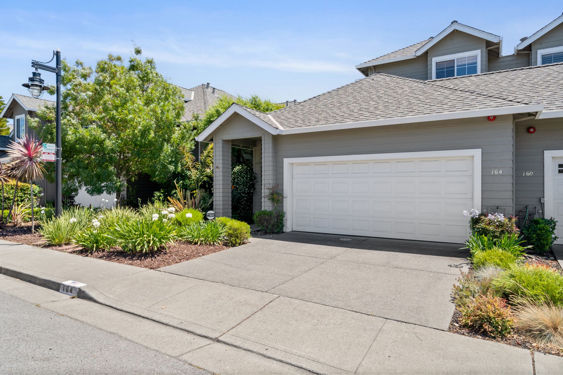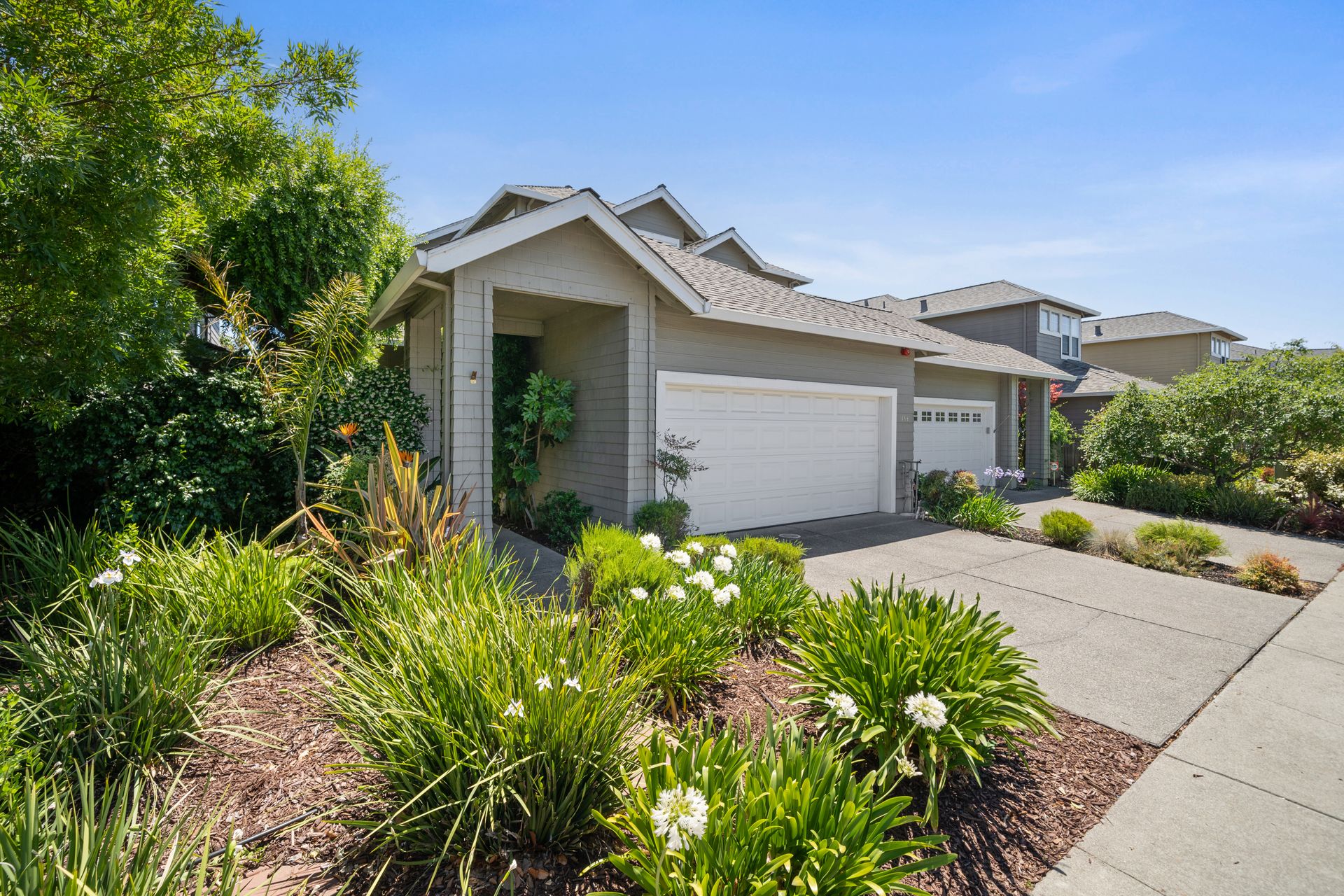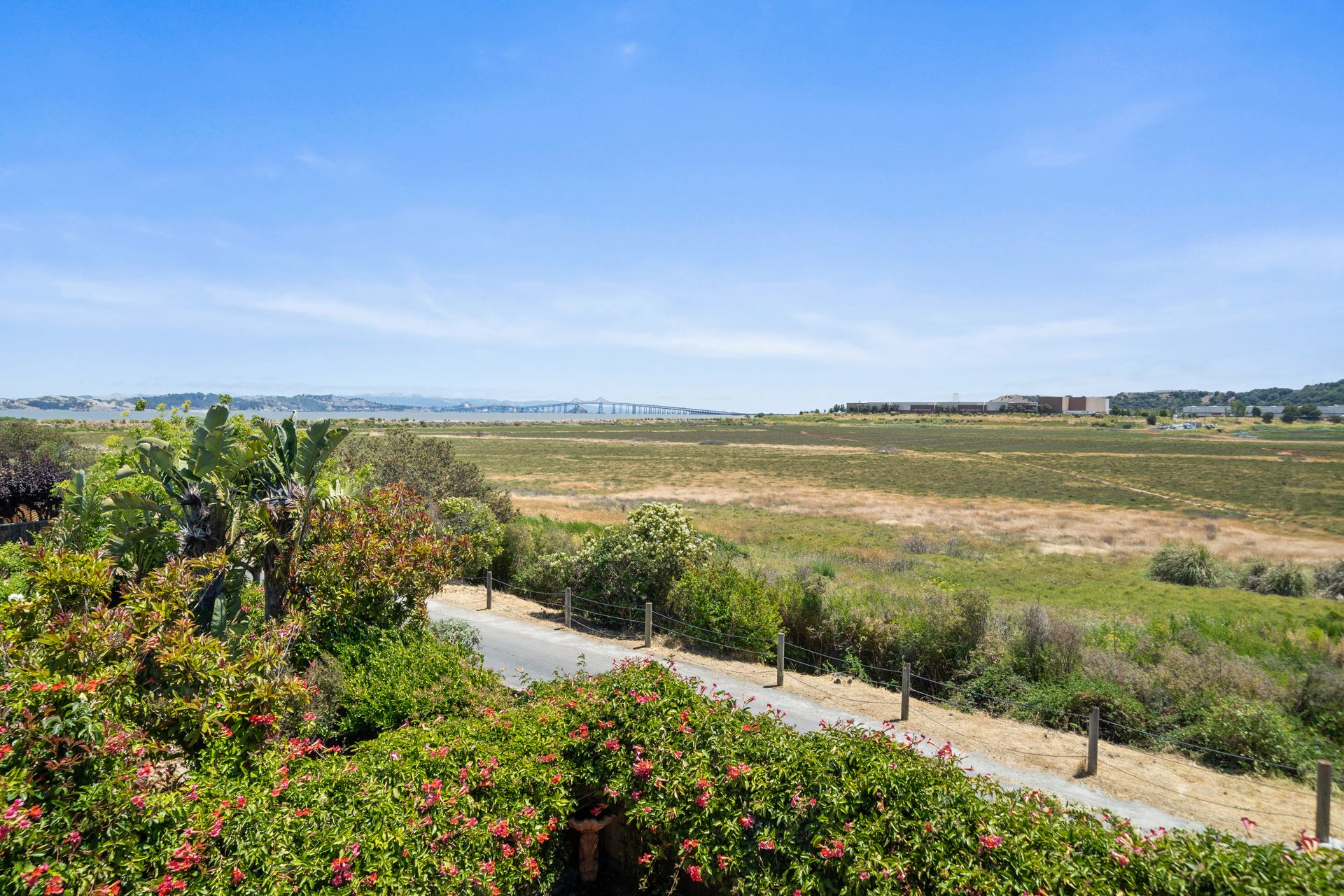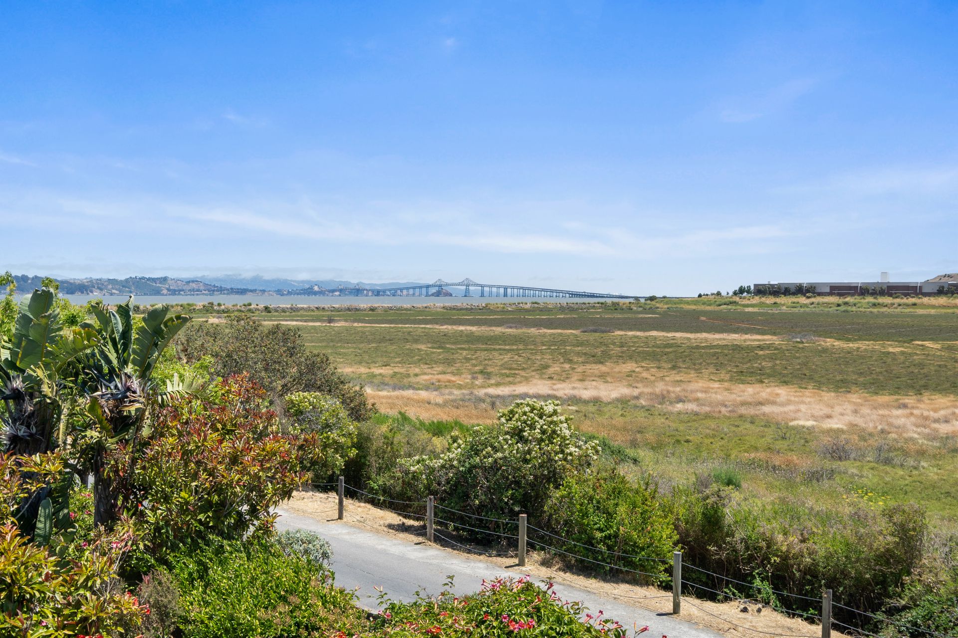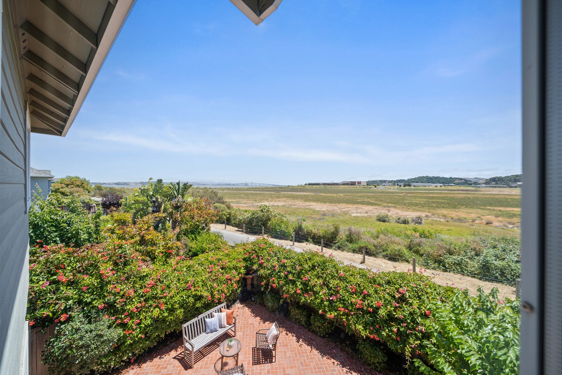 This chic, two-story contemporary townhome is located in 'The Peninsula' phase of Baypoint Lagoons. You'll feel right at home from the minute you enter into this tasteful and comfortable home. Enjoy the extensive BAY VIEWS, live and breathe the salt air and watch the sunrise and moonrise above Richmond Bridge from both levels. The spacious open floor plan with tall windows bringing in the natural southern light and expansive vistas. Don’t miss the cathedral ceiling, recessed lighting, a gas fireplace, bamboo floors and custom drapery. A large chef's kitchen offers a newly installed stainless steel refrigerator, a stainless steel oven and microwave and newly installed furnace. The dining area opens to the rear yard for easy entertaining and BBQs. The beautiful and peaceful low-maintenance backyard features a brick patio, babbling fountain and lush trumpet vine. The primary suite has expansive views from the bedroom and bathroom. The primary bathroom has a two-sink vanity, a soaking tub with a bay view and a stall shower with a circular window, bringing in fabulous light. There are dual walk-in closets. All three bedrooms are generous in size and have full bathrooms. The well-maintained PUD features resort-like amenities with a community heated pool, spa and clubhouse (across the street), tennis and two-car garage.