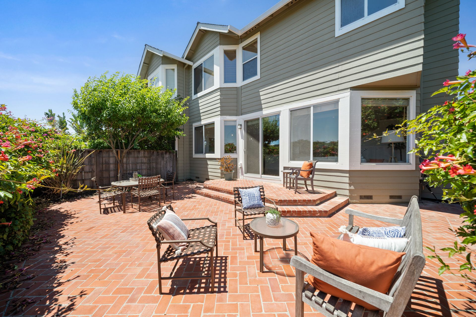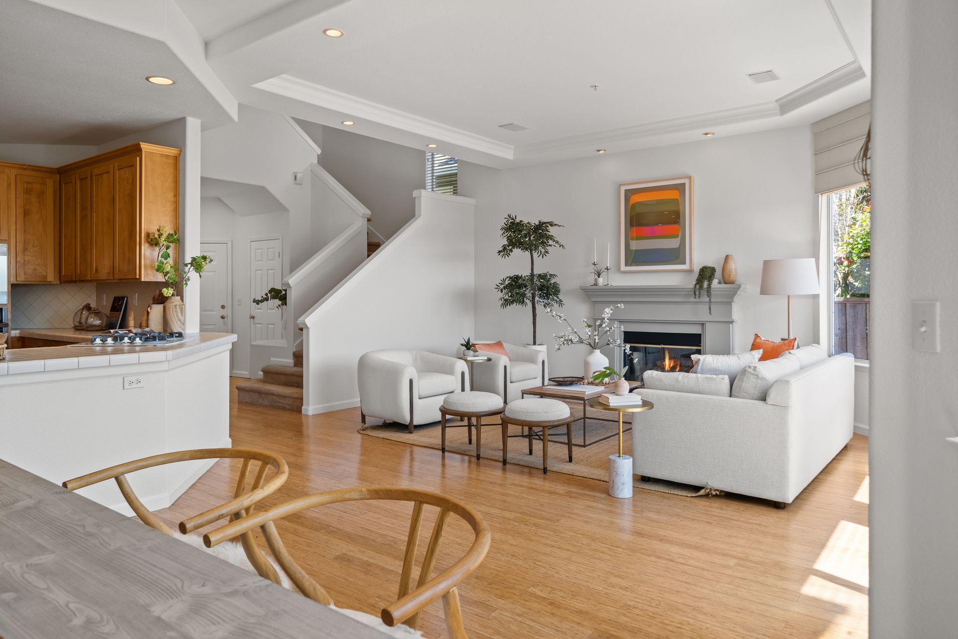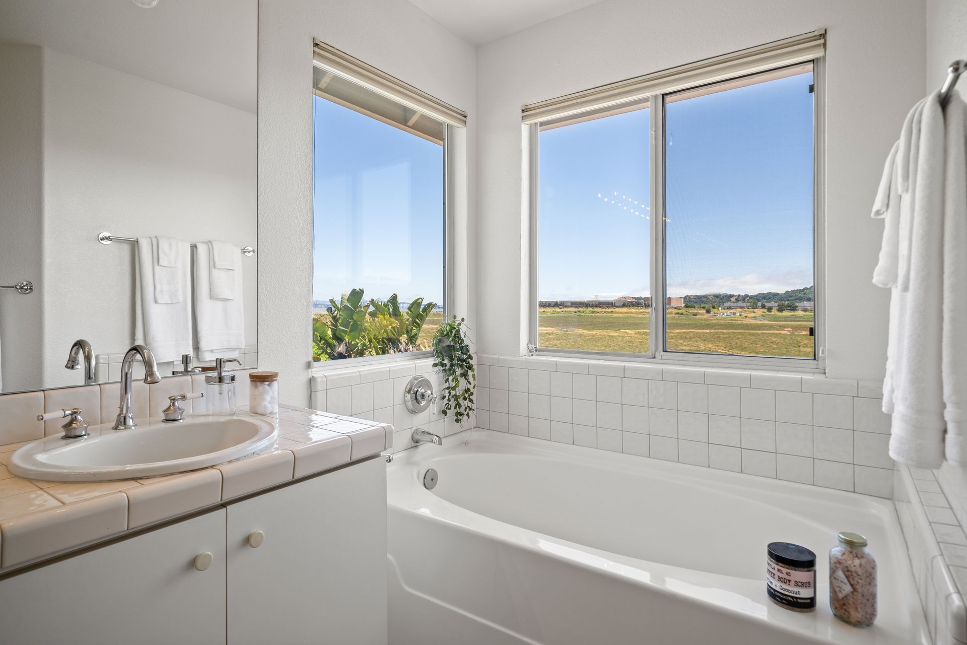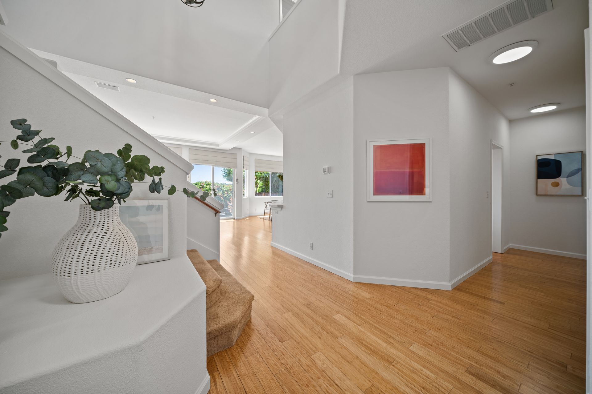 This chic, two-story contemporary townhome is located in 'The Peninsula' phase of Baypoint Lagoons. You'll feel right at home from the minute you enter into this tasteful and comfortable home. Enjoy the extensive BAY VIEWS, live and breathe the salt air and watch the sunrise and moonrise above Richmond Bridge from both levels. The spacious open floor plan with tall windows bringing in the natural southern light and expansive vistas. Don’t miss the cathedral ceiling, recessed lighting, a gas fireplace, bamboo floors and custom drapery. A large chef's kitchen offers a newly installed stainless steel refrigerator, a stainless steel oven and microwave and newly installed furnace. The dining area opens to the rear yard for easy entertaining and BBQs. The beautiful and peaceful low-maintenance backyard features a brick patio, babbling fountain and lush trumpet vine. The primary suite has expansive views from the bedroom and bathroom. The primary bathroom has a two-sink vanity, a soaking tub with a bay view and a stall shower with a circular window, bringing in fabulous light. There are dual walk-in closets. All three bedrooms are generous in size and have full bathrooms. The well-maintained PUD features resort-like amenities with a community heated pool, spa and clubhouse (across the street), tennis and two-car garage.
