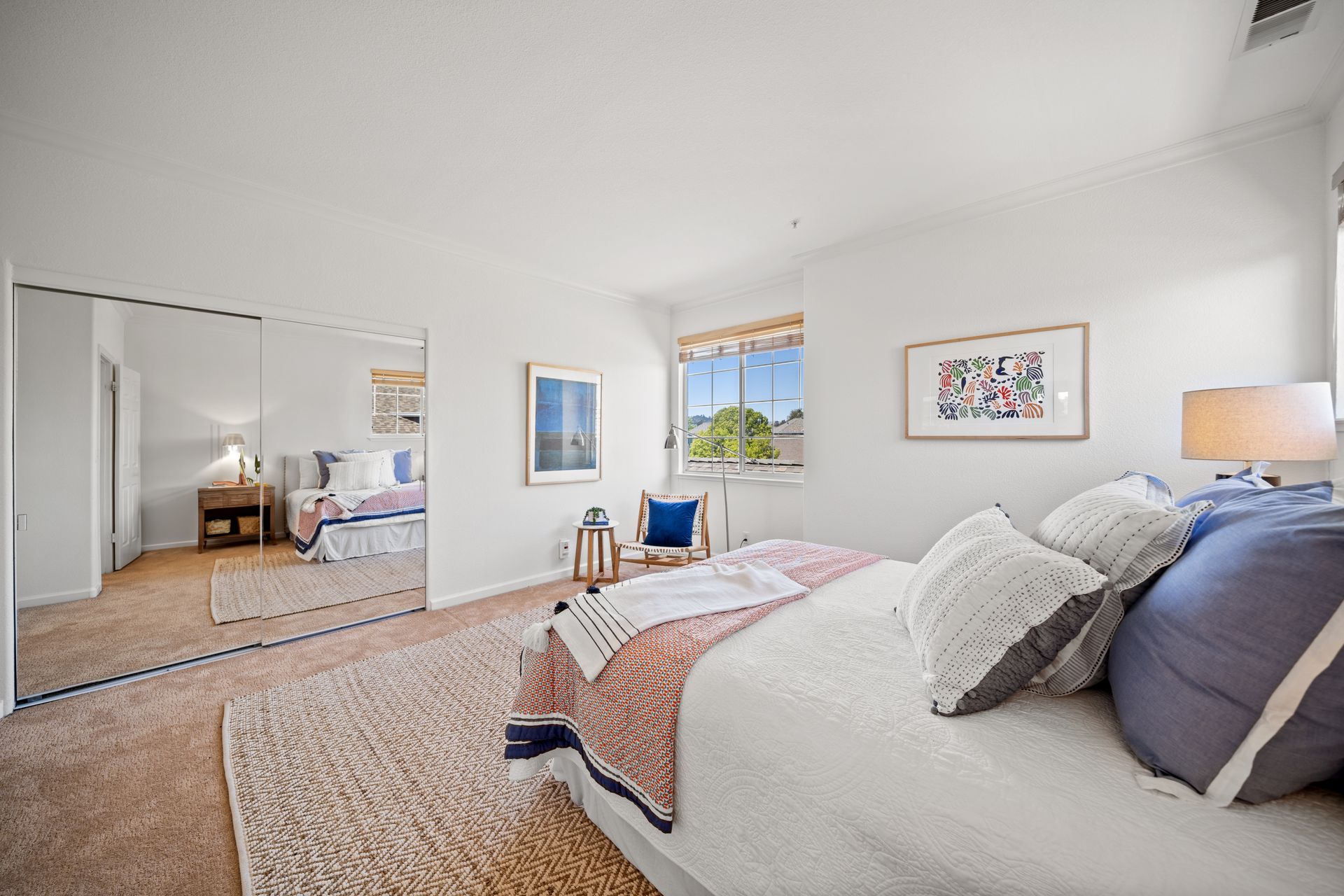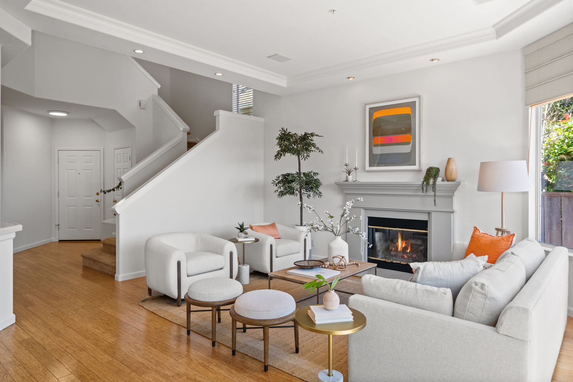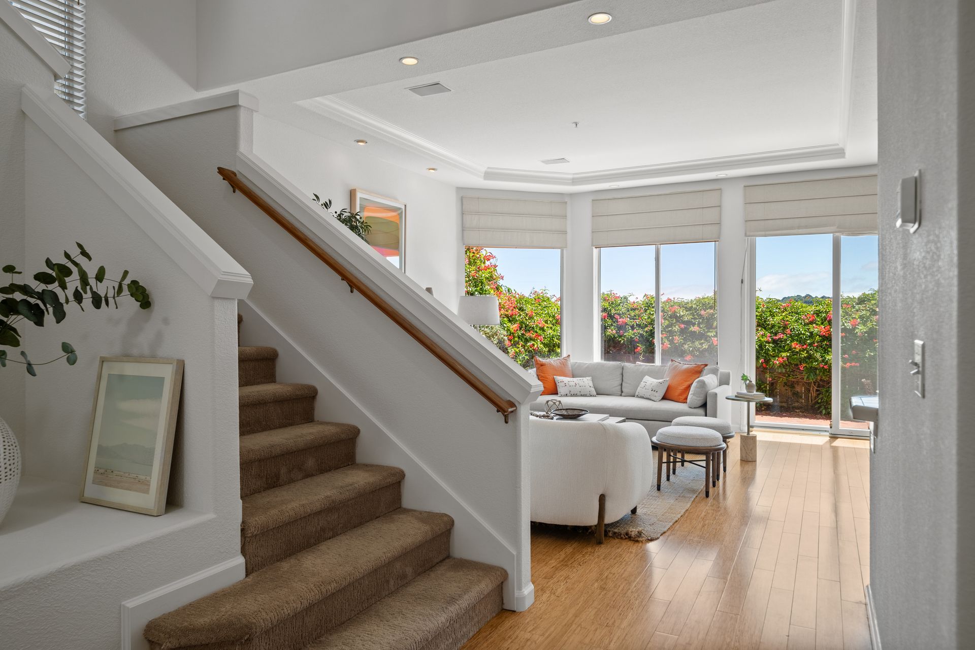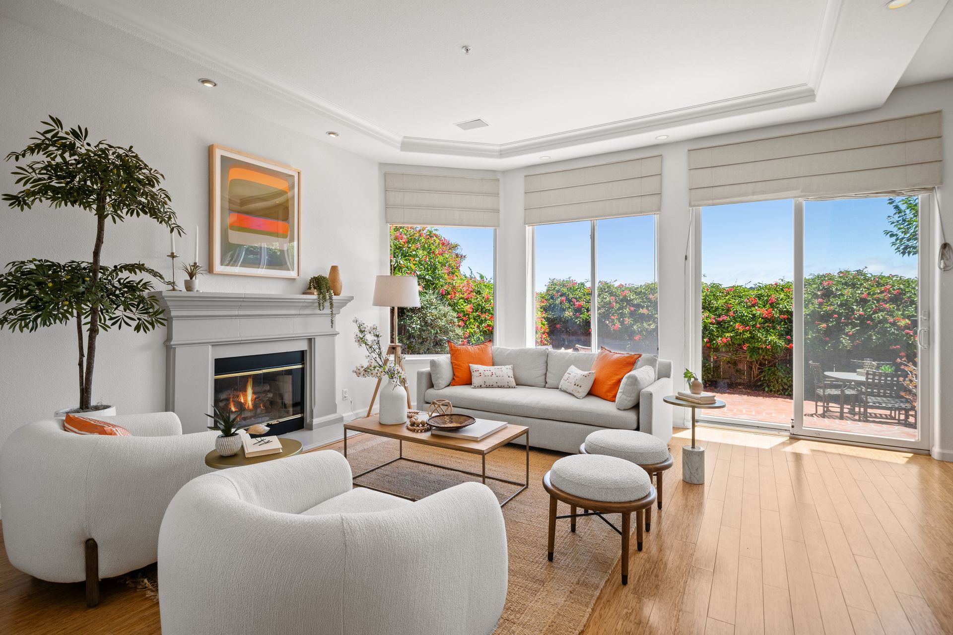 This chic, two-story contemporary townhome is located in 'The Peninsula' phase of Baypoint Lagoons. You'll feel right at home from the minute you enter into this tasteful and comfortable home. Enjoy the extensive BAY VIEWS, live and breathe the salt air and watch the sunrise and moonrise above Richmond Bridge from both levels. The spacious open floor plan with tall windows bringing in the natural southern light and expansive vistas. Don’t miss the cathedral ceiling, recessed lighting, a gas fireplace, bamboo floors and custom drapery. A large chef's kitchen offers a newly installed stainless steel refrigerator, a stainless steel oven and microwave and newly installed furnace. The dining area opens to the rear yard for easy entertaining and BBQs. The beautiful and peaceful low-maintenance backyard features a brick patio, babbling fountain and lush trumpet vine. The primary suite has expansive views from the bedroom and bathroom. The primary bathroom has a two-sink vanity, a soaking tub with a bay view and a stall shower with a circular window, bringing in fabulous light. There are dual walk-in closets. All three bedrooms are generous in size and have full bathrooms. The well-maintained PUD features resort-like amenities with a community heated pool, spa and clubhouse (across the street), tennis and two-car garage.