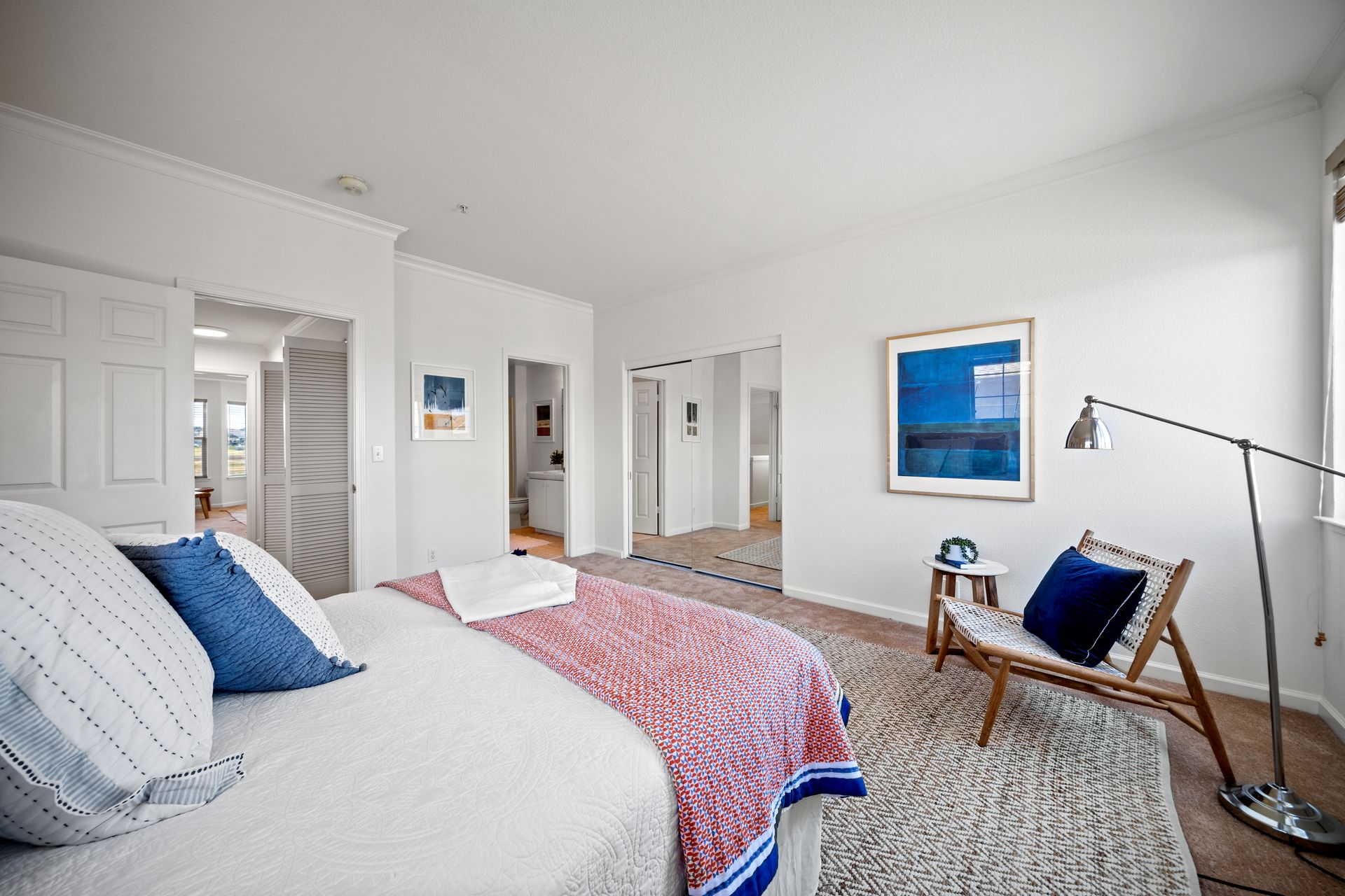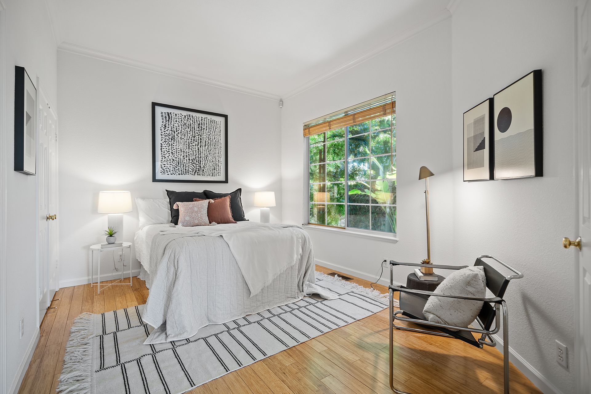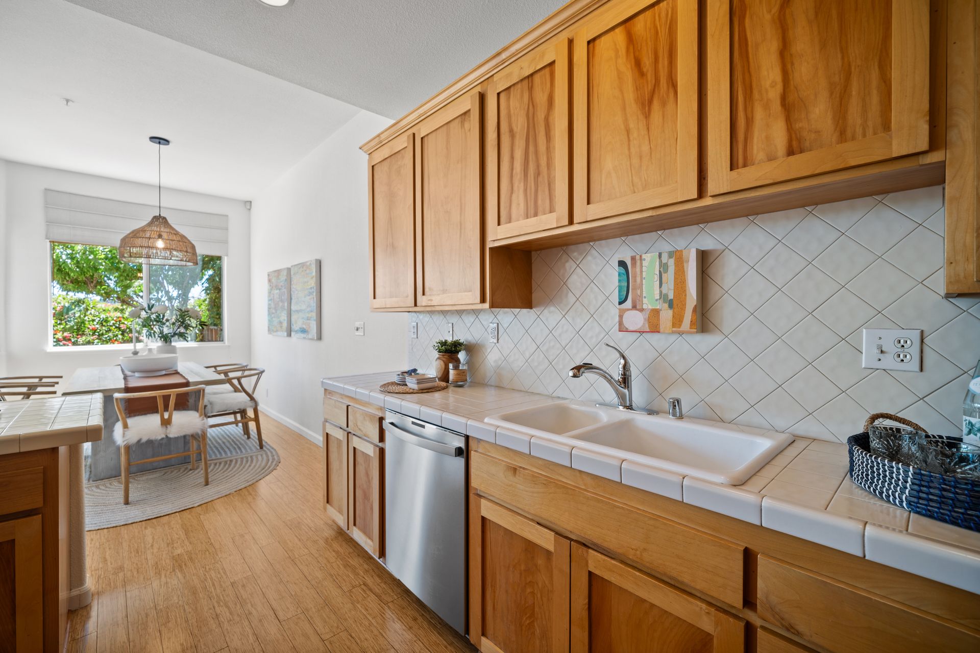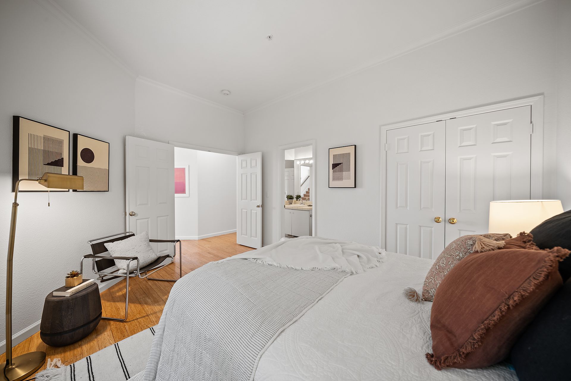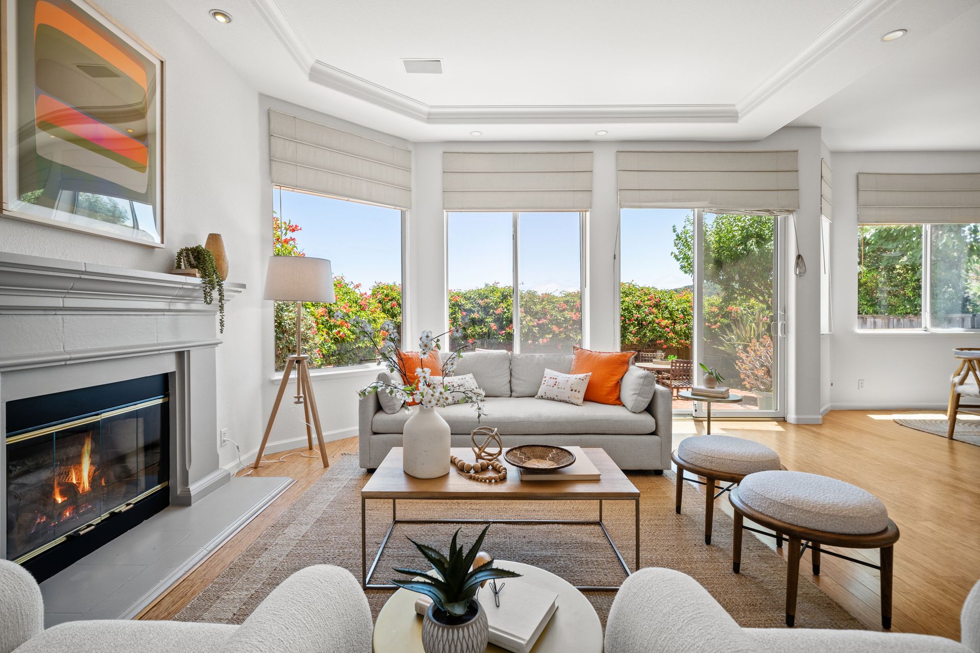 This chic, two-story contemporary townhome is located in 'The Peninsula' phase of Baypoint Lagoons. You'll feel right at home from the minute you enter into this tasteful and comfortable home. Enjoy the extensive BAY VIEWS, live and breathe the salt air and watch the sunrise and moonrise above Richmond Bridge from both levels. The spacious open floor plan with tall windows bringing in the natural southern light and expansive vistas. Don’t miss the cathedral ceiling, recessed lighting, a gas fireplace, bamboo floors and custom drapery. A large chef's kitchen offers a newly installed stainless steel refrigerator, a stainless steel oven and microwave and newly installed furnace. The dining area opens to the rear yard for easy entertaining and BBQs. The beautiful and peaceful low-maintenance backyard features a brick patio, babbling fountain and lush trumpet vine. The primary suite has expansive views from the bedroom and bathroom. The primary bathroom has a two-sink vanity, a soaking tub with a bay view and a stall shower with a circular window, bringing in fabulous light. There are dual walk-in closets. All three bedrooms are generous in size and have full bathrooms. The well-maintained PUD features resort-like amenities with a community heated pool, spa and clubhouse (across the street), tennis and two-car garage.