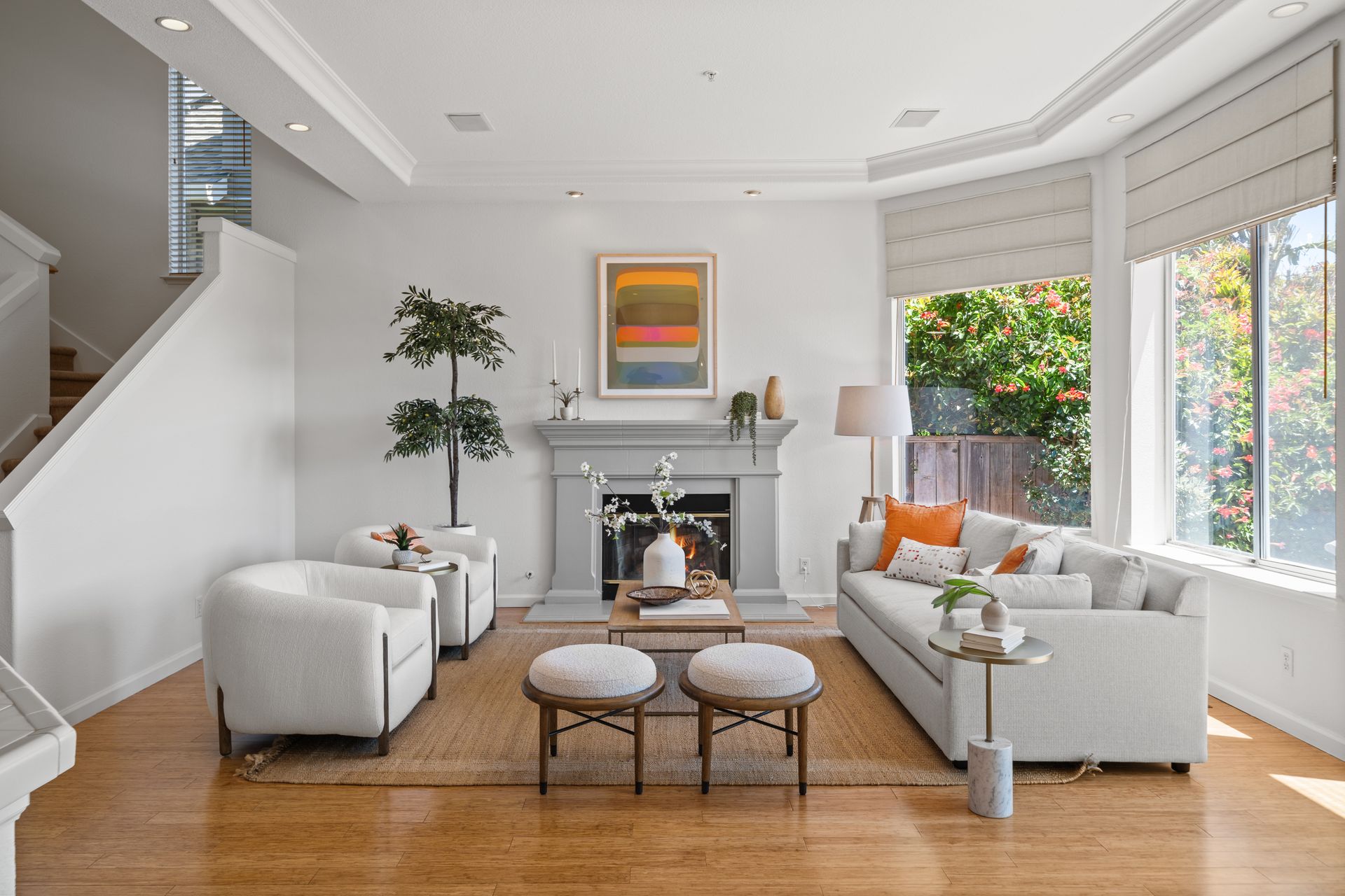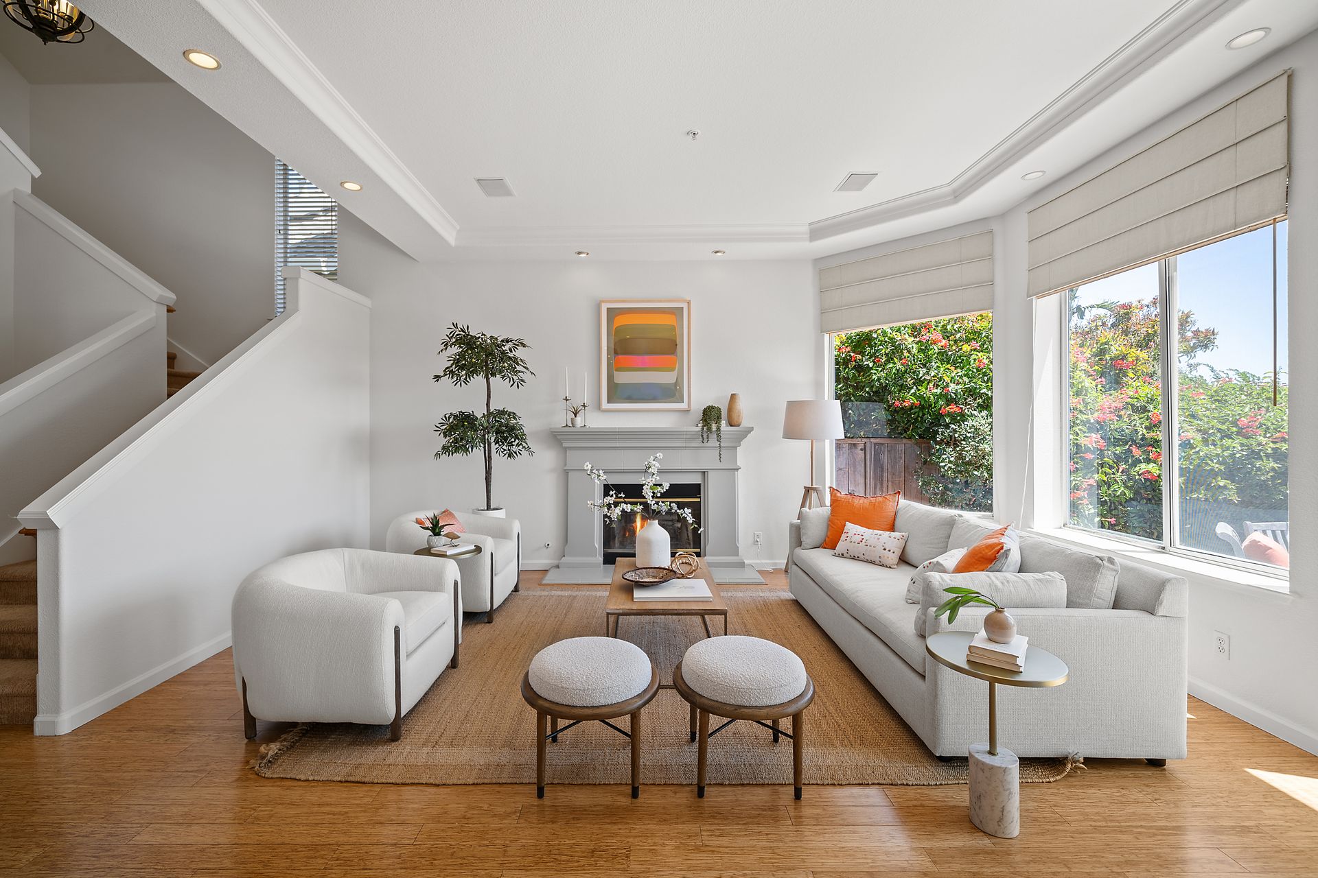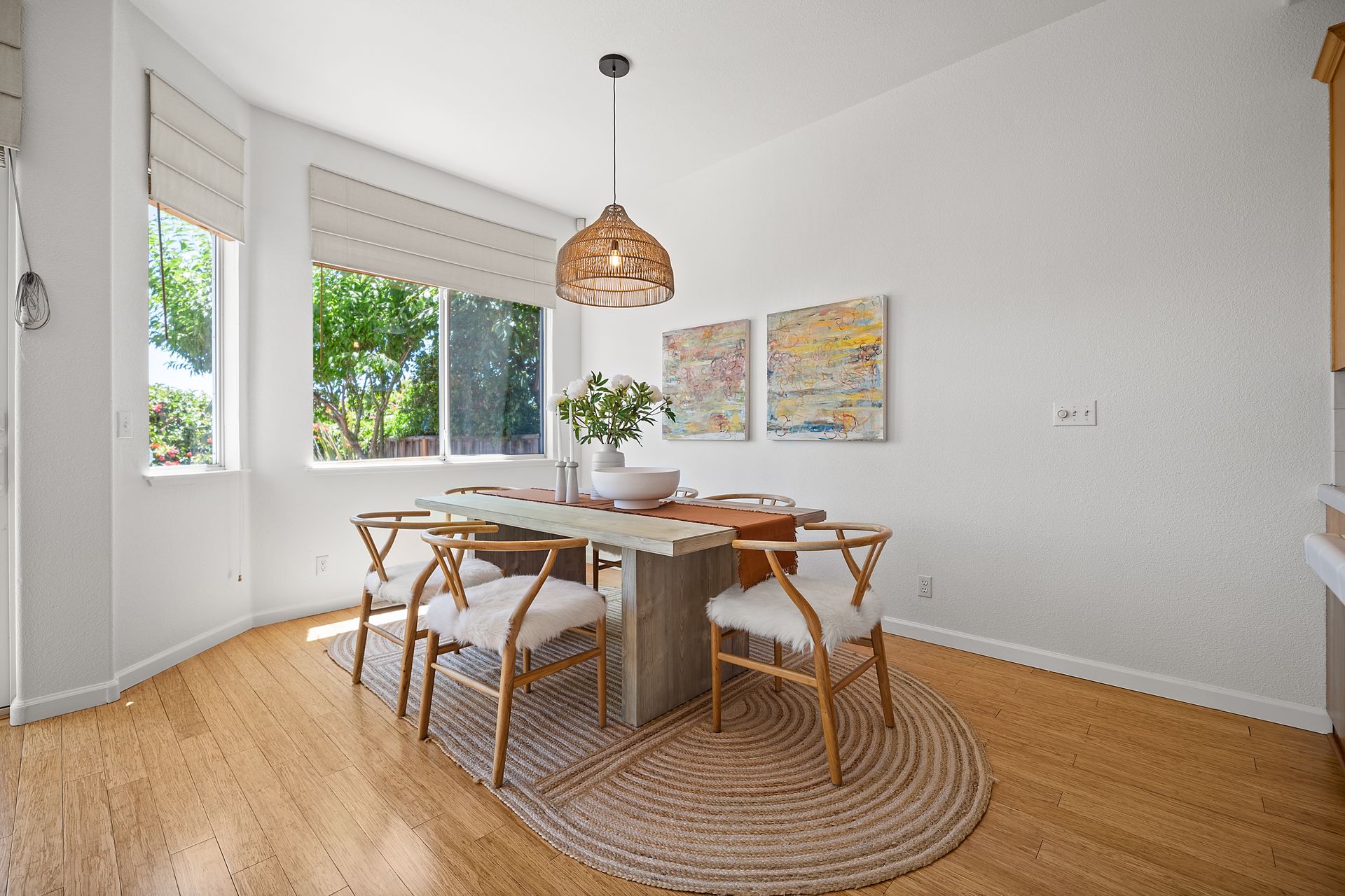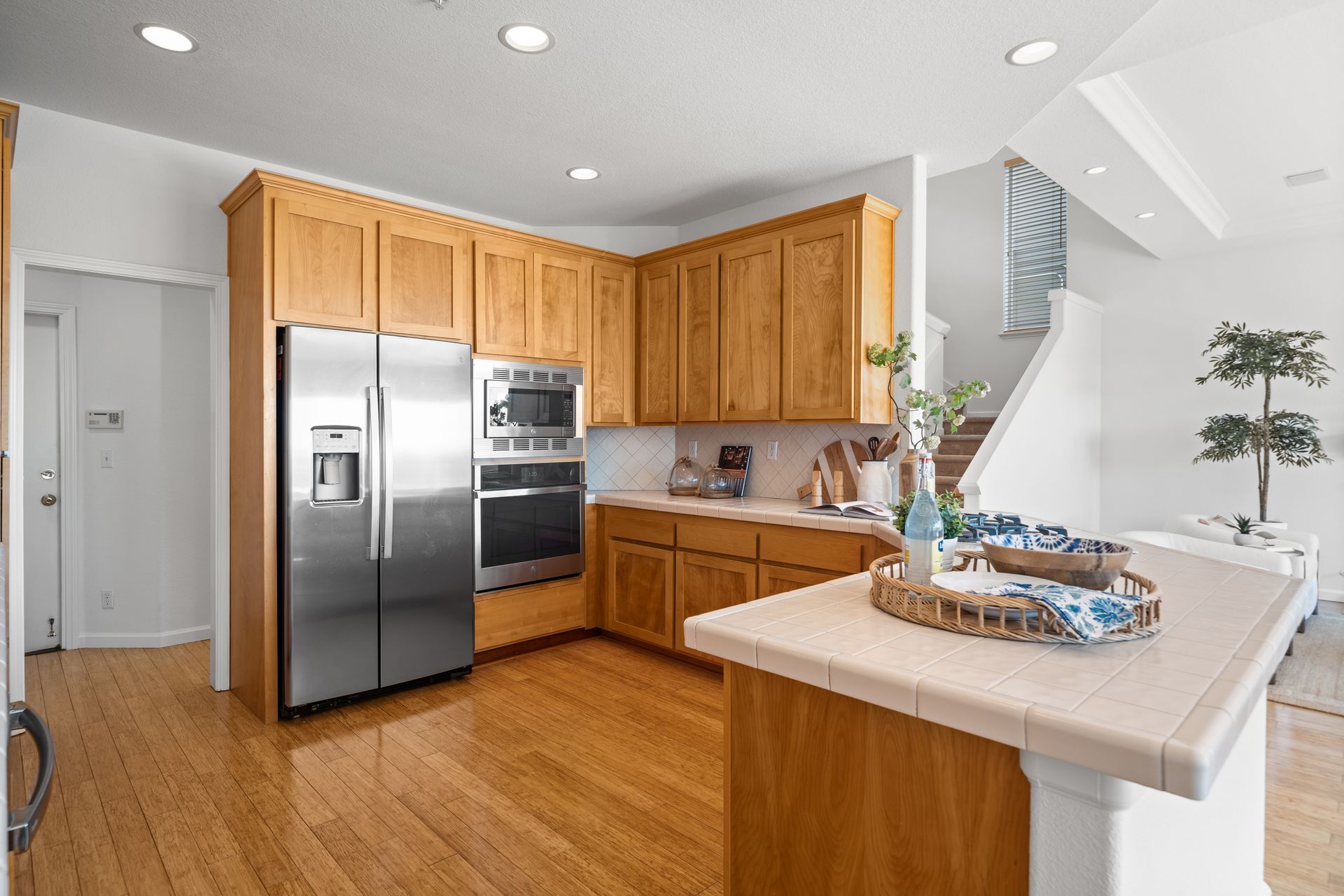 This chic, two-story contemporary townhome is located in 'The Peninsula' phase of Baypoint Lagoons. You'll feel right at home from the minute you enter into this tasteful and comfortable home. Enjoy the extensive BAY VIEWS, live and breathe the salt air and watch the sunrise and moonrise above Richmond Bridge from both levels. The spacious open floor plan with tall windows bringing in the natural southern light and expansive vistas. Don’t miss the cathedral ceiling, recessed lighting, a gas fireplace, bamboo floors and custom drapery. A large chef's kitchen offers a newly installed stainless steel refrigerator, a stainless steel oven and microwave and newly installed furnace. The dining area opens to the rear yard for easy entertaining and BBQs. The beautiful and peaceful low-maintenance backyard features a brick patio, babbling fountain and lush trumpet vine. The primary suite has expansive views from the bedroom and bathroom. The primary bathroom has a two-sink vanity, a soaking tub with a bay view and a stall shower with a circular window, bringing in fabulous light. There are dual walk-in closets. All three bedrooms are generous in size and have full bathrooms. The well-maintained PUD features resort-like amenities with a community heated pool, spa and clubhouse (across the street), tennis and two-car garage.