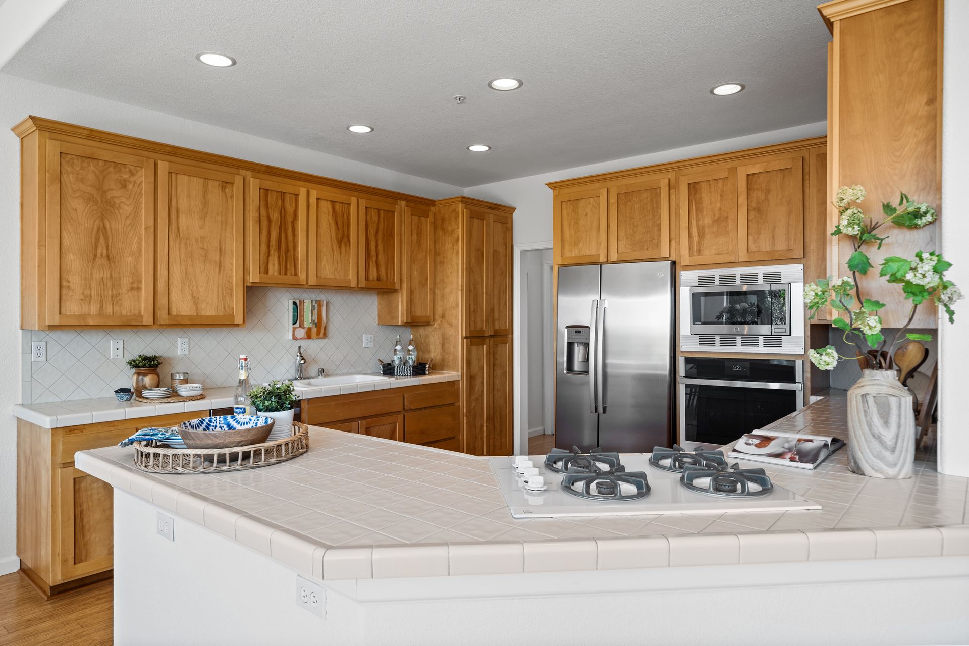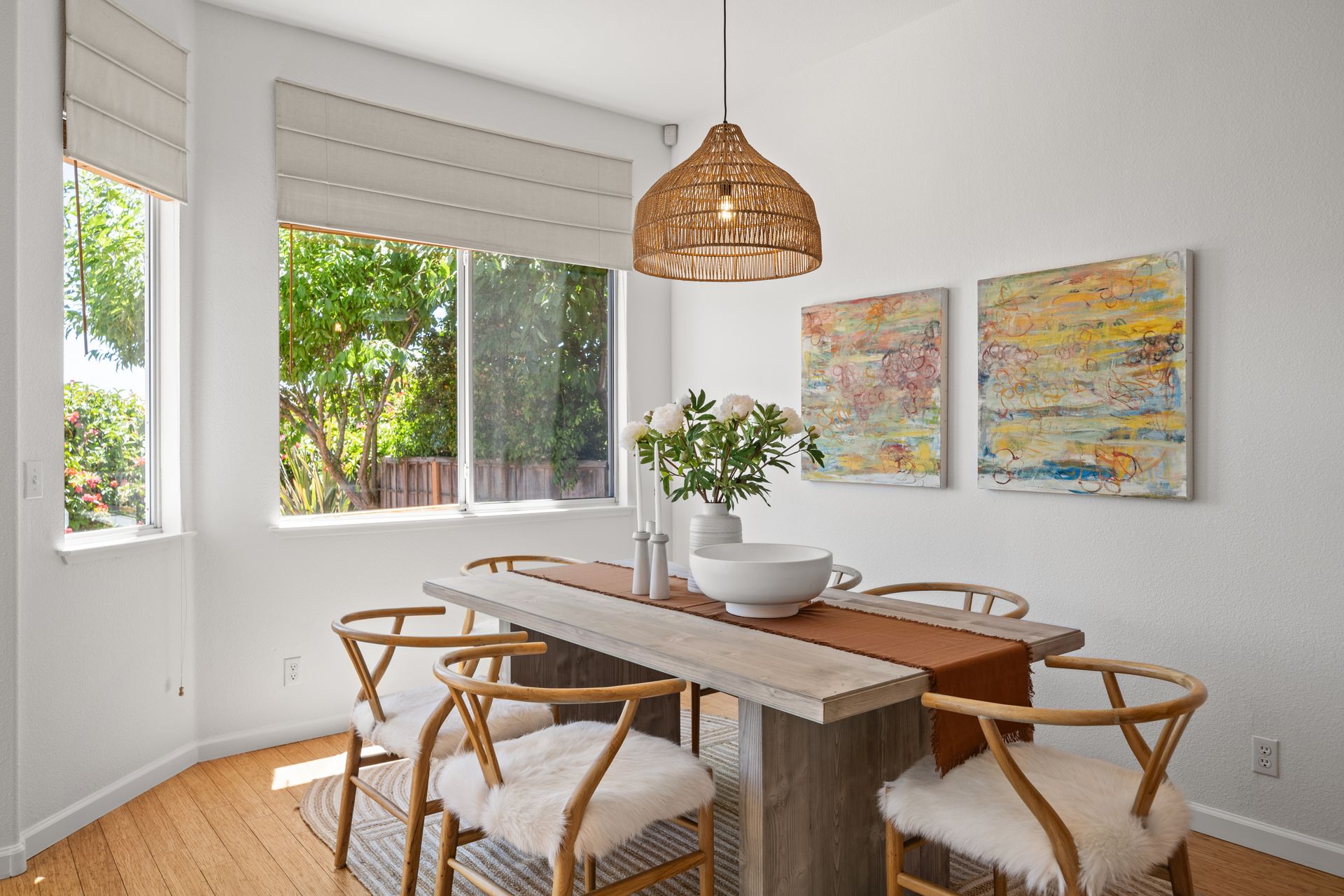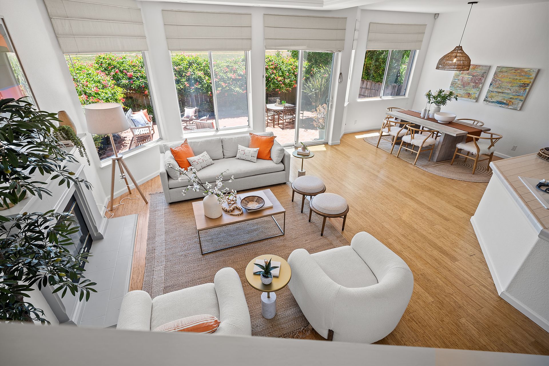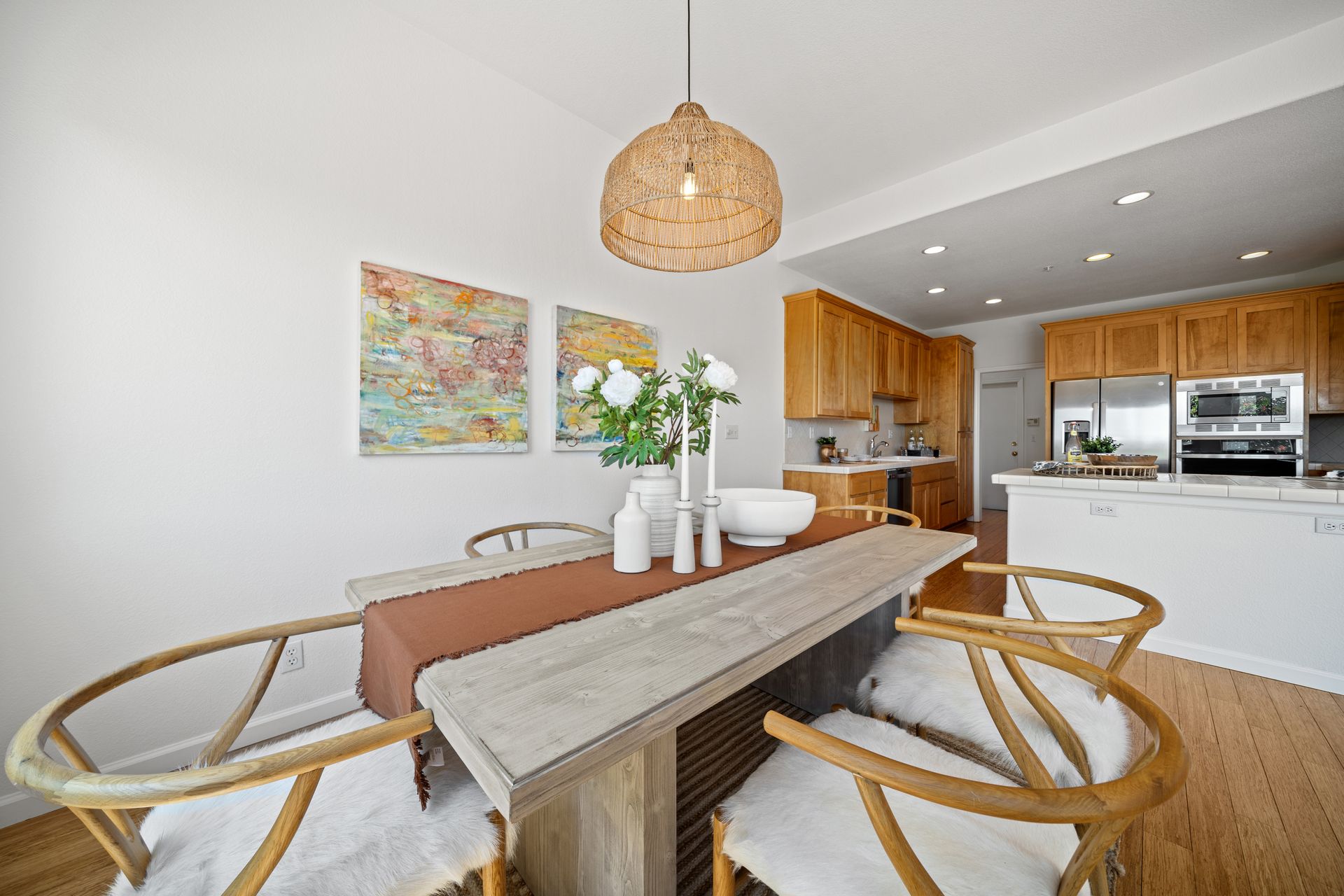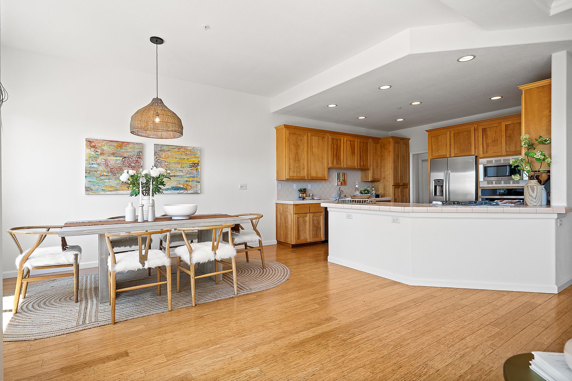 This chic, two-story contemporary townhome is located in 'The Peninsula' phase of Baypoint Lagoons. You'll feel right at home from the minute you enter into this tasteful and comfortable home. Enjoy the extensive BAY VIEWS, live and breathe the salt air and watch the sunrise and moonrise above Richmond Bridge from both levels. The spacious open floor plan with tall windows bringing in the natural southern light and expansive vistas. Don’t miss the cathedral ceiling, recessed lighting, a gas fireplace, bamboo floors and custom drapery. A large chef's kitchen offers a newly installed stainless steel refrigerator, a stainless steel oven and microwave and newly installed furnace. The dining area opens to the rear yard for easy entertaining and BBQs. The beautiful and peaceful low-maintenance backyard features a brick patio, babbling fountain and lush trumpet vine. The primary suite has expansive views from the bedroom and bathroom. The primary bathroom has a two-sink vanity, a soaking tub with a bay view and a stall shower with a circular window, bringing in fabulous light. There are dual walk-in closets. All three bedrooms are generous in size and have full bathrooms. The well-maintained PUD features resort-like amenities with a community heated pool, spa and clubhouse (across the street), tennis and two-car garage.
