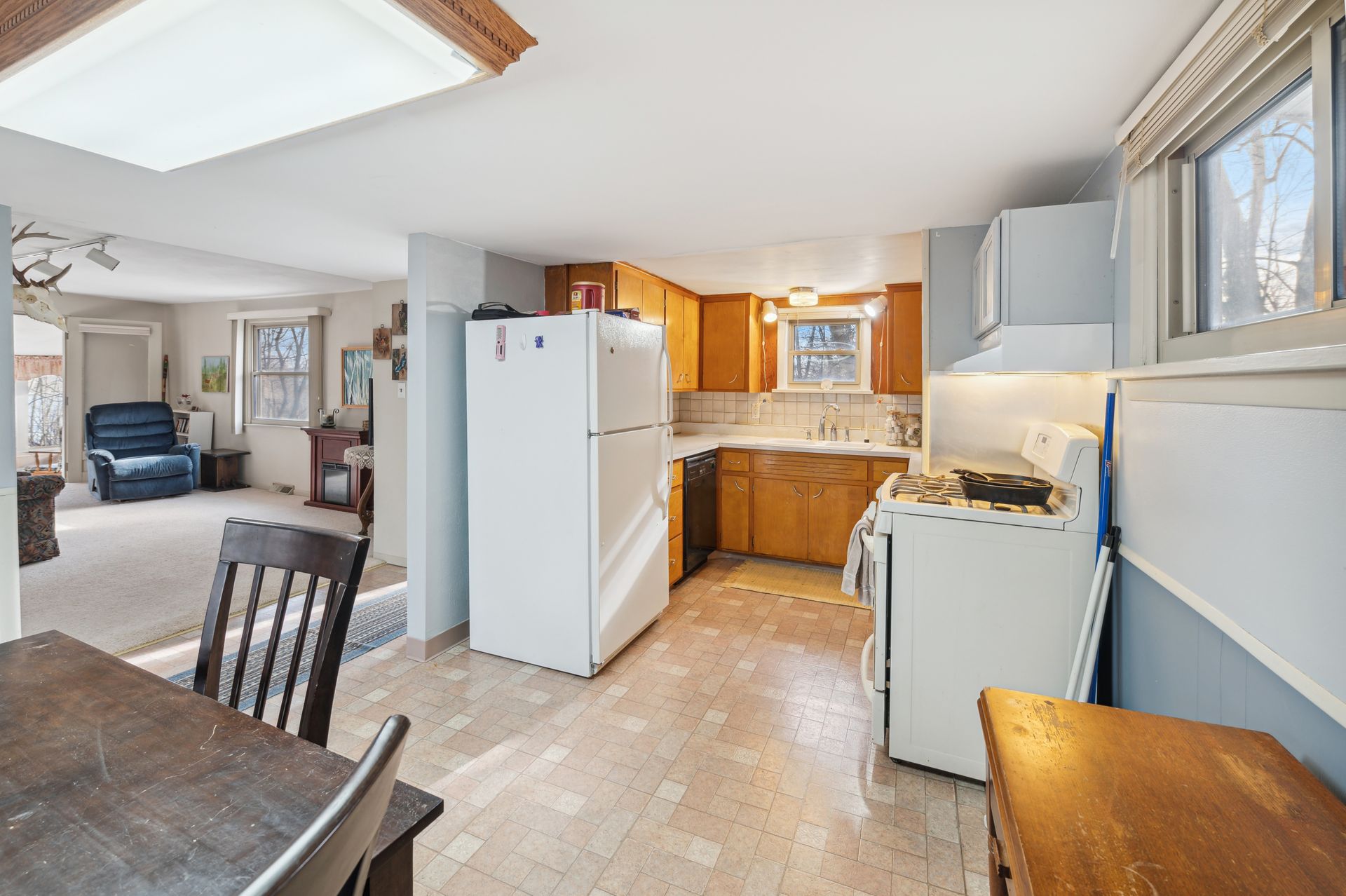 Discover tranquility in this charming one bedroom, one bathroom home overlooking the serene Friess Lake. Meticulously maintained, this property boasts updated amenities like a water softener, iron curtain and water pump, all less than two years old. Enjoy stunning lake views from the cozy 4-season sunroom. The new 2024 roof and windows and siding, less than 20 years old, ensure worry-free living. The additional lot offers exciting possibilities for expansion, making this property a versatile investment. Explore the nearby Glacier Hills Park, where you can swim, canoe, kayak or fish in the pristine waters of Friess Lake. This affordable retreat is complete with central air and included appliances, low taxes and over a one-half acre of land is the perfect escape from the hustle and bustle. This is a must see, schedule your showing today.
