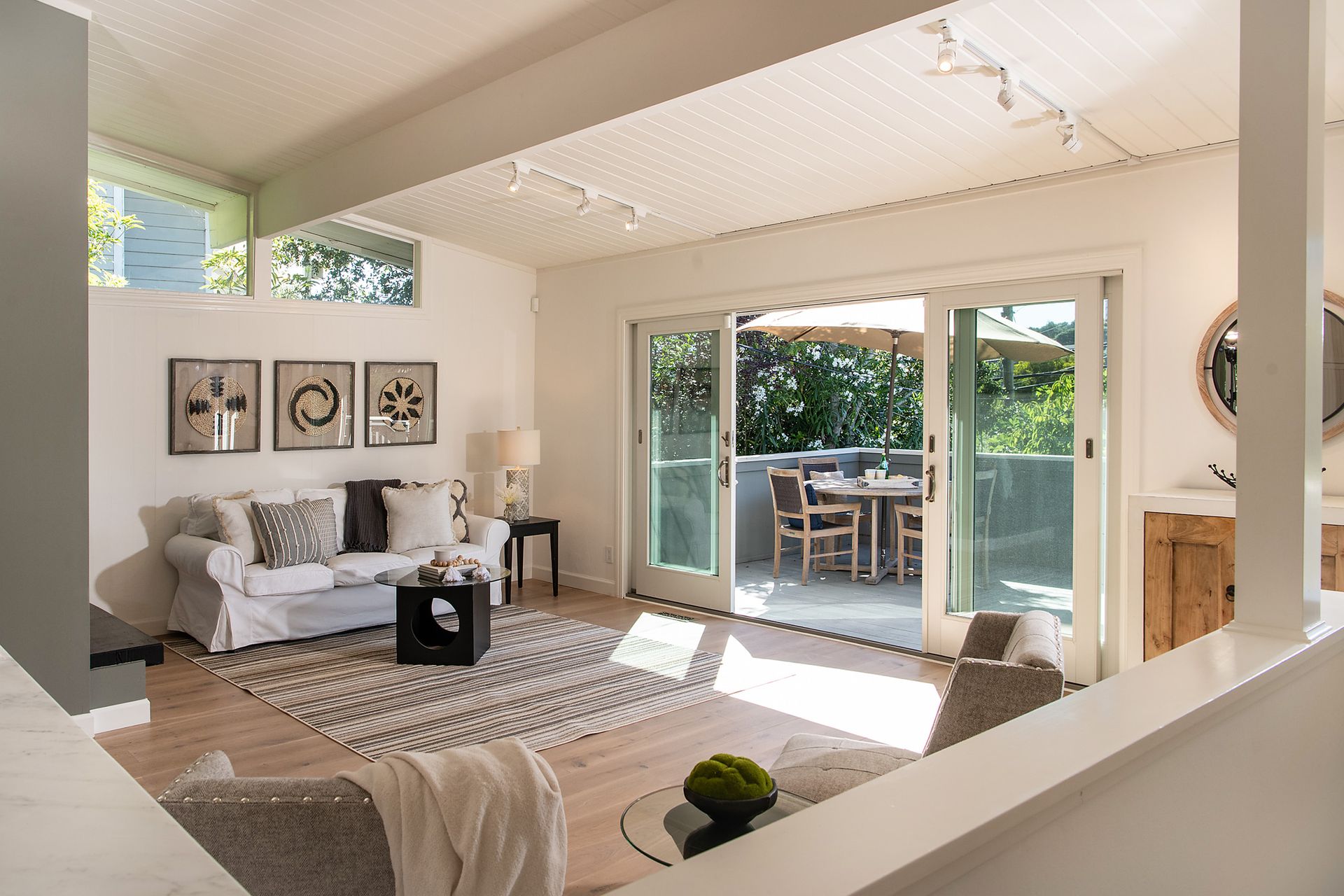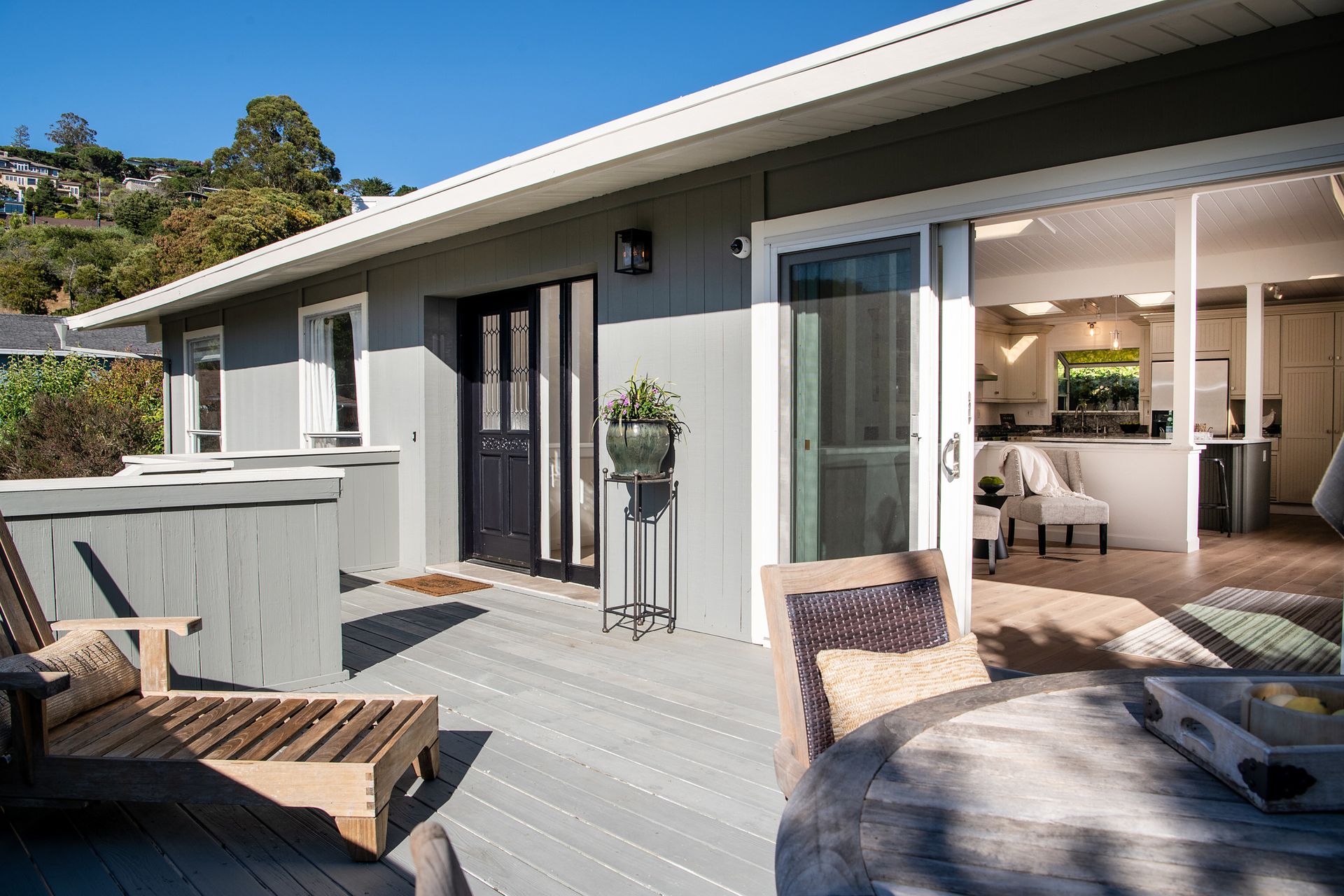 Location, Location, LOCATION! This incredible four bedroom, three bath home is close to the Tiburon Peninsula Club and Downtown Tiburon, with all they have to offer. Enjoy an assortment of restaurants, grocery shopping options, a library, a ferry, yacht clubs, a trail along the water, award winning schools, parks and more–What a LIFESTYLE! This spacious, two-story home has recently been updated to reflect a modern beach lover’s aesthetic. The updated chef’s kitchen features stainless appliances, skylights, a huge center island that brings in the colors of the beach with a mix of granite and marble countertops, and wide plank rustic oak flooring cradled with bar stools to accentuate the main hub for casual, open-style living. The dining area and spacious living room are framed with high windows for exceptional afternoon lighting and a double-sided fireplace for enjoying cool evenings when the fog comes over the hills of Sausalito keeping Tiburon mild in temperature. A spacious, sundrenched deck, ideal for daily indoor-outdoor living awaits. Find three bedrooms upstairs on the main floor, including a second primary suite and a huge primary bedroom/bonus room downstairs at street level with its own spa bathroom and wet bar. Don’t miss the sweet, brick covered patio, which comes alive at night when it’s time for a glass of wine around the fire pit with guests. A full-sized two-car garage offers LOTS of storage. Experience the Downtown Tiburon lifestyle today!