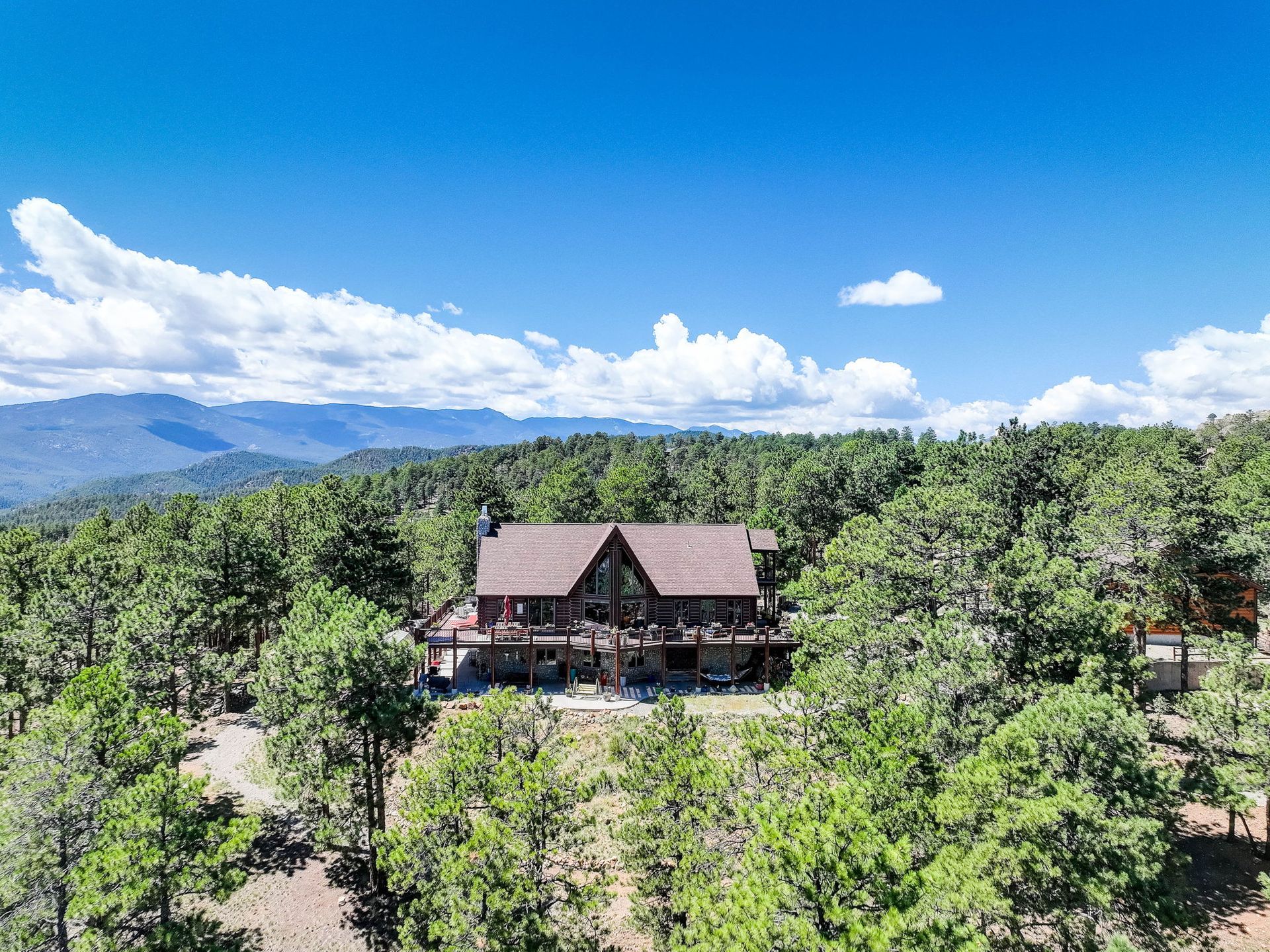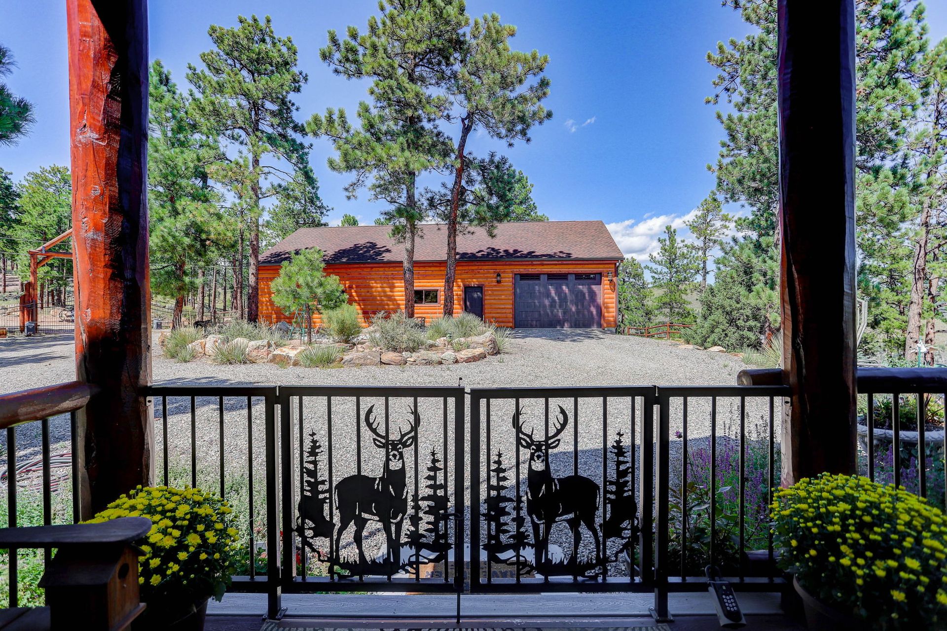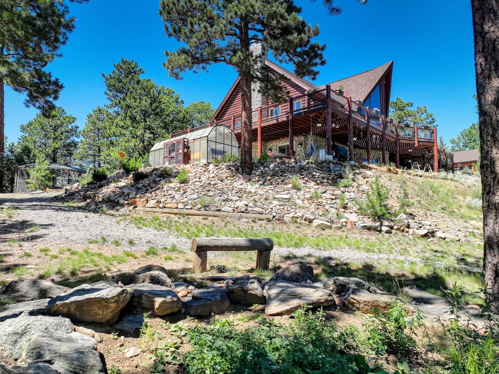 A spectacular 20-acre property that sits above Pine Lake and has private access to the Platte River. You simply cannot find a more ideal Rocky Mountain Getaway. The exterior is gated and fenced with amazing landscaping and attention to detail. A greenhouse and an enclosed outdoor garden are great for all you gardeners. The perfectly stained and sealed log home has a composite wrap-around deck with log posts capped in copper: Jaw-Dropping views! The interior is built around open-concept living with a newly renovated kitchen, high-end appliances and a butler's pantry. The main floor has two bedrooms and a full bathroom. The primary suite loft has a private covered porch for year-round enjoyment. The walk-out lower level is an entertainer's dream and comes nicely equipped with a log bar and a log Murphy bed as well as a log poker table. Two River Rock encased fireplaces provide great heat and ambiance in the winter and the radiant in-floor heat keeps everyone warm and cozy year-round. The house is on natural gas but also has a backup generator powered by propane to make sure no matter what happens you do not skip a beat. A three-car attached and a massive eight-car detached garage...this home has so much to offer, schedule your private showing before it's gone!