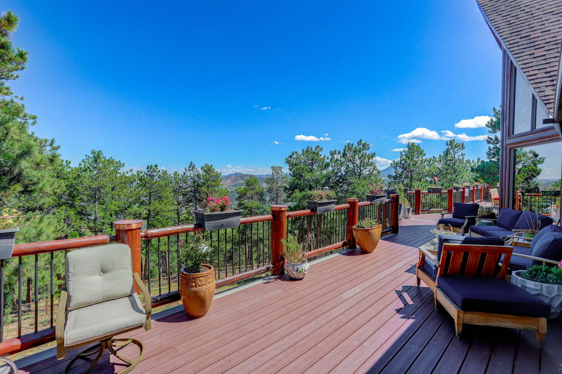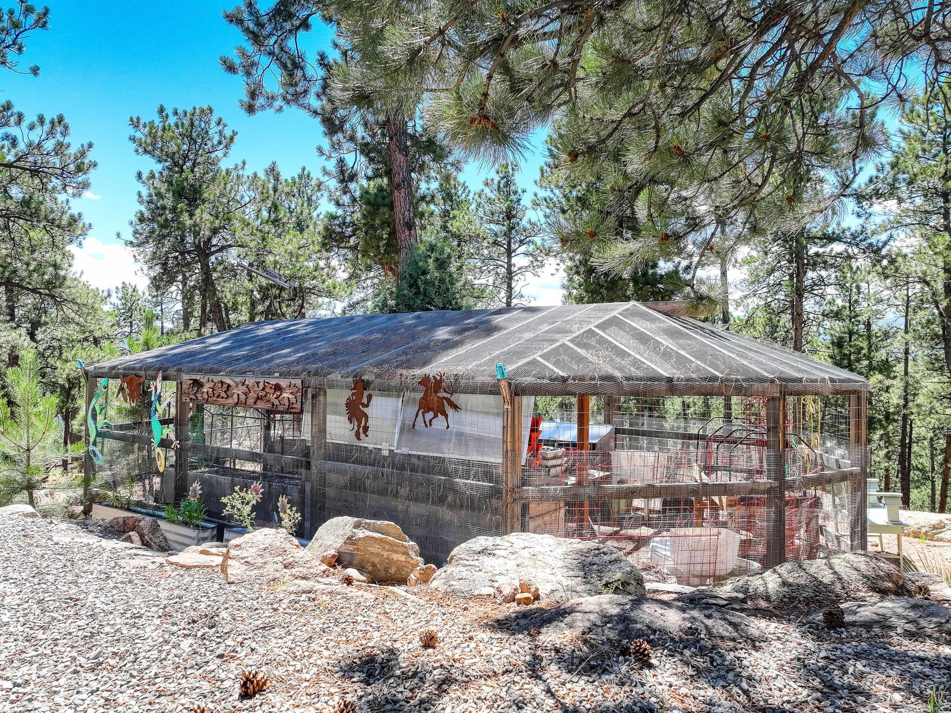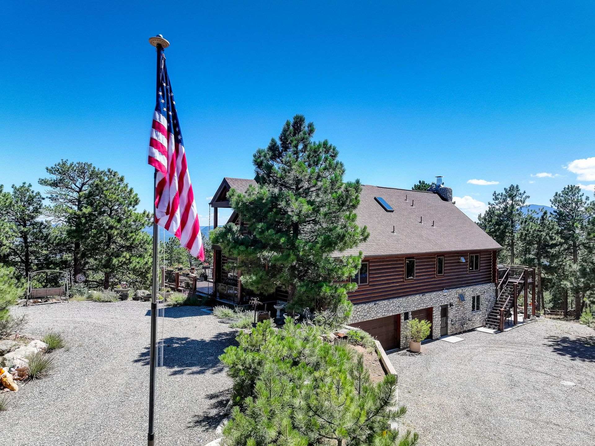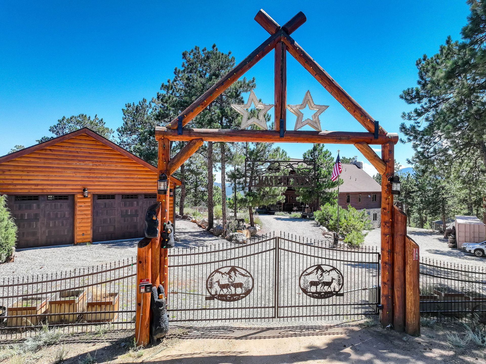 A spectacular 20-acre property that sits above Pine Lake and has private access to the Platte River. You simply cannot find a more ideal Rocky Mountain Getaway. The exterior is gated and fenced with amazing landscaping and attention to detail. A greenhouse and an enclosed outdoor garden are great for all you gardeners. The perfectly stained and sealed log home has a composite wrap-around deck with log posts capped in copper: Jaw-Dropping views! The interior is built around open-concept living with a newly renovated kitchen, high-end appliances and a butler's pantry. The main floor has two bedrooms and a full bathroom. The primary suite loft has a private covered porch for year-round enjoyment. The walk-out lower level is an entertainer's dream and comes nicely equipped with a log bar and a log Murphy bed as well as a log poker table. Two River Rock encased fireplaces provide great heat and ambiance in the winter and the radiant in-floor heat keeps everyone warm and cozy year-round. The house is on natural gas but also has a backup generator powered by propane to make sure no matter what happens you do not skip a beat. A three-car attached and a massive eight-car detached garage...this home has so much to offer, schedule your private showing before it's gone!