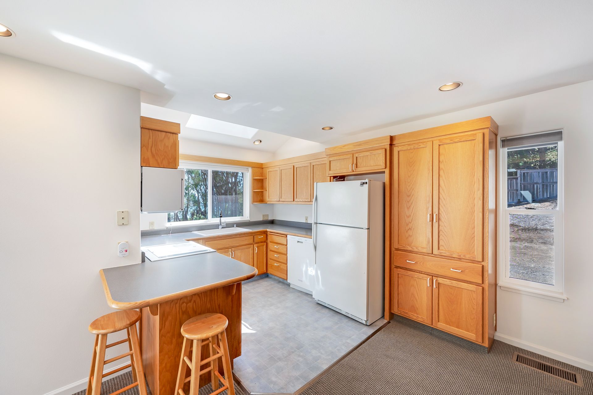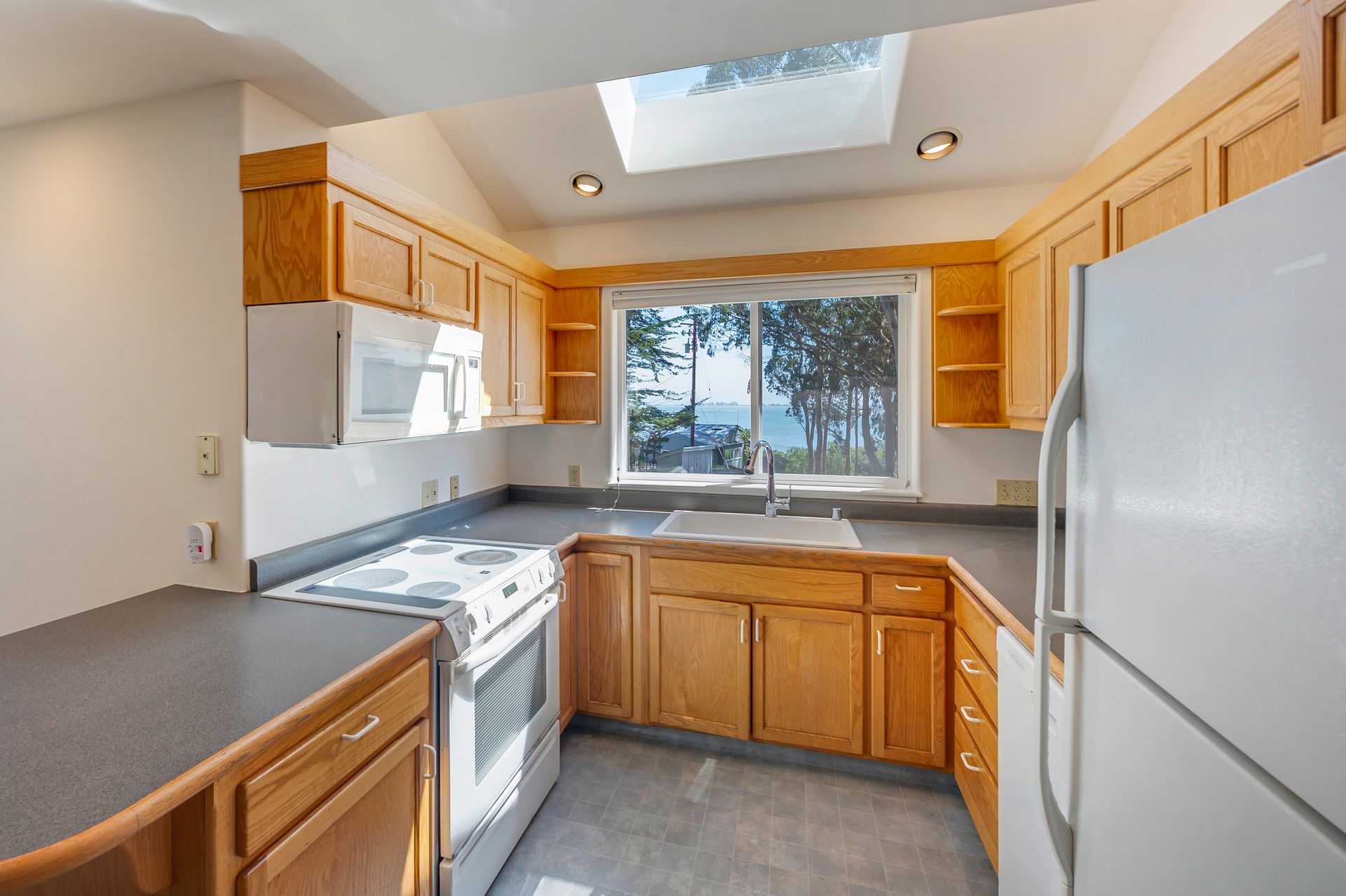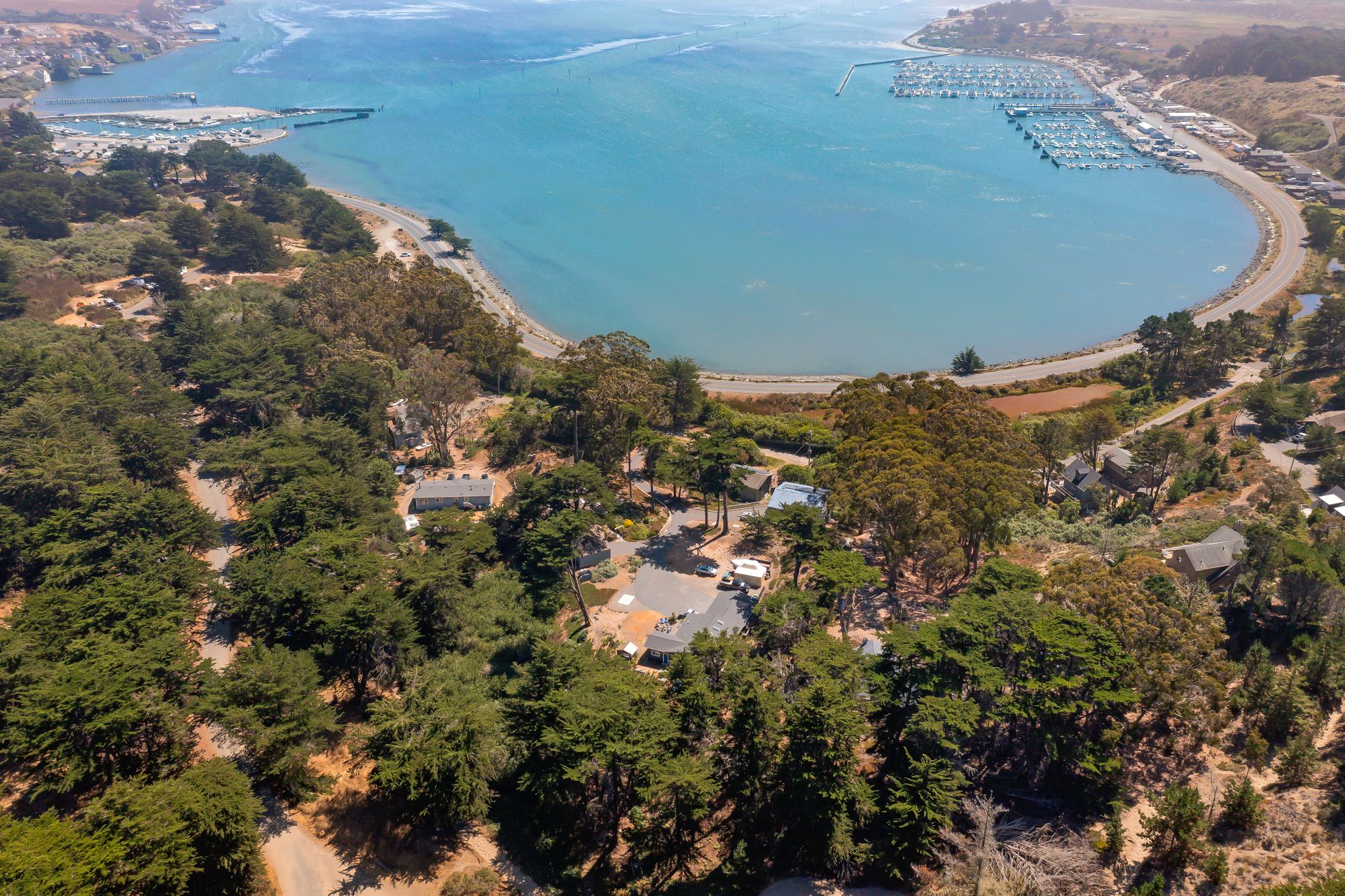 The first time offered for sale, this charming home is in great condition and enjoys a nice water view of the bay. One of the few locations in Bodega Bay protected from the prevailing northwest winds and situated on a large sized lot, this home is nestled into coastal woods backing to Bodega Dunes, a Sonoma Coast State Park with miles of trails accessed from the backyard gate and beach access just a short distance away! This two bedroom, two bathroom home has detached two car garage/carport, already wired for an electric car charger or hot tub. There is a fully enclosed garage space which includes a loft storage area. There is also plentiful space for RV and/or boat parking. Wonderfully maintained with fresh exterior paint and a recently replaced Coleman furnace with a digital wall thermostat for central heating. This is a wonderful opportunity to come live on the coast!