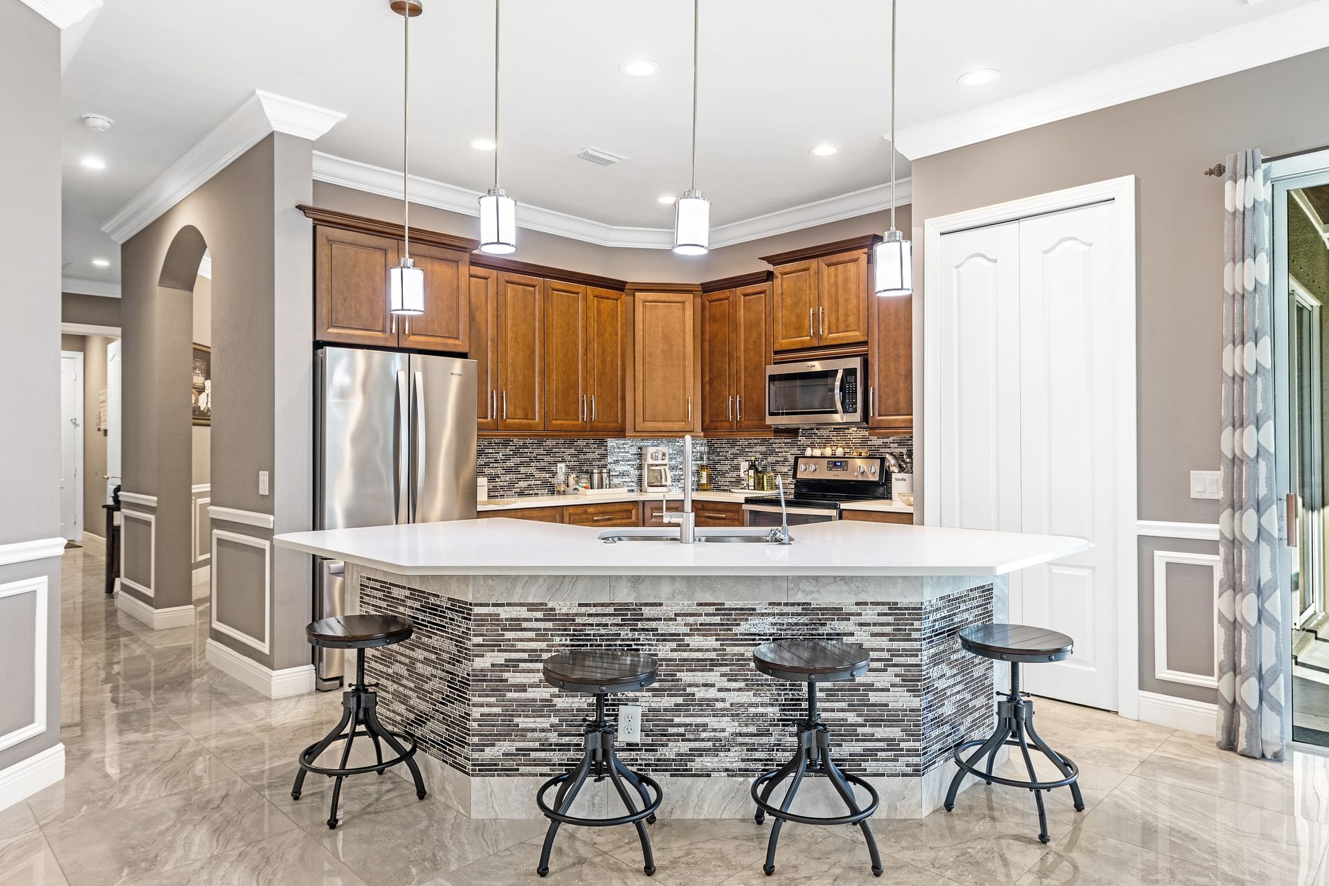 Amazing Opportunity! Like a new house with many upgrades Build in 2017.High ceilings with detailed crown molding, beautiful double front door, window plantation shutter, quartz counter tops, back splash, stainless steal appliances, pavers driveway, ready pool bathroom side of lanai ready for your pool, and much more.