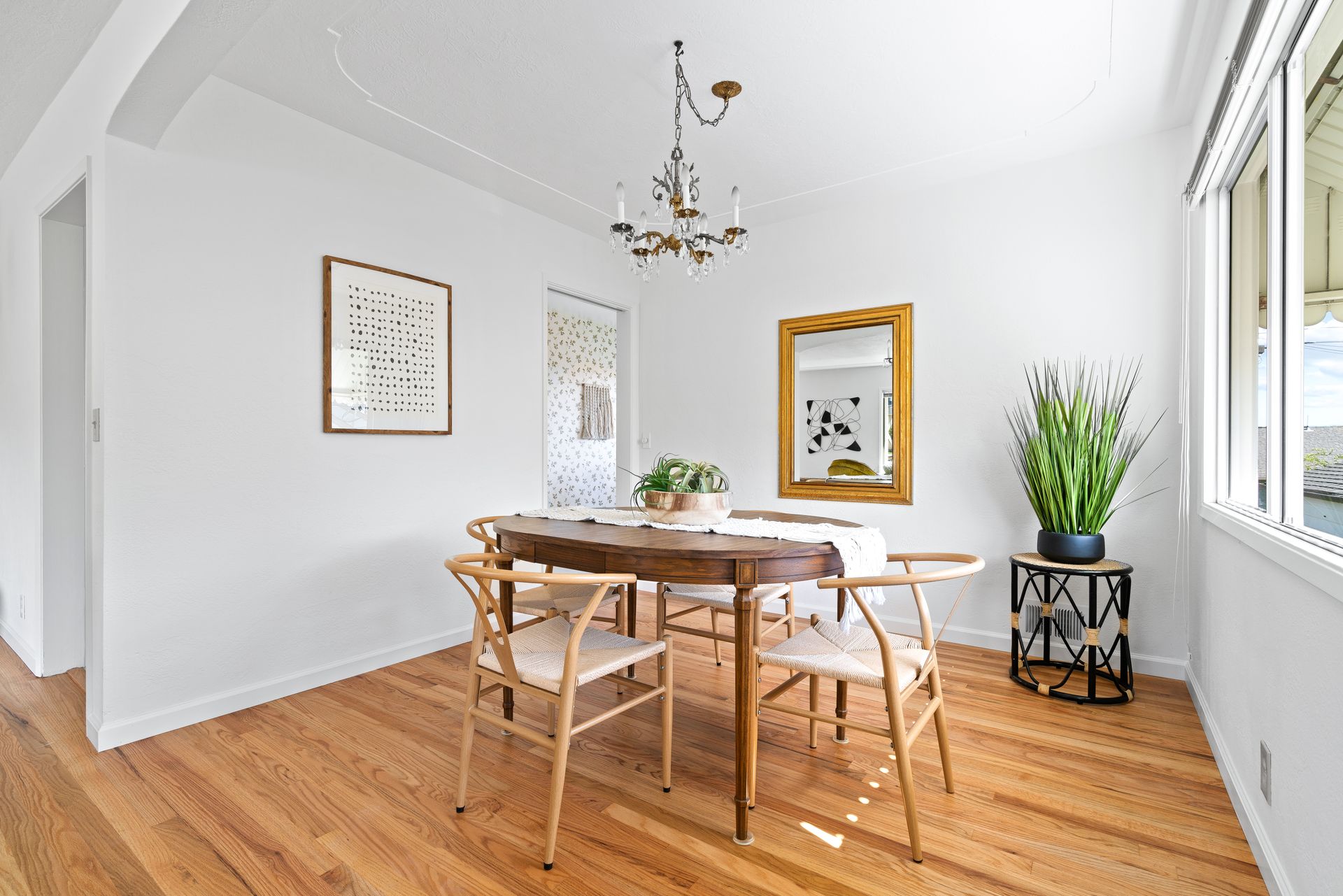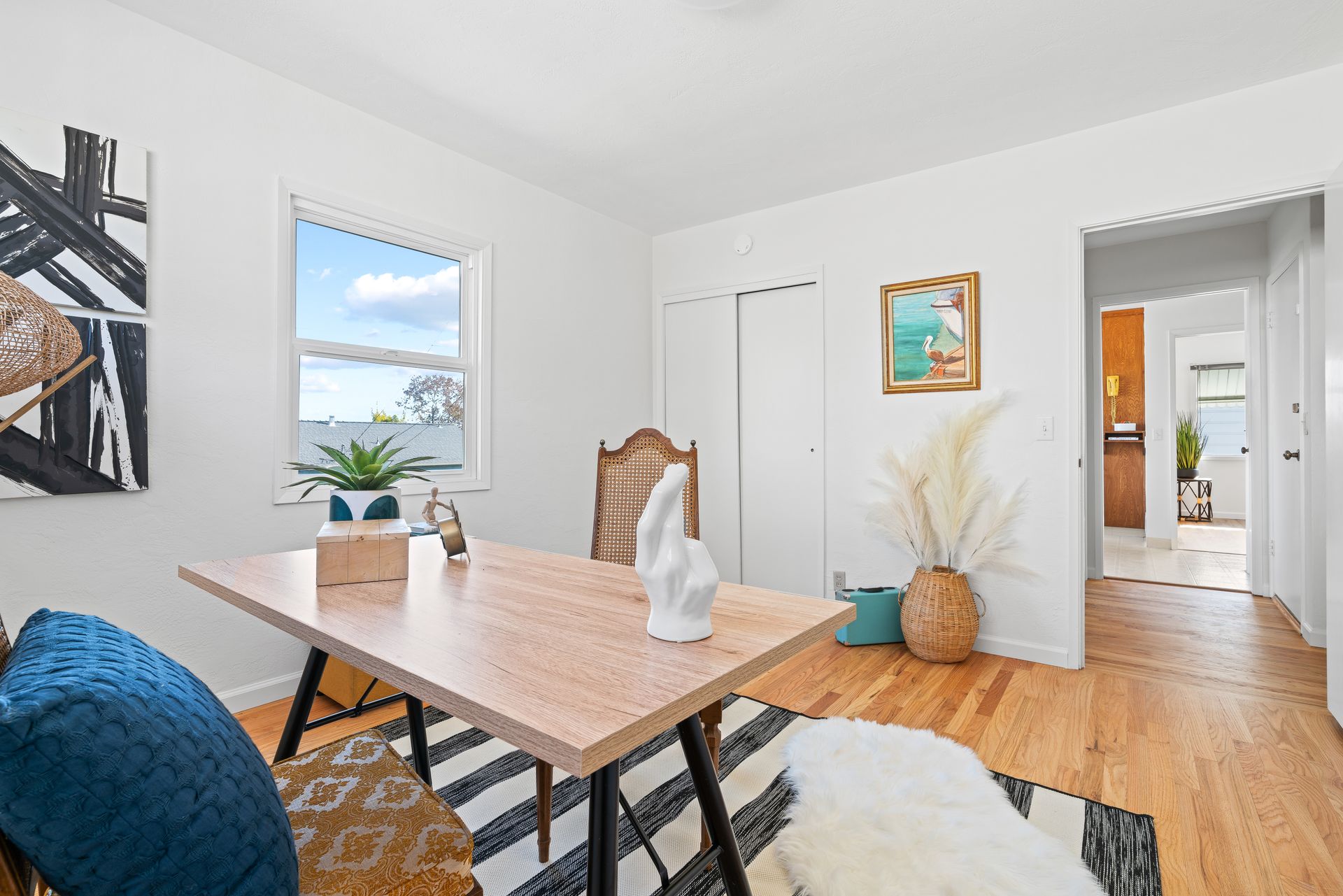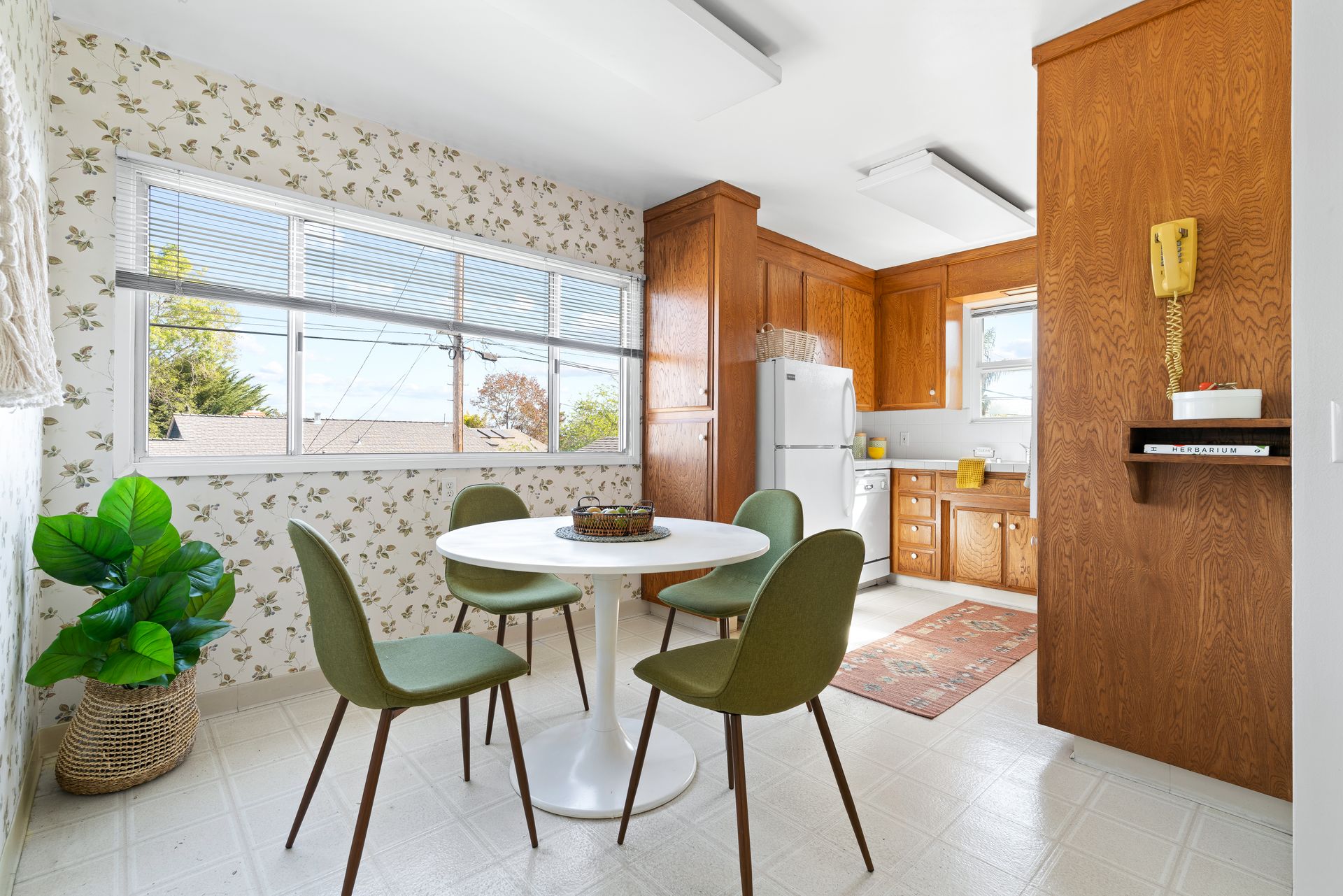 Whether you already have deep roots here or are hoping to sprout a new life, you’ll likely find this classic, middle-Westside home ideal! The neighborhood is rooted in the 50’s when homes were solid, practical and unpretentious. It’s where relatives & friends feasted on fried artichokes & abalone out-back, and youngsters had Brussels sprout fights and scooted down Miramar on Schwinns & home-made skateboards. Nat King Cole, Doris Day and Italian opera crooned from the record player as the evening sun streamed across beautiful hardwood floors - It still does! A sensible kitchen comfortably accommodates both fancy and simple fare which you can enjoy at the kitchen or dining room table depending on the occasion.