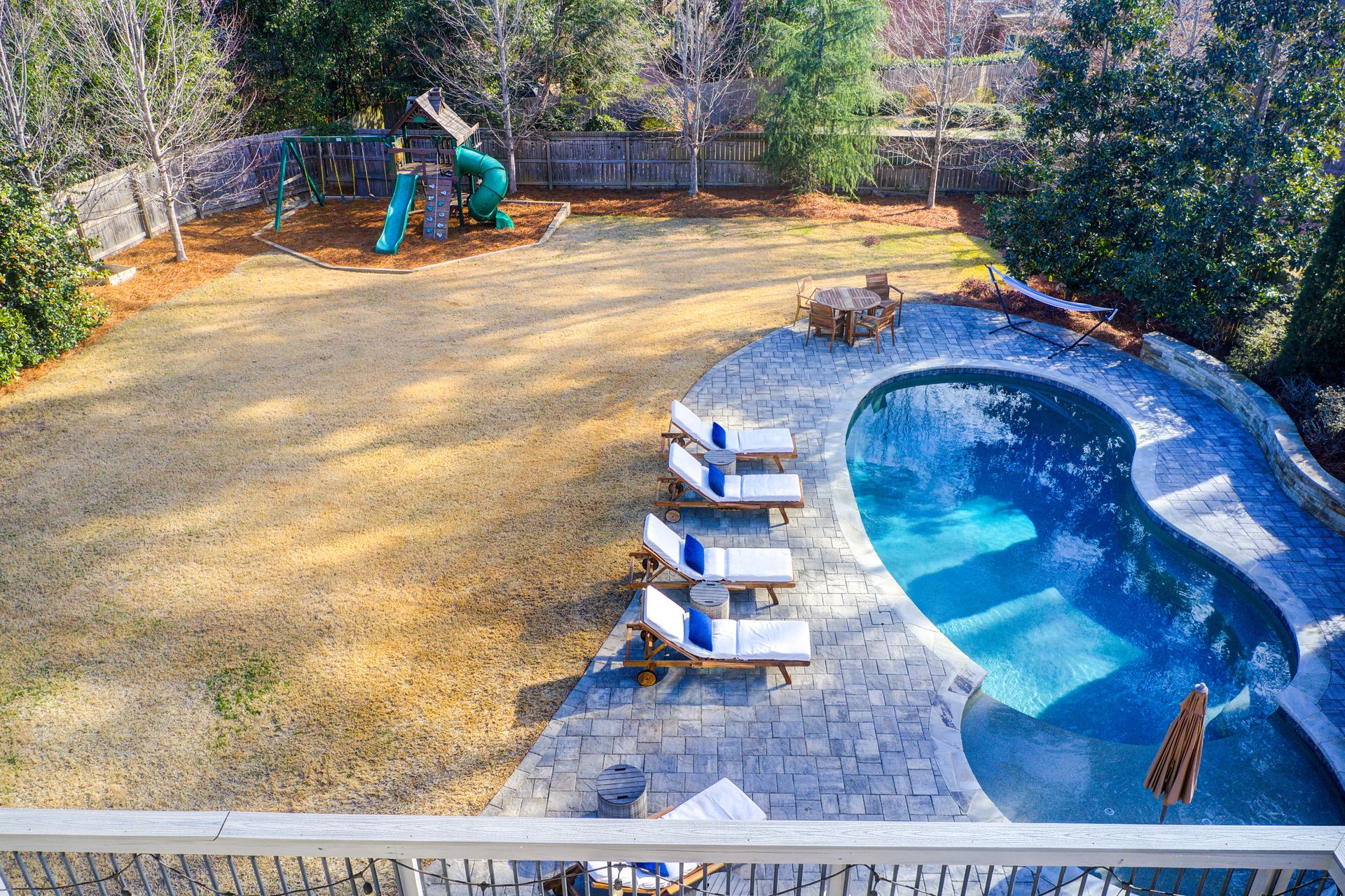 The quiet backyard oasis features a large fenced-in yard that offers endless possibilities for fun and relaxation. A heated pool invites you to enjoy summer days, while the expansive lawn provides plenty of room to play and unwind. Be sure to enjoy a cool drink in the luxury hot tub! The main level deck, perfect for alfresco dining, overlooks this serene outdoor haven. This home offers outdoor living at its best!