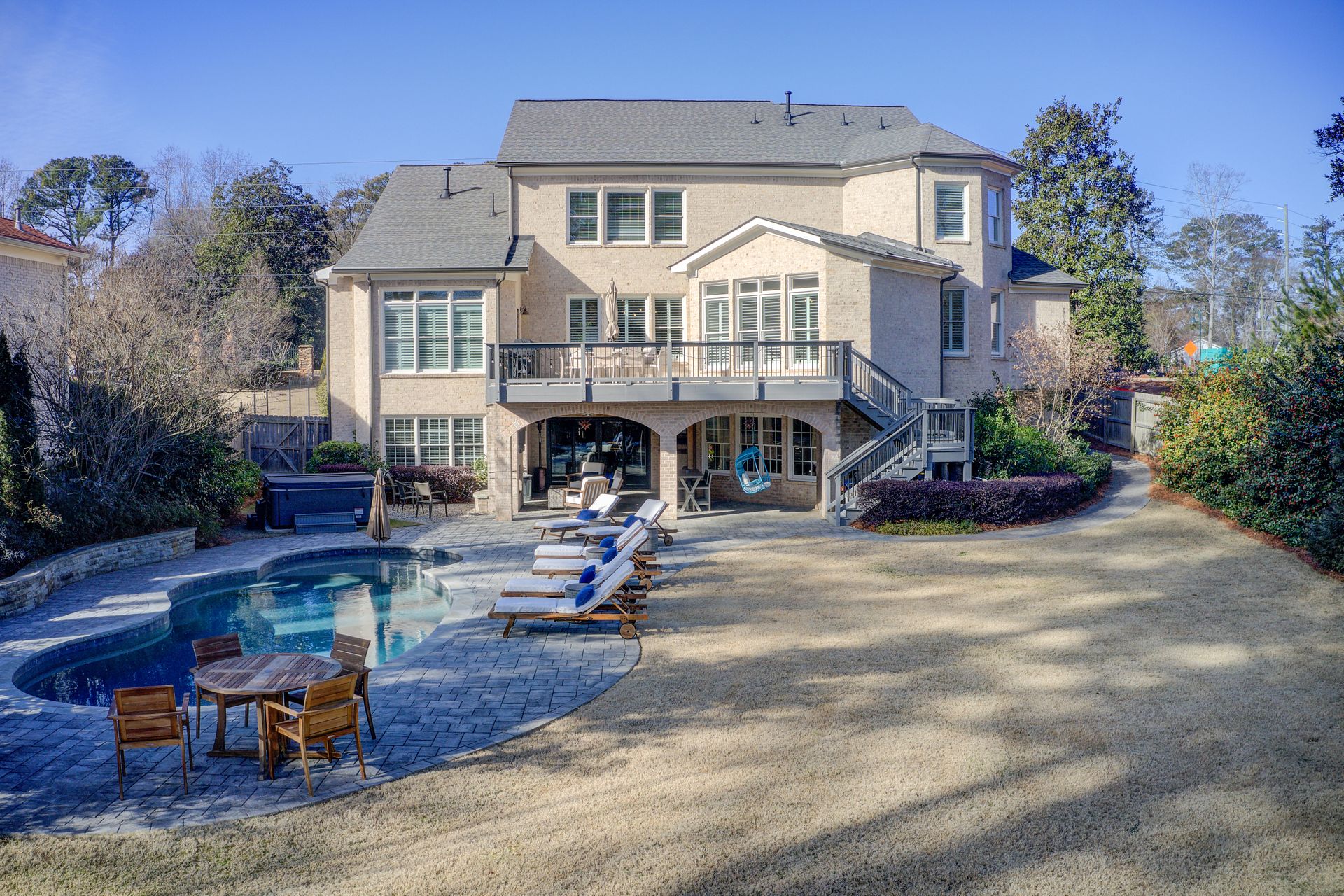 Discover resort-style living where comfort meets sophistication in this beautifully updated 6-bedroom, 6.5-bathroom home located in the heart of Sandy Springs. Boasting a thoughtful layout and premium finishes, this home is perfect for both everyday living and hosting unforgettable gatherings. The main level features a spacious primary suite with a newly updated bathroom and a spacious walk-in closet. The heart of the home is the well-appointed kitchen, offering modern appliances and an adjacent dining area for casual meals. For larger occasions, an open formal dining area provides the perfect space to gather and celebrate. The kitchen flows seamlessly into the living room, creating a warm and inviting environment. A large private office, mudroom, a custom walk-in pantry, and an expansive deck overlooking the backyard completes this level. Upstairs, you'll find four generously sized bedrooms, each with its own en-suite bathroom. A spacious bonus room serves as a playroom, additional living space, or a quiet retreat for hobbies and relaxation.