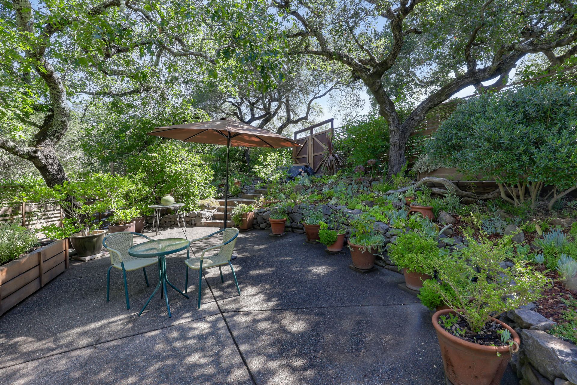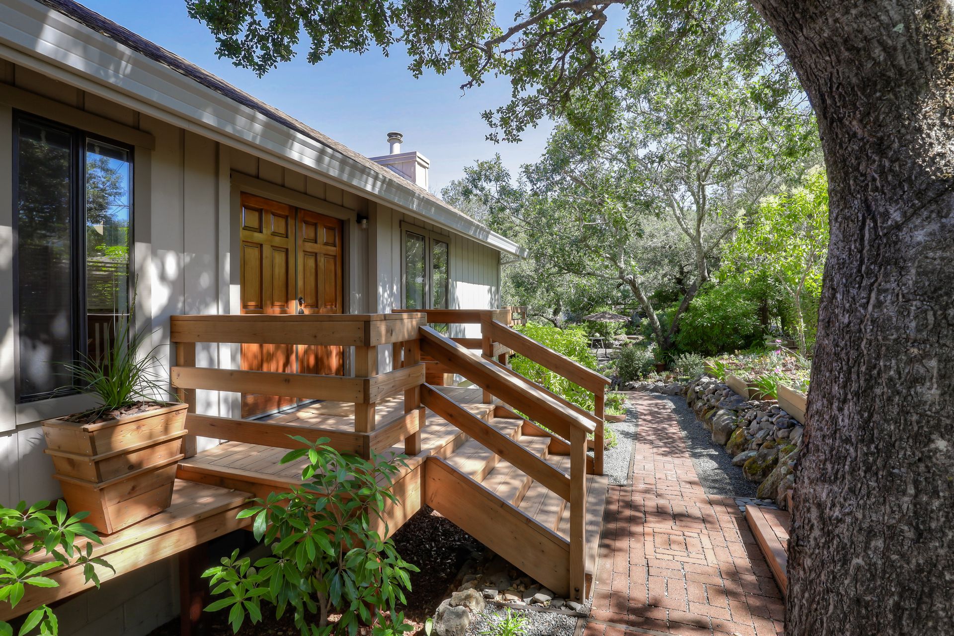 Serene, private, with a gated and custom designed fenced property. Vaulted living room greets you with views overlooking the garden with sitting patios, mature oaks, succulents and flowering shrubs. Three bedrooms are downstairs. The master opens to the rock wall lined patio, garden and hot tub. The 2nd bedroom with sliding door to side yard and private entry with a walk-in closet. This home boasts fresh interior paint, updated baths, newer decks, newer furnace, possible wine cellar and an encapsulated attic, loads storage and whole house fan. Ideally located near to Boyes Hot Springs, Glen Ellen, wineries and Sonoma Square. Don't miss this meticulous Sonoma Valley home.
