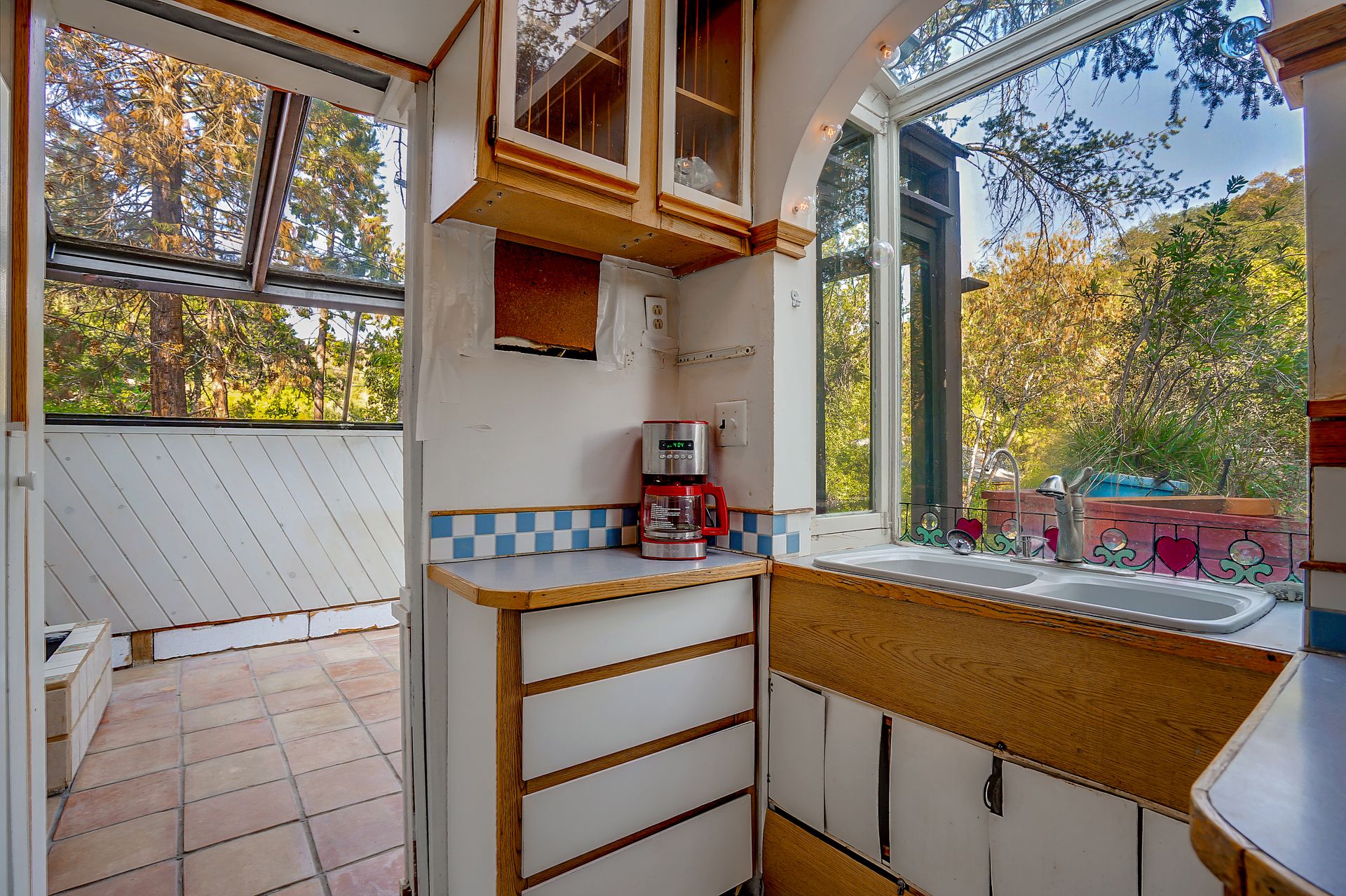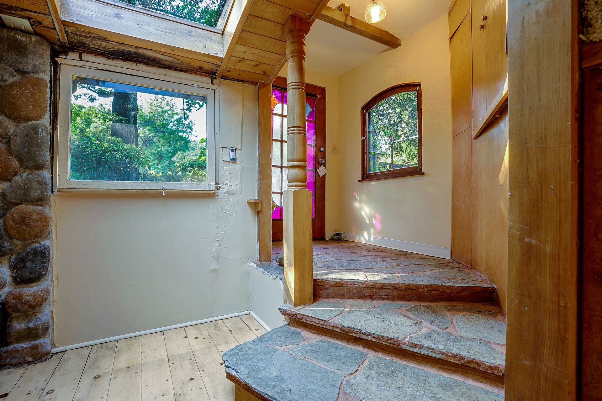 This is your quintessential artist house; whimsical and magical. Get ready to pull up your sleeves and get to work bringing it back to life. As you open the front door you will be greeted by a stone entrance and hardwood flooring into the living room. The galley kitchen leads to a dining room enclosed by a glass and tiled floor. Many stained-glass windows are found throughout. Records show it as a three bedroom, but it is functioning as a two bedroom. In the backyard you will find a deck that overlooks stone walkways, gardens and a detached garage. In a fabulous area of Sonoma with exceptional neighbors, this home is in the heart of Wine Country!