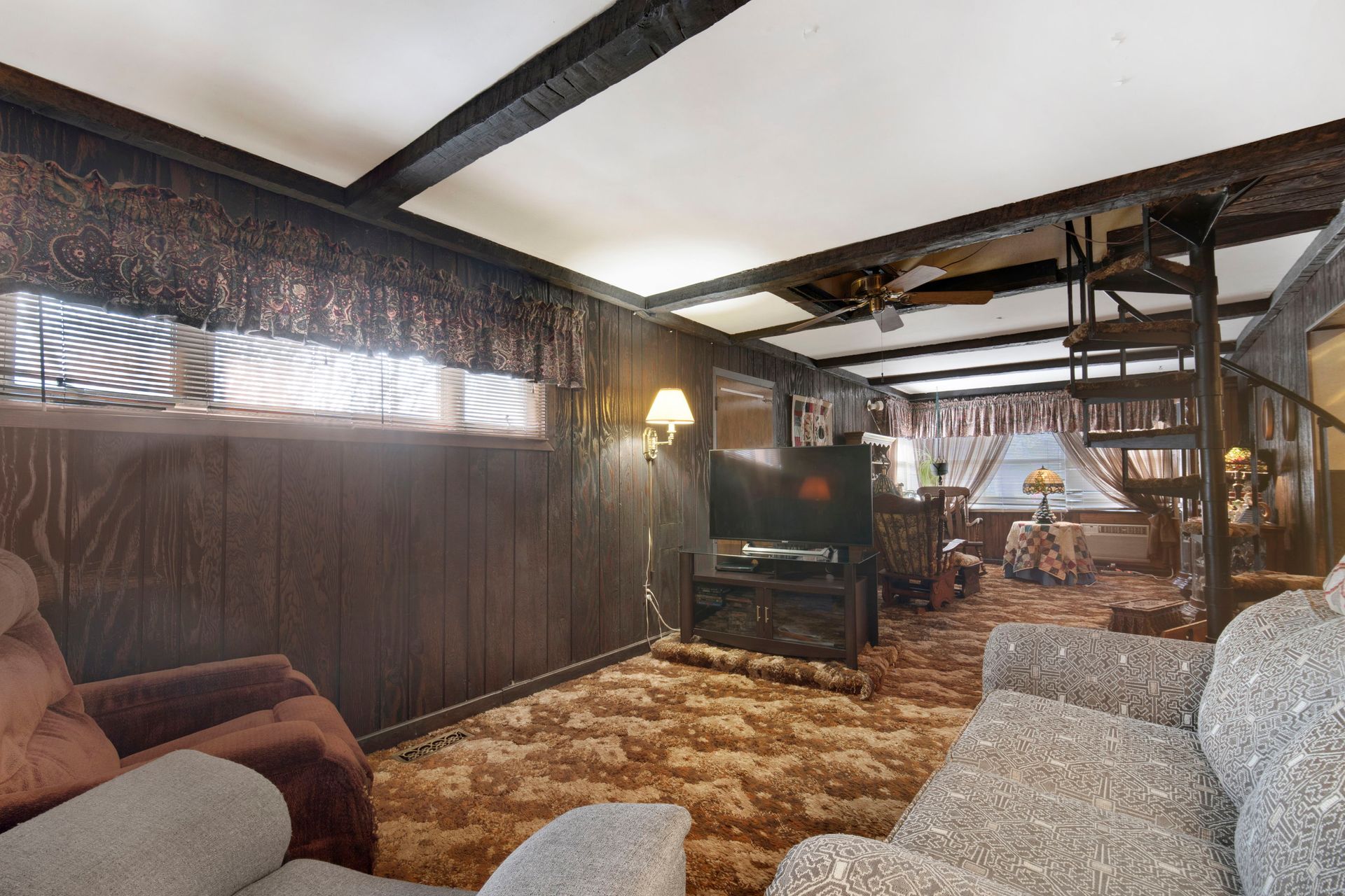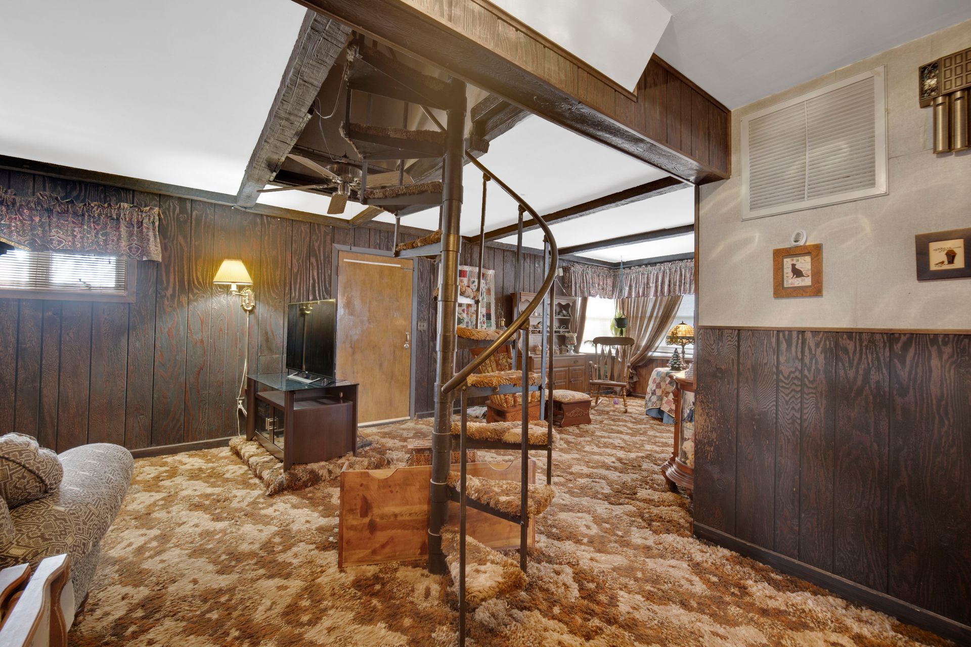 **LANSING-CALUMET Subdivision** – This Cape Cod Expandable home features four bedrooms and one and a half baths! The large, sprawling living room and spacious kitchen include an eating area and laundry facilities on the ground level. In the late 1970s, the traditional staircase was removed, and the front rooms were opened up with a spiral staircase; however, the original opening remains if you wish to rebuild the staircase. An addition that started as a family room has since been converted into a master bedroom, complete with a closet. The exterior door for the addition has been bricked in, which can be seen from the yard. The upstairs bedrooms are spacious, and there is ample opportunity to expand the half bath into a full bath. Some new windows have been installed throughout the house. The home was built in 1955 and has been well-maintained by the original family, but it is now ready for updates and renovations. This is an excellent opportunity for rehabbers or anyone looking to remodel a home for themselves. With approximately 1,600 square feet of living space and room to expand, the backyard features a privacy fence and a two-car garage with a new overhead door. This property offers great potential!