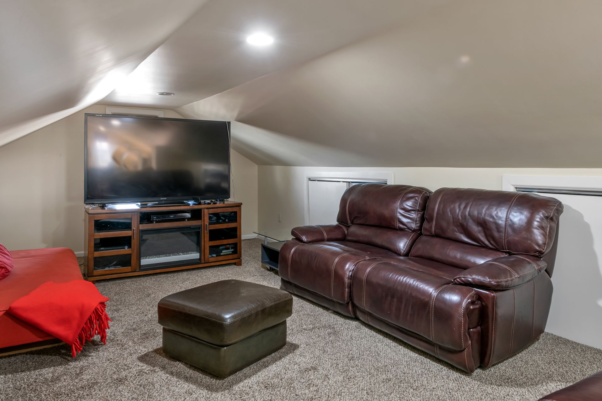 First level offers living room, dining room, three bedrooms, two bathrooms, kitchen with breakfast bar and stainless steel appliances.