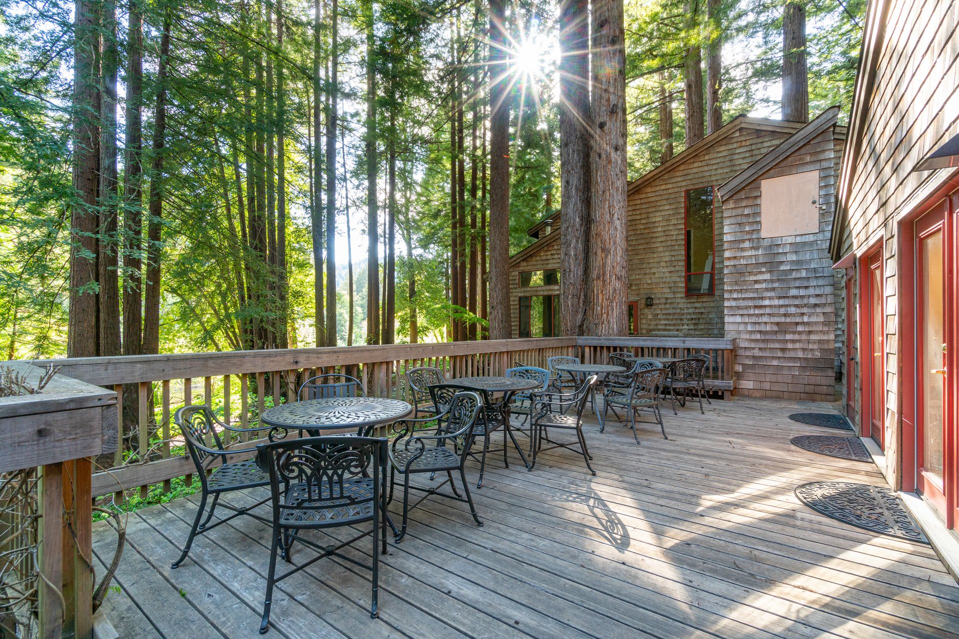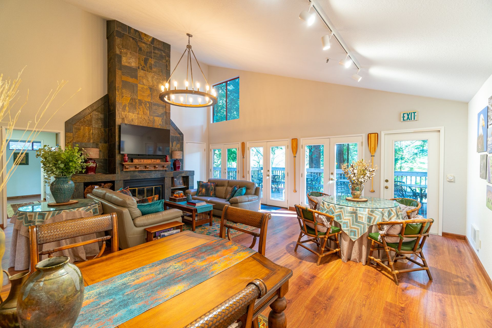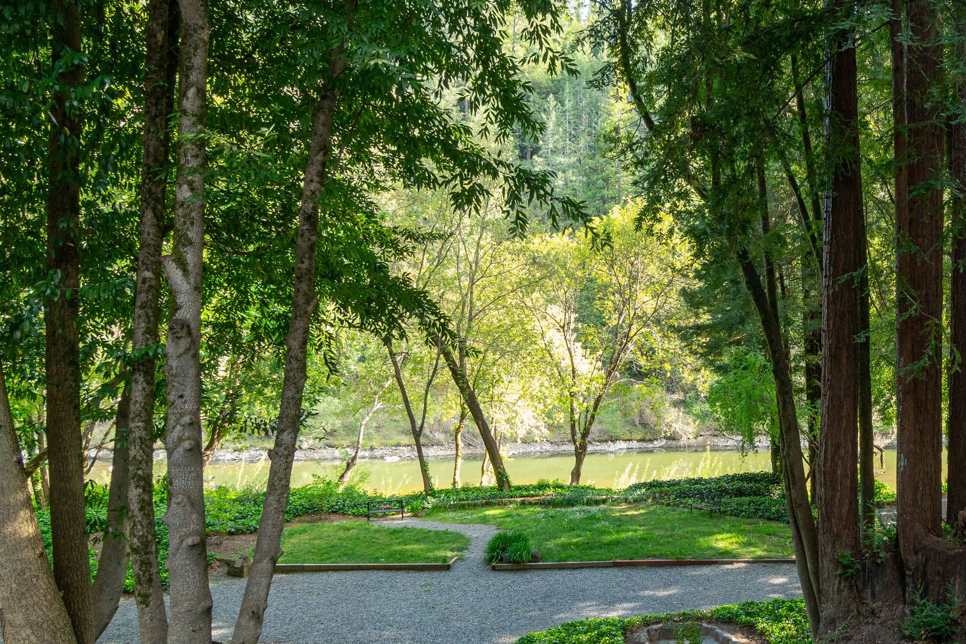 Tucked away in our majestic redwoods, 17251 Verba Lane is nestled in the gated Riverfront community, Dubrava Village, moments from downtown Guerneville. Picturesque views from your living room will captivate and offer a sense of peace and tranquility. Enjoy a spacious and contemporary layout with a formal entry on the ground floor, a bright and comforting main level with vaulted ceilings and a luxurious penthouse feel on the third floor. Just outside, nature awaits with idyllic paths, private river access and serene sitting areas. Your own slice of heaven beckons!