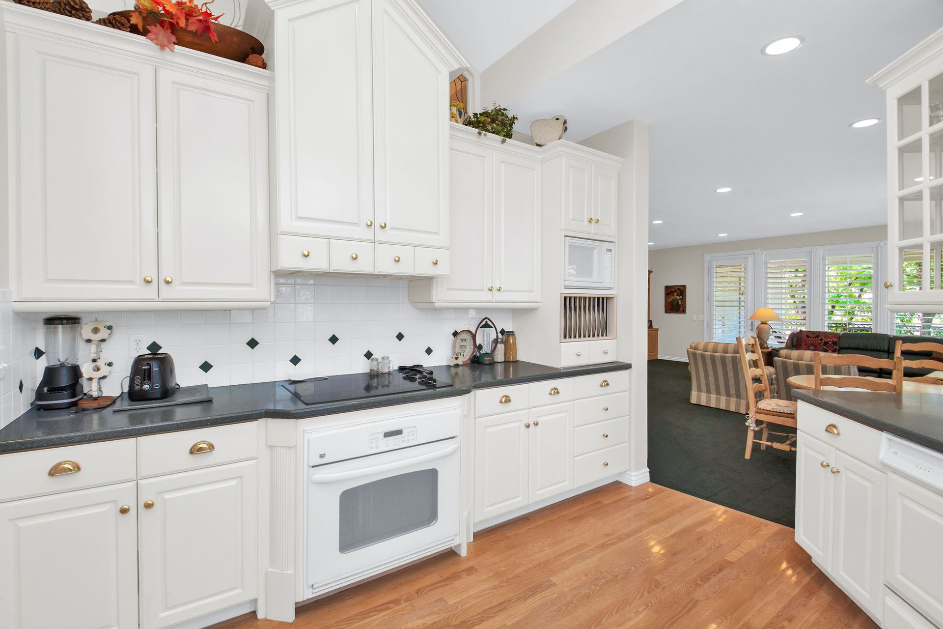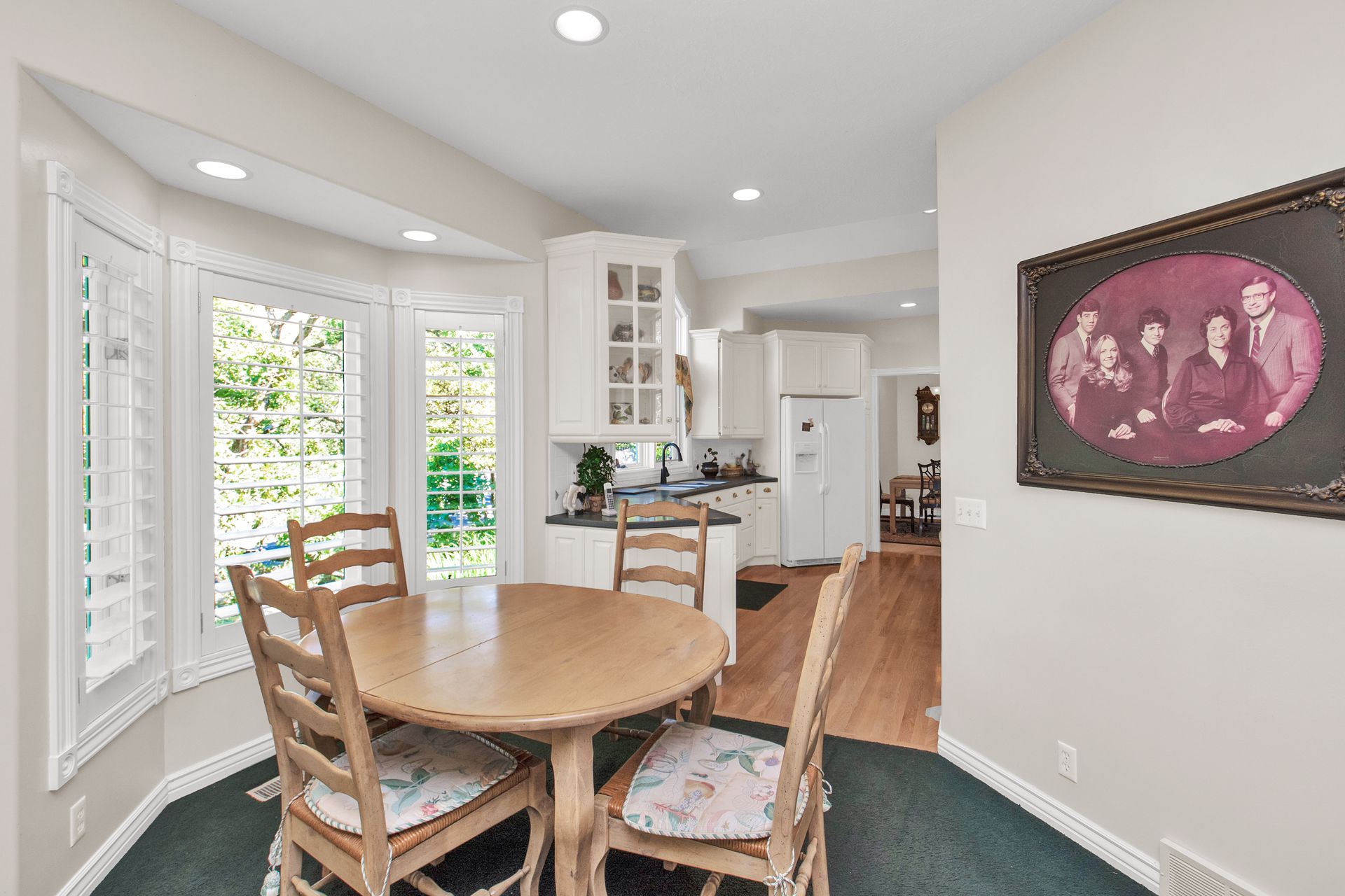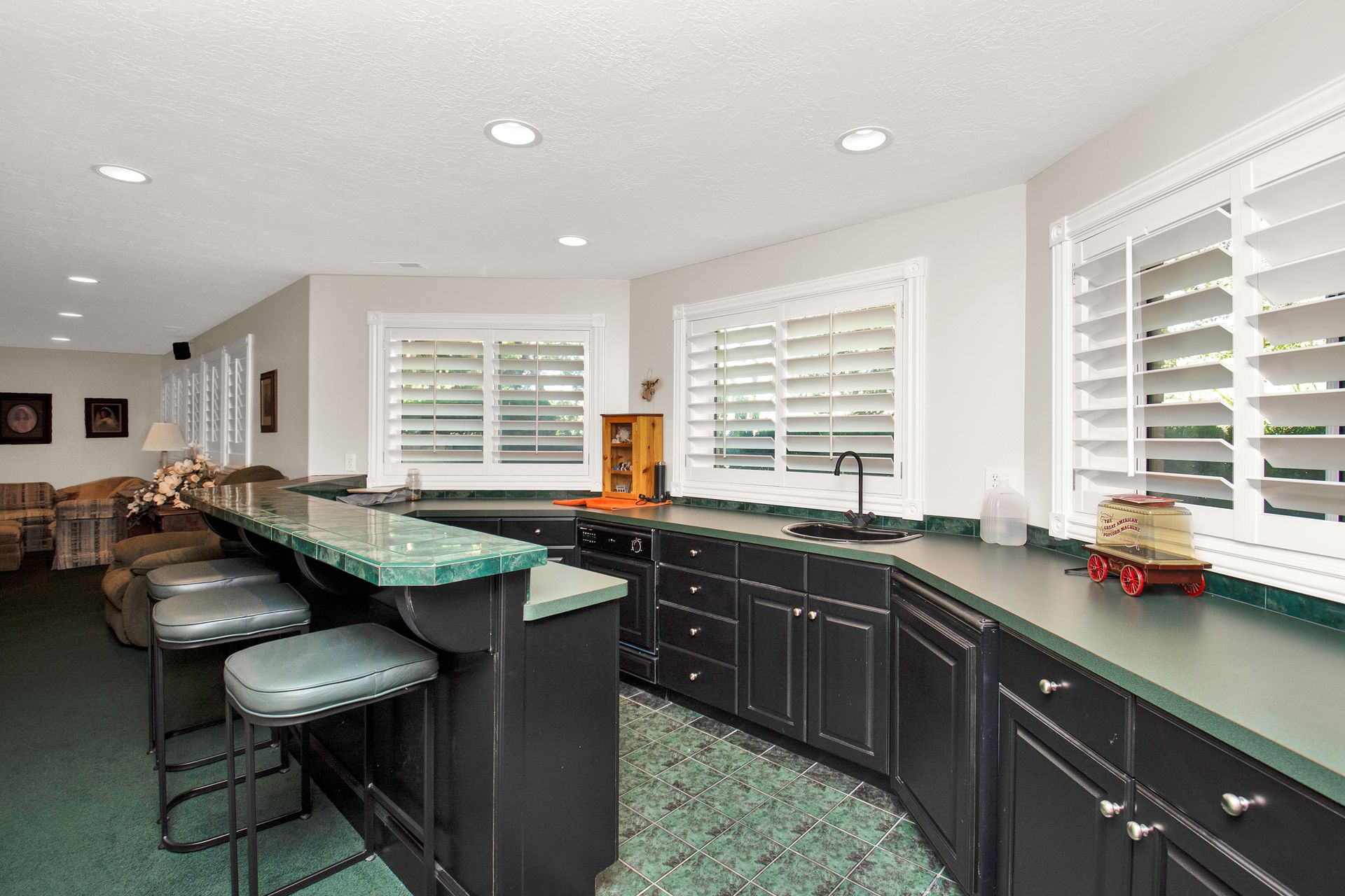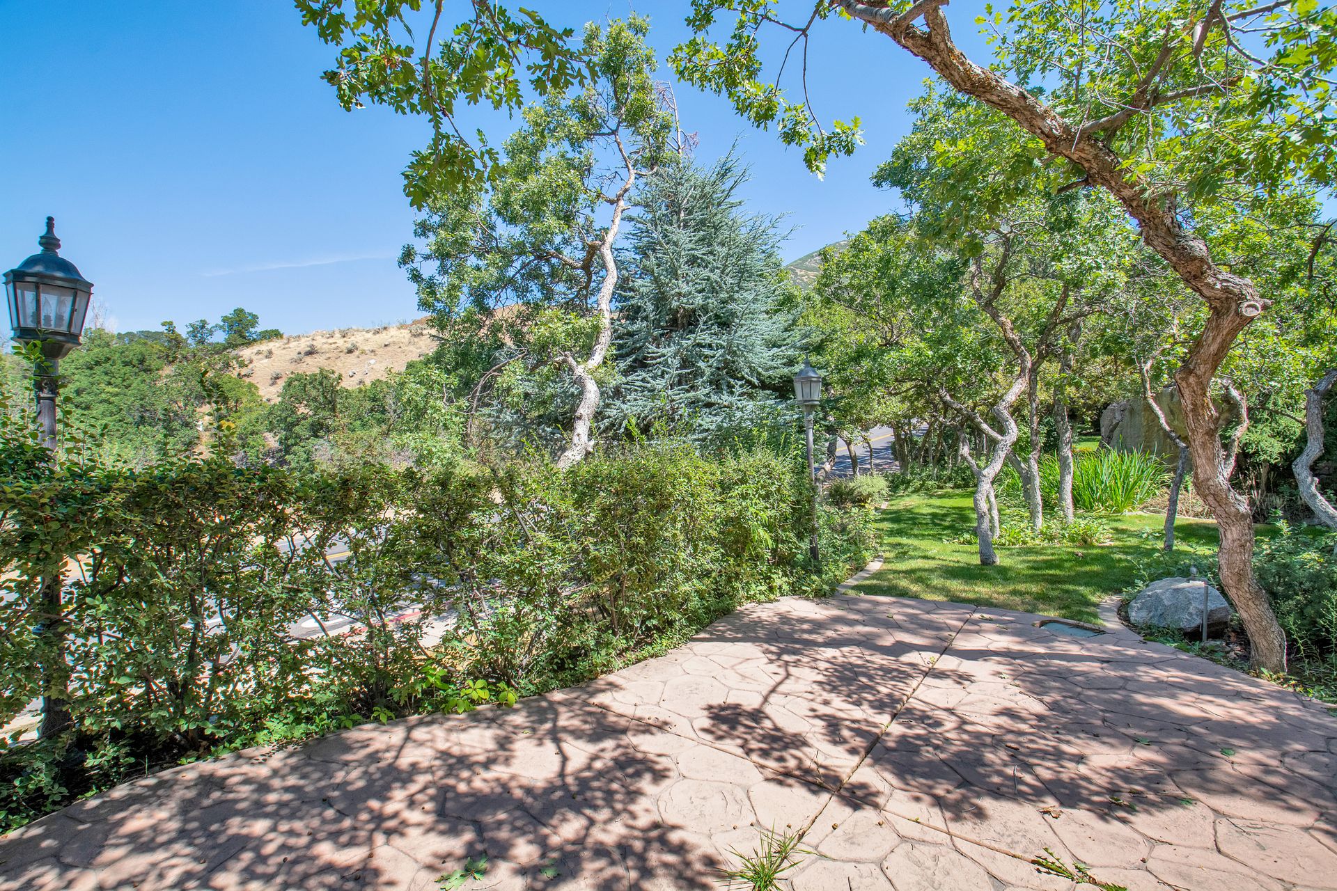 An elegant entry greets you through a lead glass door with matching side lights when you approach. Enter into a beautiful marble floor entry and take in the pillared formal living room with a spacious coffered ceiling. There are plantation shutter window coverings throughout. This home was appointed with the touch of a well-known interior decorator Kaylee Lott. An impressive kitchen with a vaulted ceiling, Corian countertop with an inset range, and unique cabinetry is located next to a breakfast nook and a cozy gathering room with a door that leads to a large deck that includes attached storage. Entertain guests with fine dining served in the comfy dining room. The primary suite is exquisite with the unique elevated ceiling, windows and an en-suite bathroom that has jetted tub and separate shower to enjoy. The lower level is well planned with two bedrooms, two bathrooms, a den, a wet bar and an extra room with a closet, bedroom size but does not have a window for egress or ingress. Come and see if this home feels right for you.