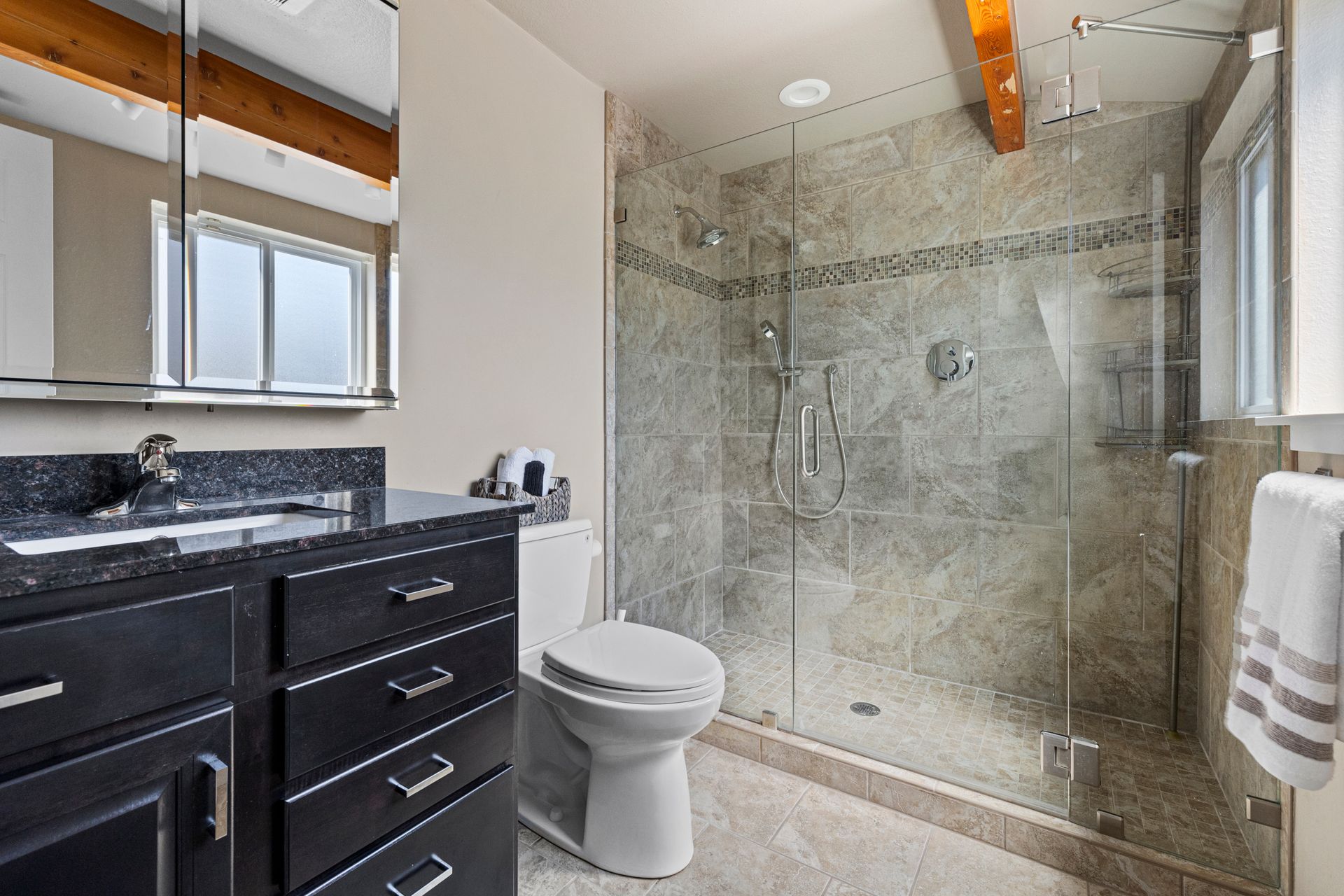 The primary bedroom includes a luxurious shower, perfect for unwinding after a long day. Additional features include double-pane storm windows, high-tech cabling and a security system for peace of mind.