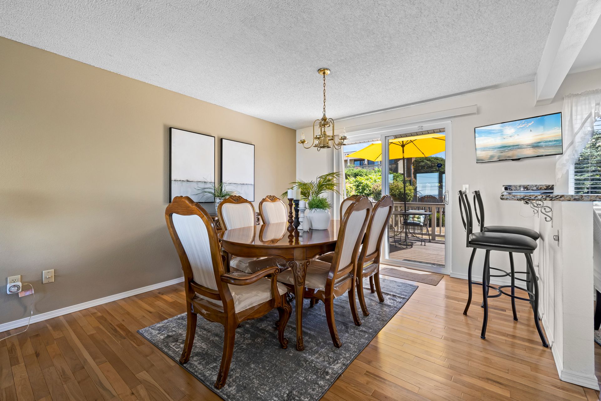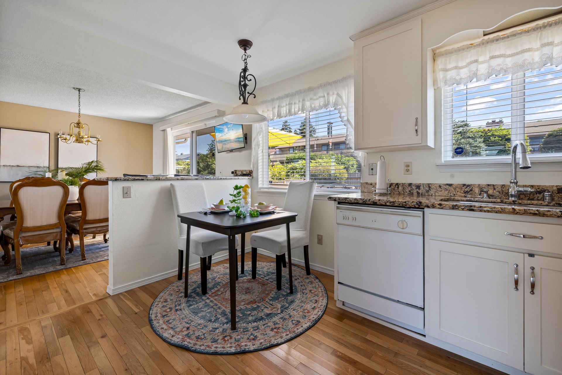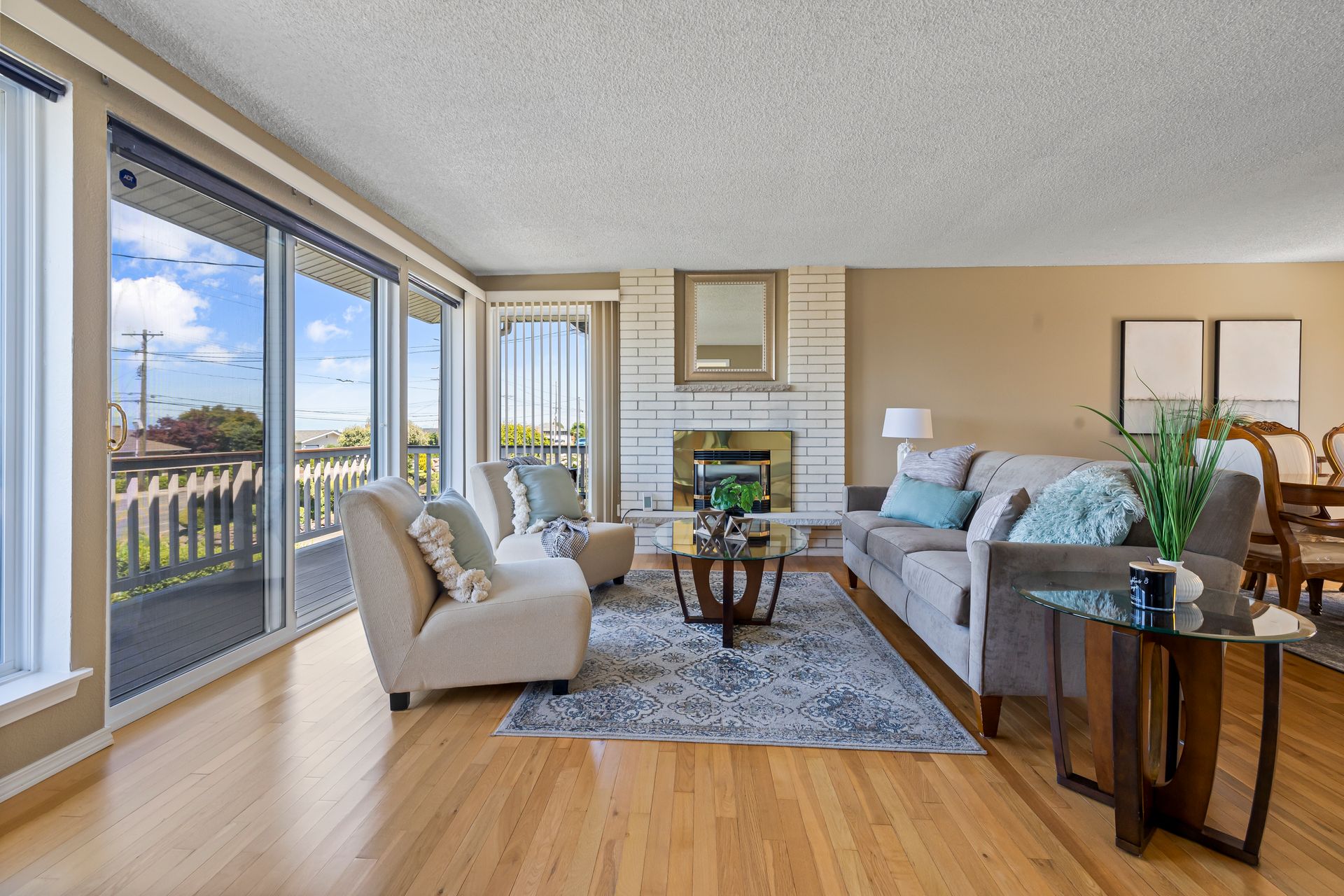 Step inside to find a bright and airy living room with gleaming hardwood floors, a cozy gas and wood fireplace and large windows that flood the space with natural light. The modern kitchen is a chef’s delight, complete with updated appliances, a convenient eat-in nook and an adjoining formal dining area that opens to a deck—perfect for summer BBQs and entertaining guests.