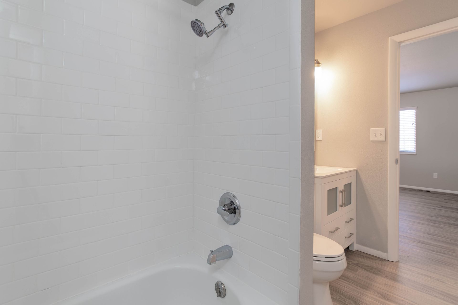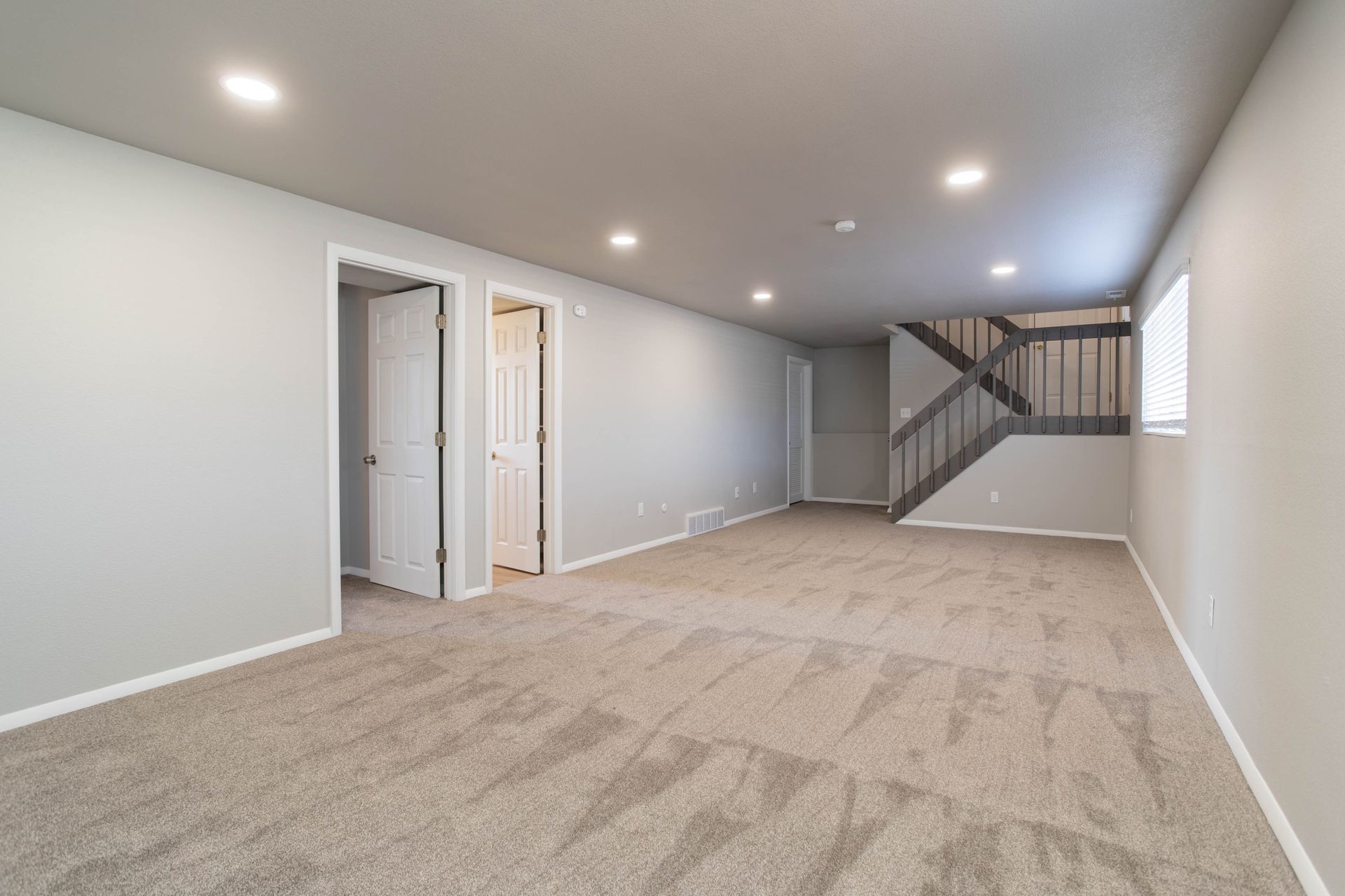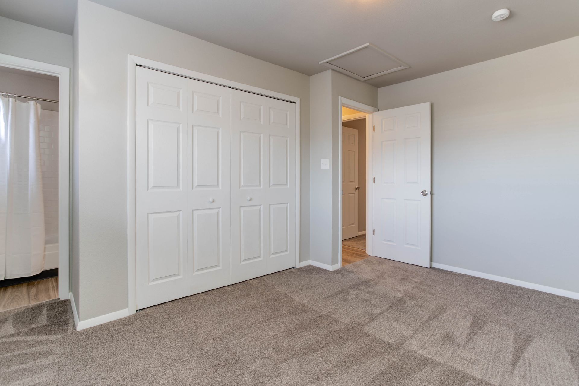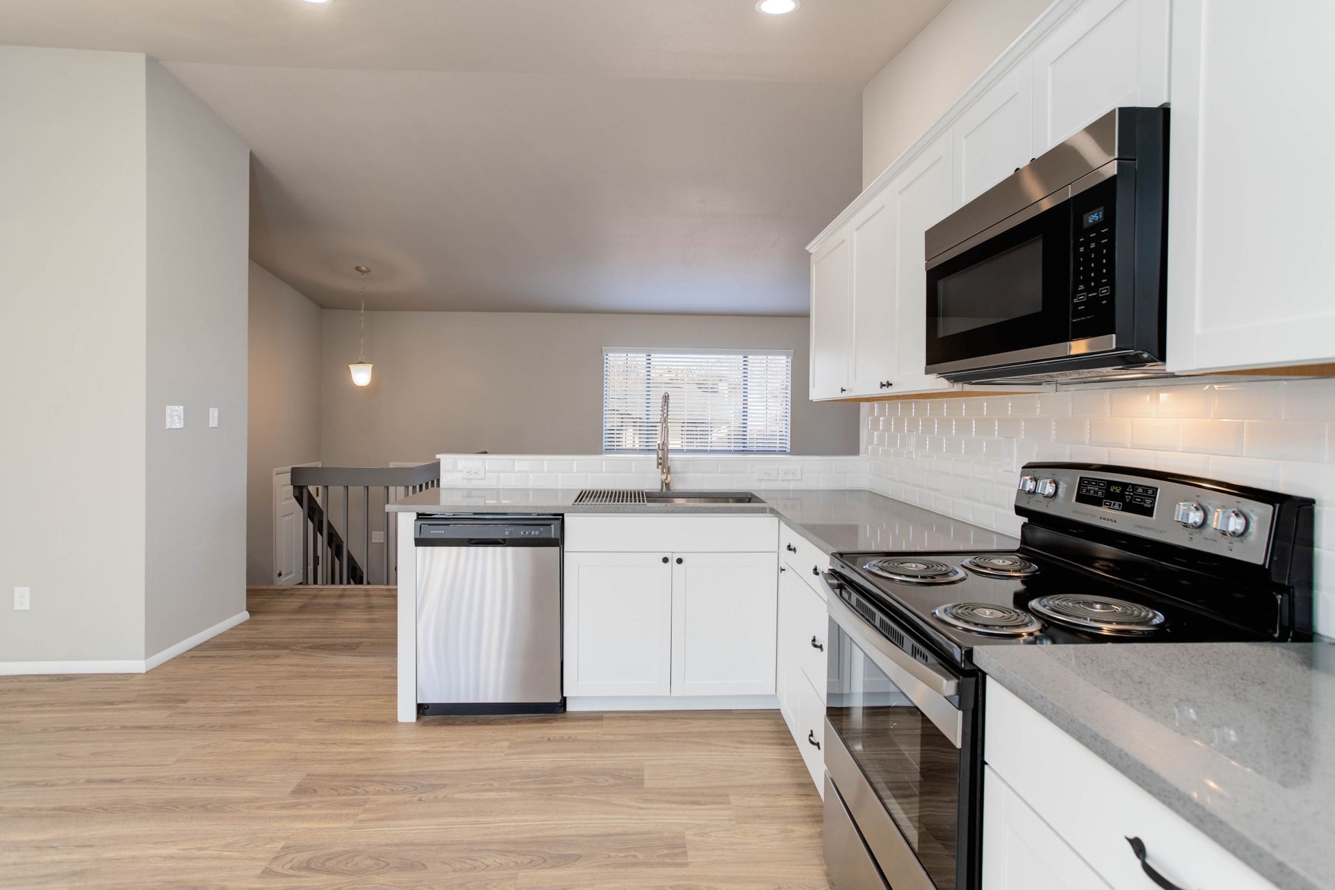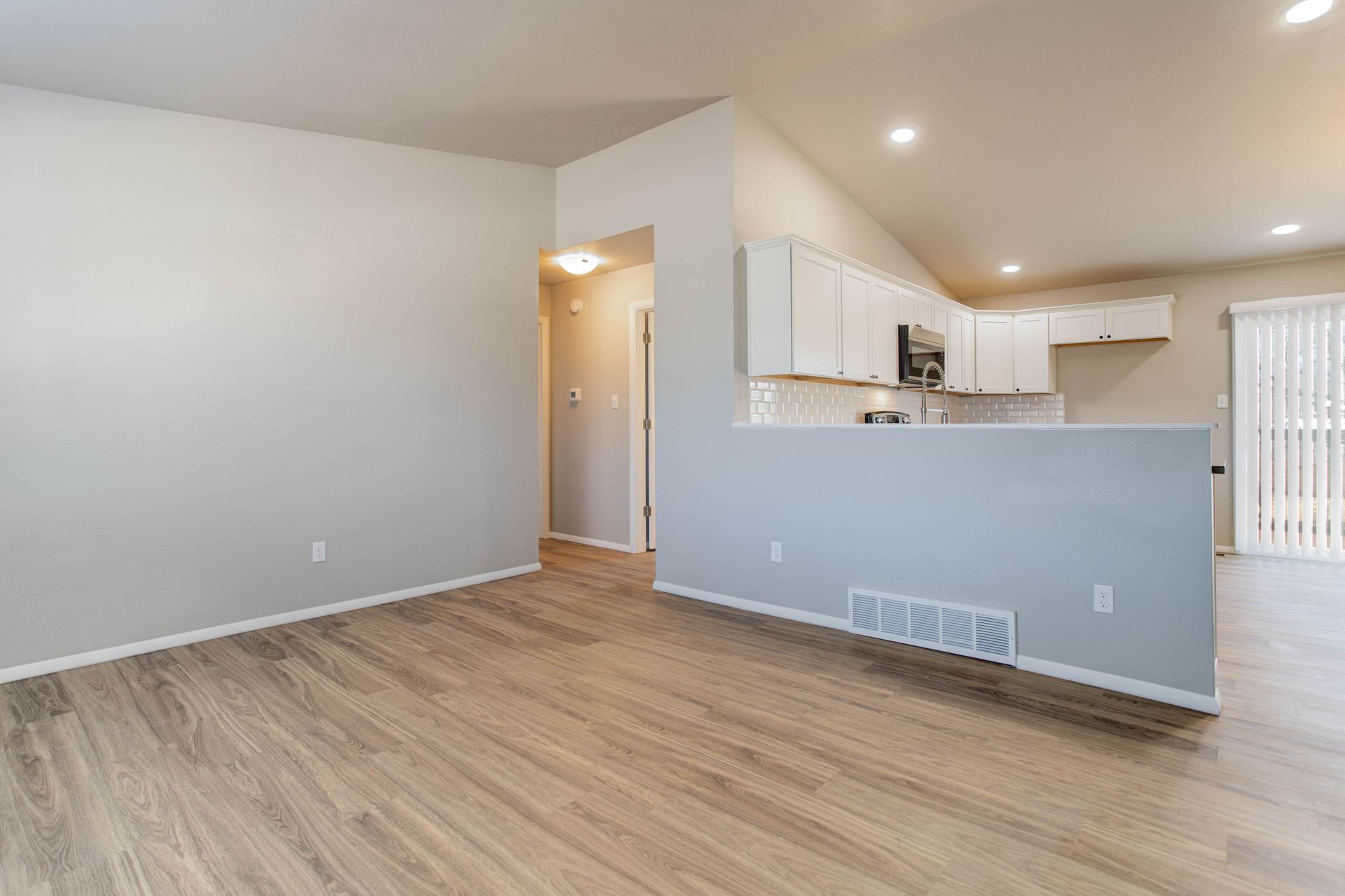 This bright, sunny home is just south of Rock Island Trail and has LVP flooring, quality carpet, 6-panel doors throughout and features...living room with vaulted ceilings...open concept kitchen with single-basin SS sink, quartz counters, subway tile backsplash and ample counter space...spacious dining area that walks out to the 10x14 deck with mountain views...primary bedroom with Pikes Peak views, large closet and access to the full hall bath...and 10x12 2nd bedroom that overlooks the front yard. The lower level features the well-lit 13x25 family room with full wall wood-burning fireplace...sunny 3rd bedroom...3/4 bath with linen shelving...and large laundry/mech/storage room. Outside imagine the possibilities in the HUGE, fenced backyard. In its heyday, there was a firepit area perfectly positioned to take in the Pikes Peak views, paver pathway lined with planter boxes to the west half of the yard and garden area, and plenty of room left over for play structures. The mature trees on and adjacent to the property offer privacy and shade. Walking distance to the top-performing K-12 Thomas MacLaren school, and easy driving access to the restaurants, retail and shopping on Academy and Powers.