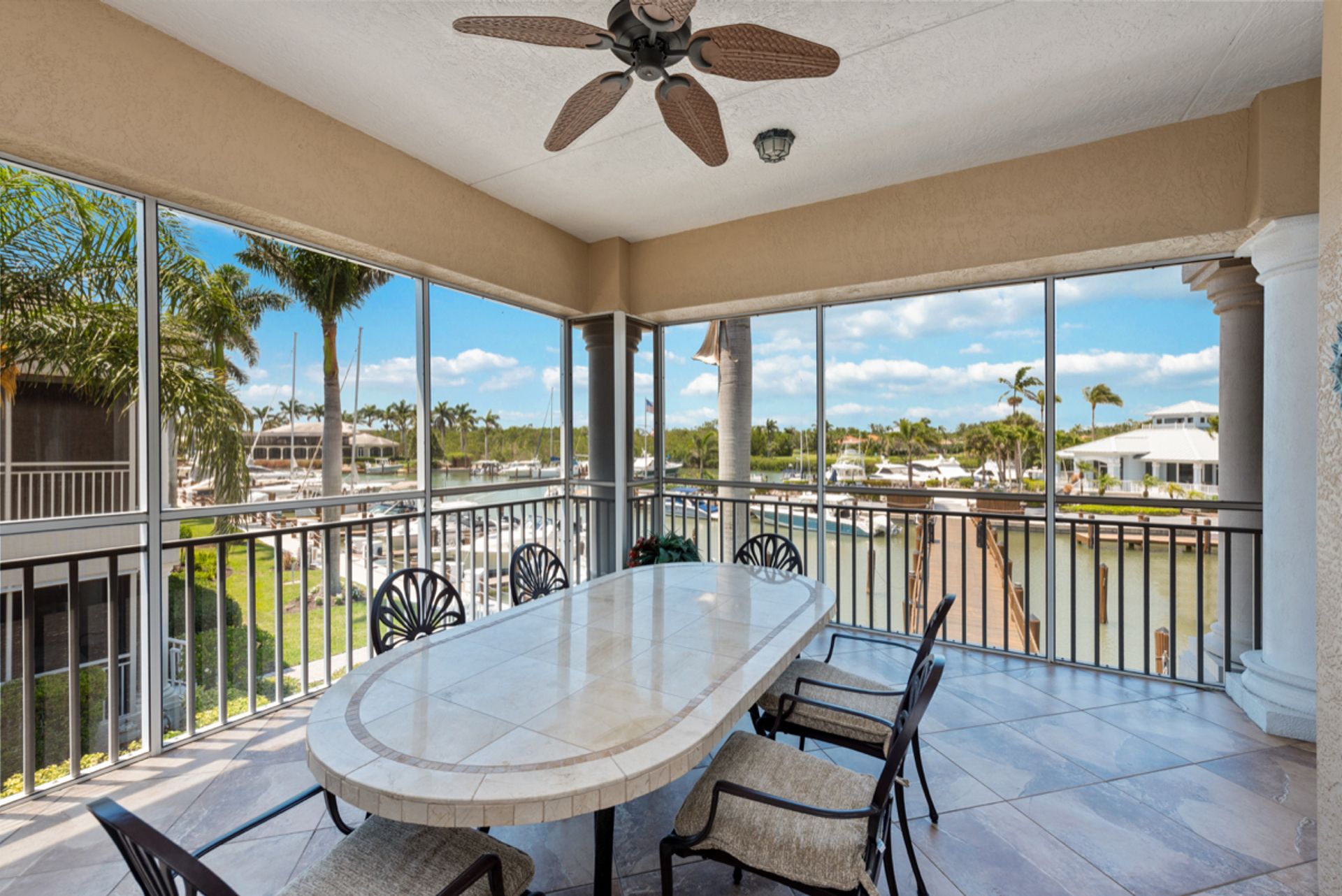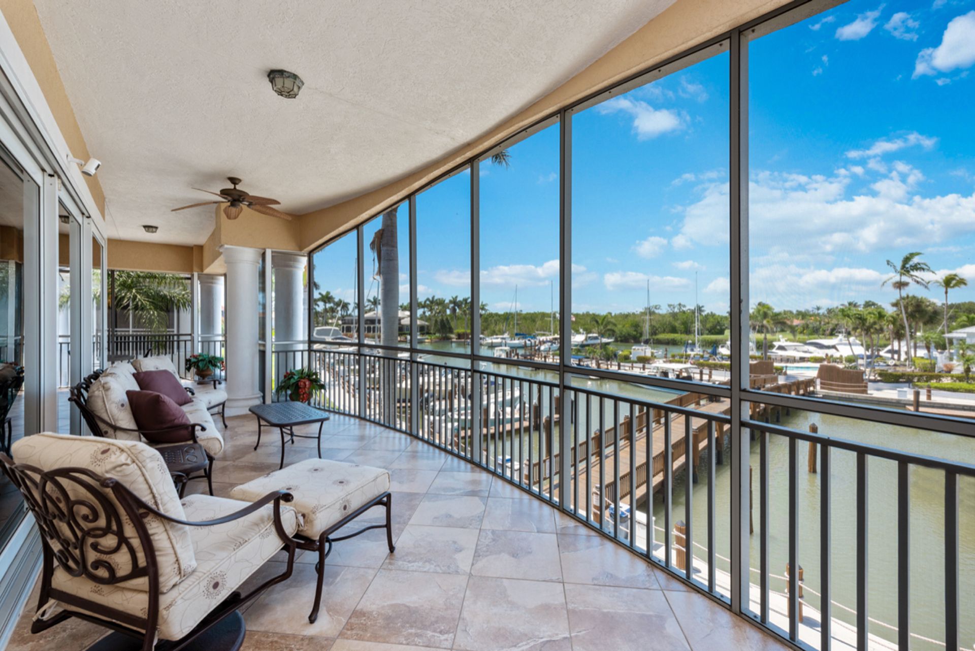 Enjoy the Naples lifestyle in this beautifully updated condo with harbor views! 40' dock right out the back door and immediate full golf membership available for an additional cost, but not required. Updates include the kitchen with high-end appliances, baths, a/c, flooring, decorating and more. Two-car attached garage with air conditioning and private elevator. No damage or flooding from the hurricane. The building is freshly painted and has a newer roof. Walk over the wooden bridge through the harbor to the included saltwater pool, spa and clubhouse. Or take the shuttle boat to Windstar's private beach on Keywadin Island. The optional clubhouse is being fully renovated with completion soon. It features panoramic views of Naples Bay and Port Royal from the dining and bar, Tom Fazio 18-hole golf, har-tru tennis courts with pro, pro shop, driving range next to the bay, fitness, cart barn, and more. All of this is in the heart of Naples, located in the Bayshore Arts District next to the Naples Botanical Garden, Hamilton Harbor, micro-brewery, food truck park and more. Quick drive to downtown 5th Ave Naples and our beautiful beaches.