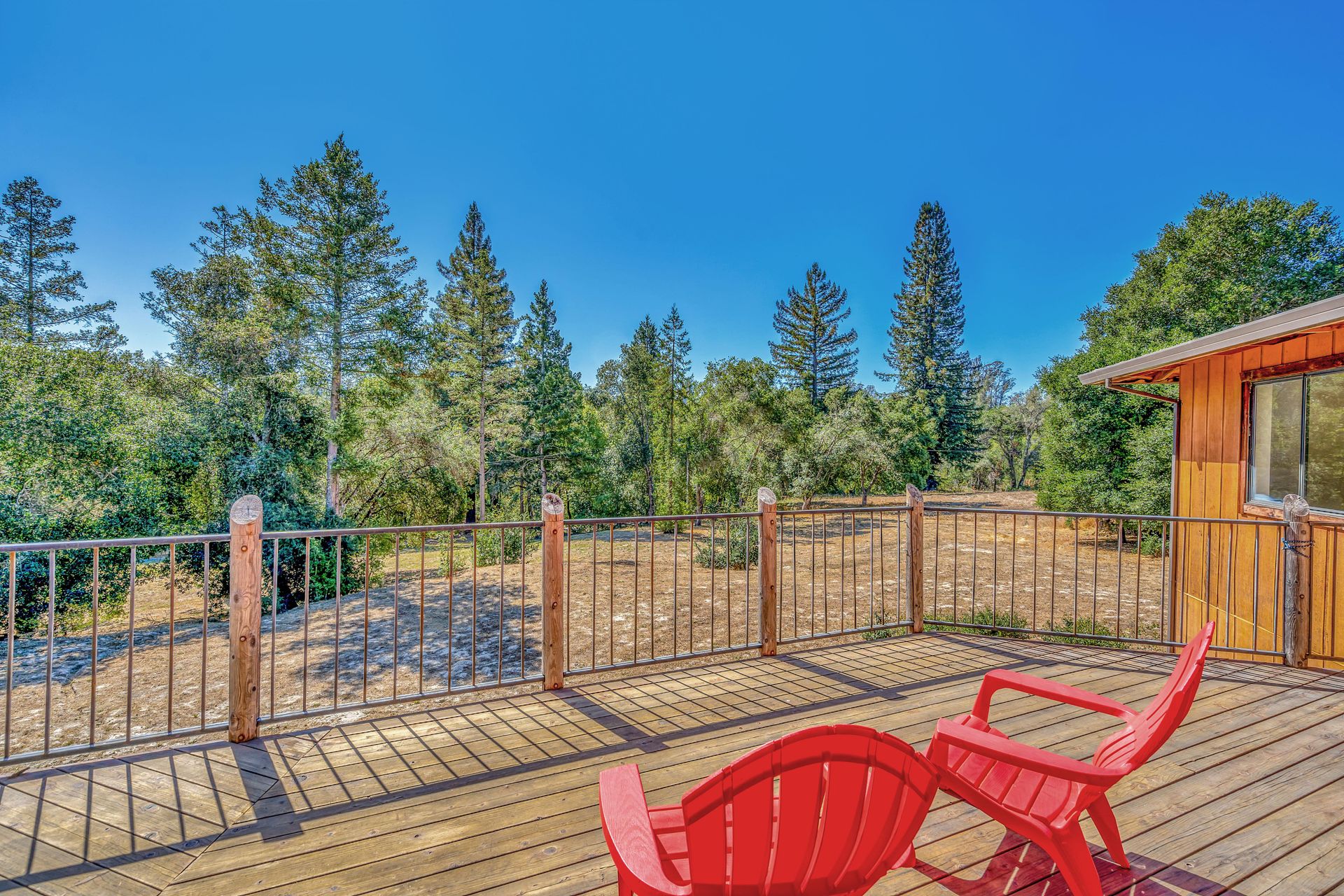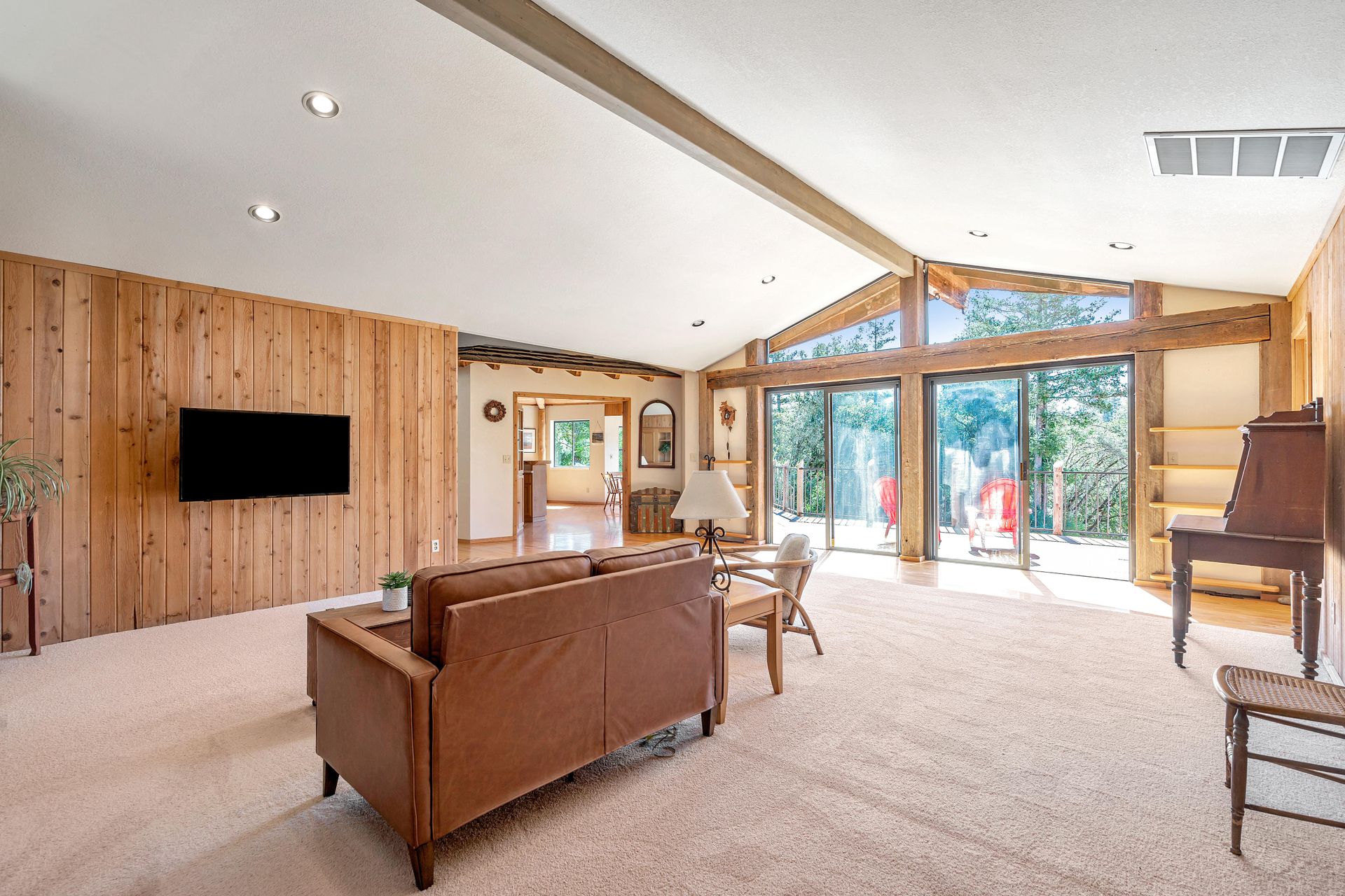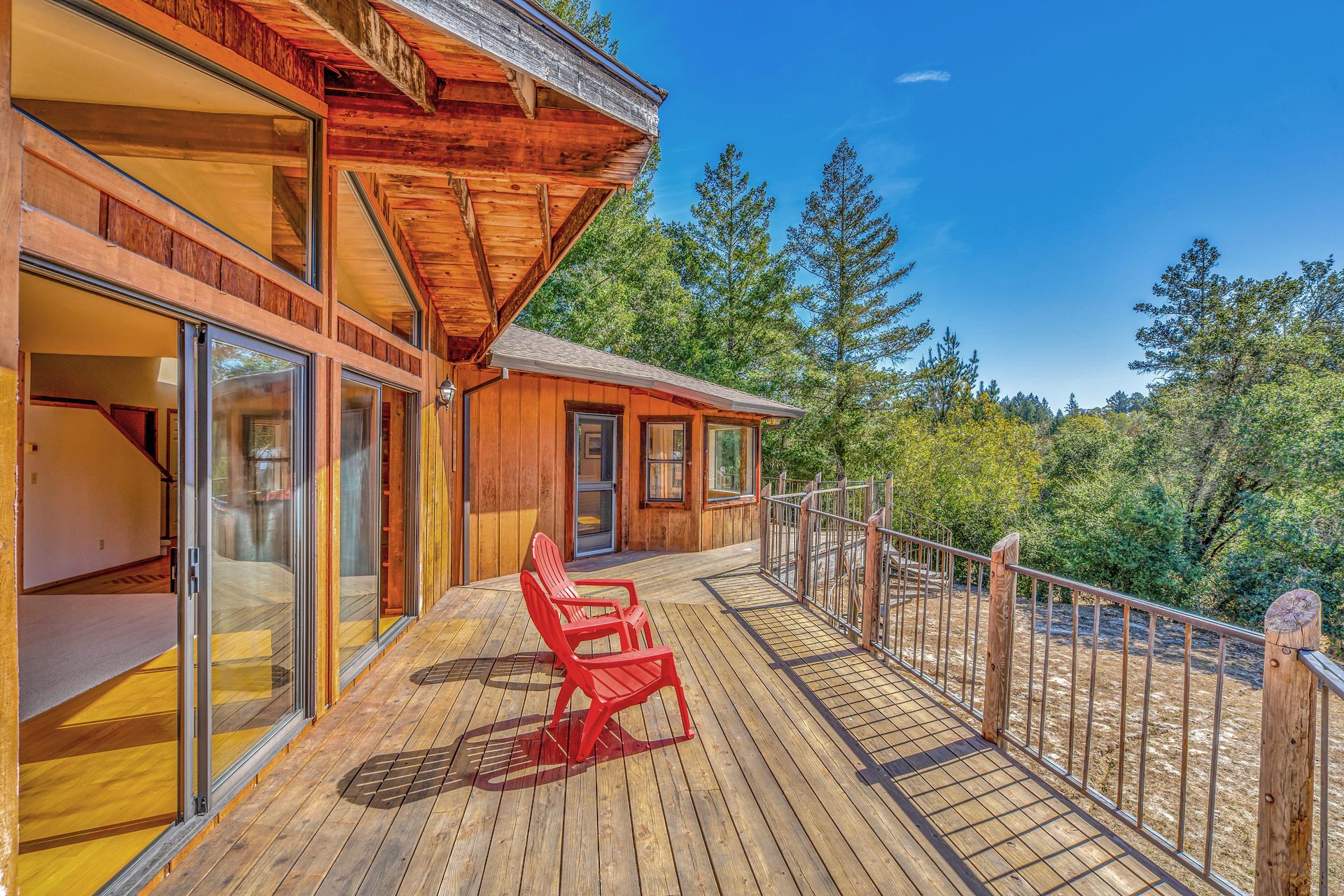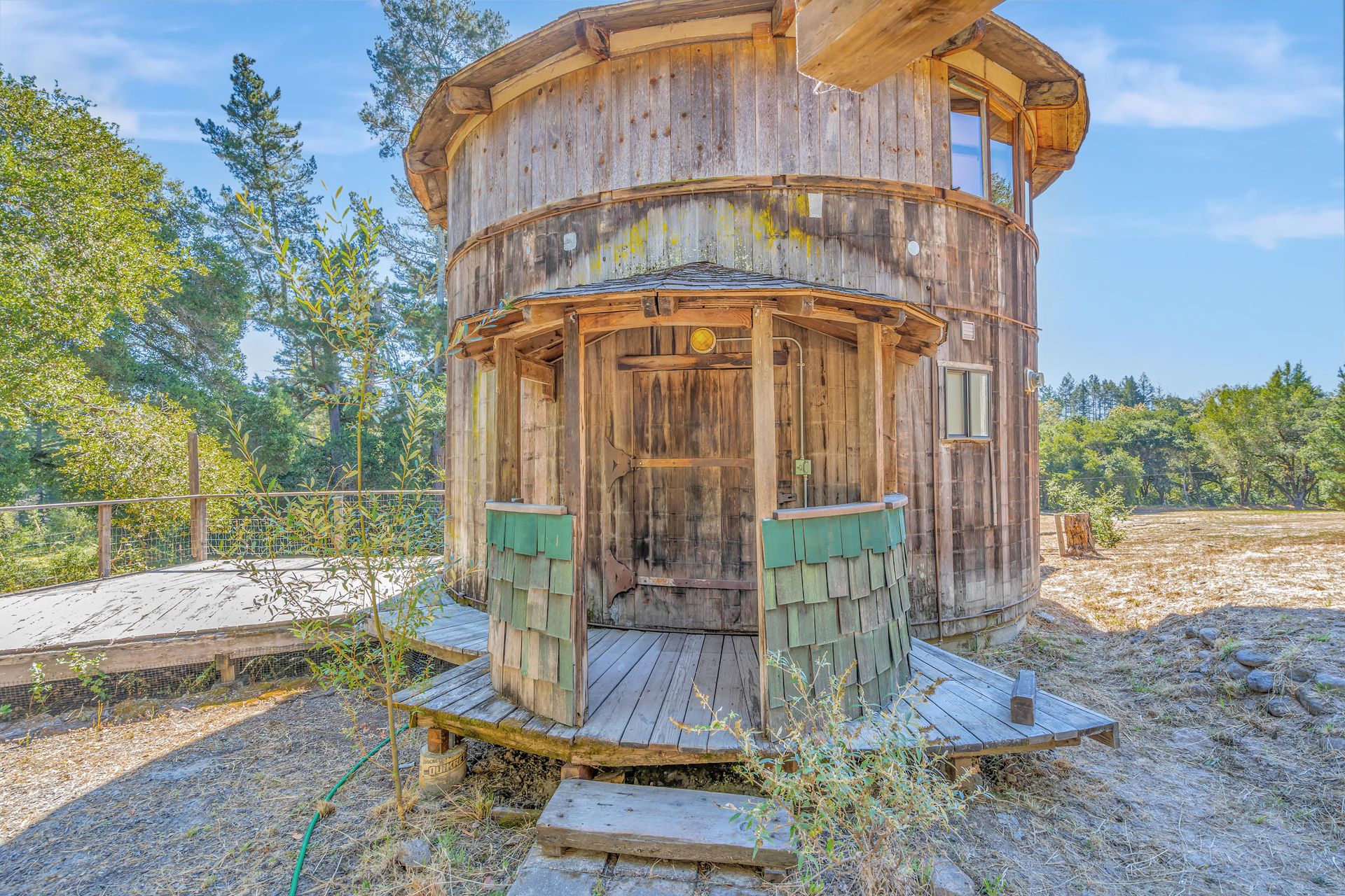 Down a private lane, and never before on the market, this versatile 7.9+/- acres offer open fields, mature oaks, redwoods, and privacy. In this park-like setting, you’ll find an architecturally unique home offering indoor/outdoor living, an intriguing and eclectic art studio, and a shop. The water yield is robust. The home has character, an appealing kitchen, vaulted ceilings, large decks and two primary suites. The basement offers a huge bonus space, a full bath, and a glass slider leading outside to a flat area that could be an ideal pool site. Long ago, the charming art studio was created out of huge round wooden water storage tanks and glass. It is sure to inspire creativity. There's a shop, a steel covered RV parking pad, and more. Connected to Xfinity high-speed internet. This excellent location is convenient to wonderful West County downtowns: 3 miles to Graton, 4 to Forestville, and 6 to Sebastopol. Just bring your imagination and don’t miss this rare offering.