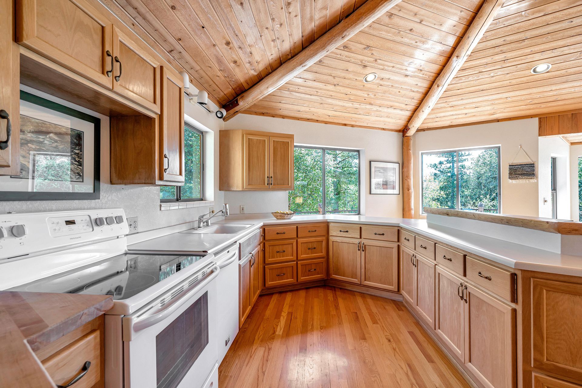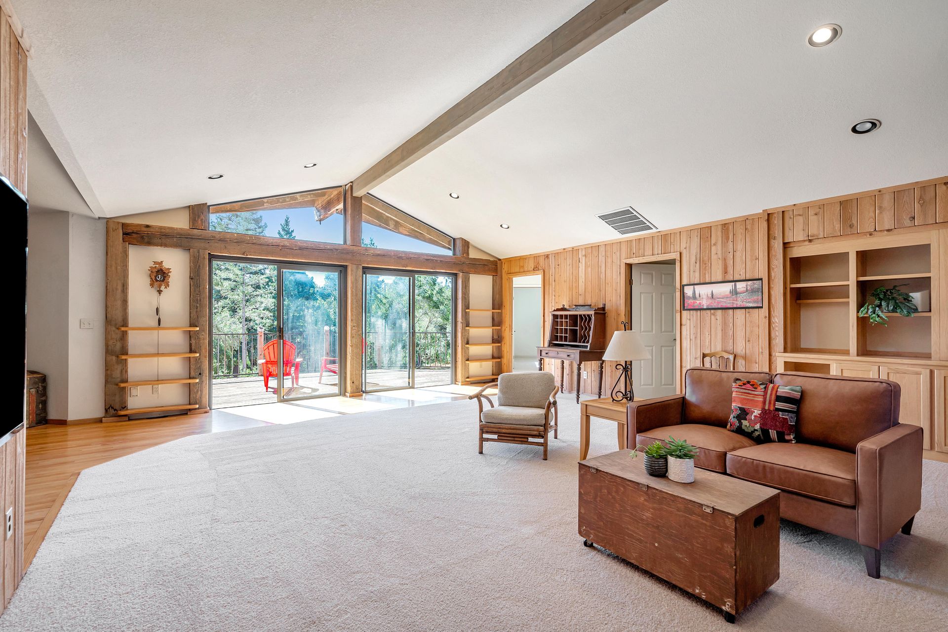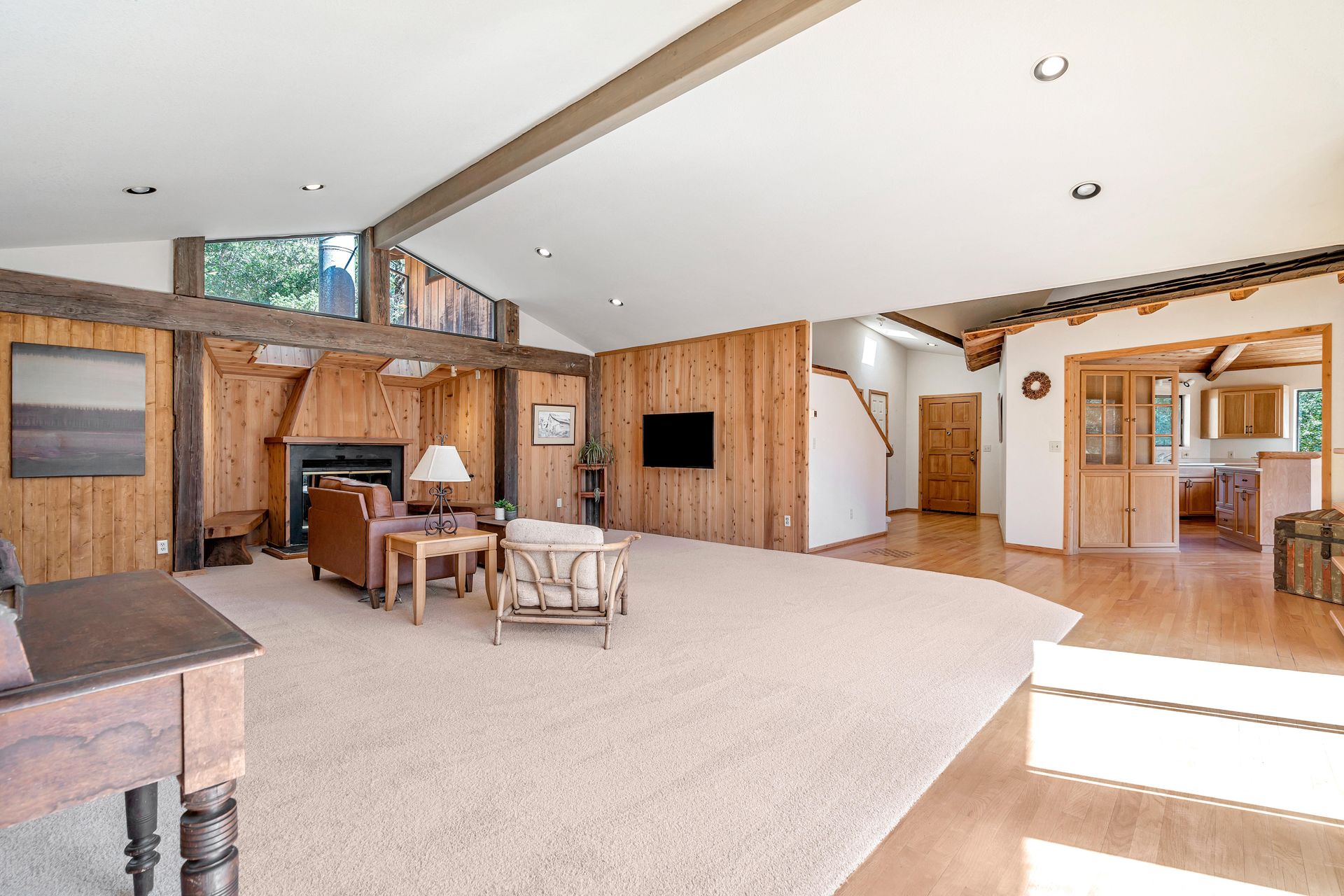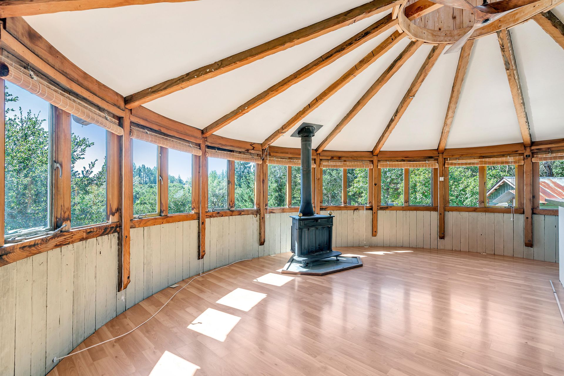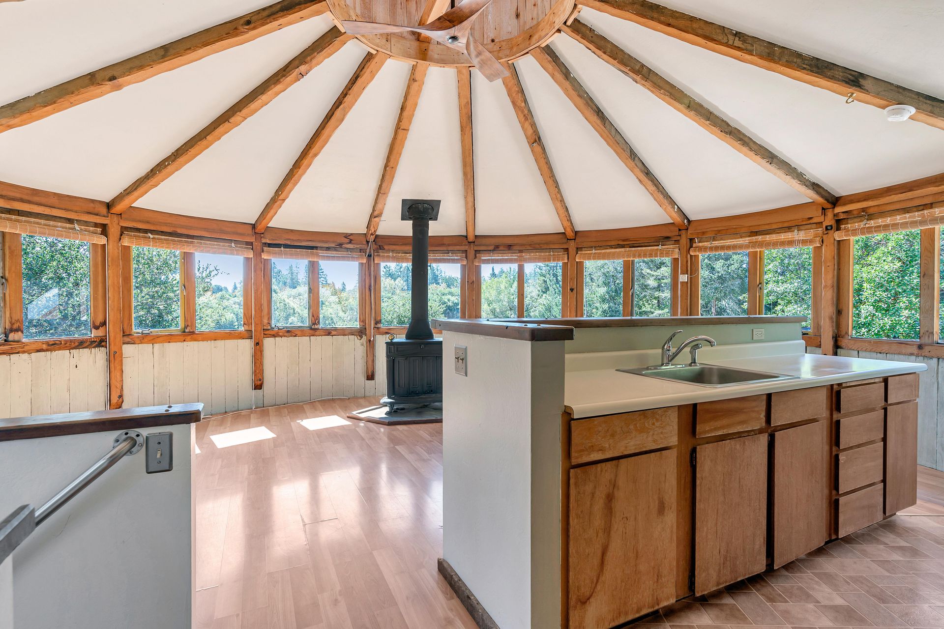 Down a private lane, and never before on the market, this versatile 7.9+/- acres offer open fields, mature oaks, redwoods, and privacy. In this park-like setting, you’ll find an architecturally unique home offering indoor/outdoor living, an intriguing and eclectic art studio, and a shop. The water yield is robust. The home has character, an appealing kitchen, vaulted ceilings, large decks and two primary suites. The basement offers a huge bonus space, a full bath, and a glass slider leading outside to a flat area that could be an ideal pool site. Long ago, the charming art studio was created out of huge round wooden water storage tanks and glass. It is sure to inspire creativity. There's a shop, a steel covered RV parking pad, and more. Connected to Xfinity high-speed internet. This excellent location is convenient to wonderful West County downtowns: 3 miles to Graton, 4 to Forestville, and 6 to Sebastopol. Just bring your imagination and don’t miss this rare offering.
