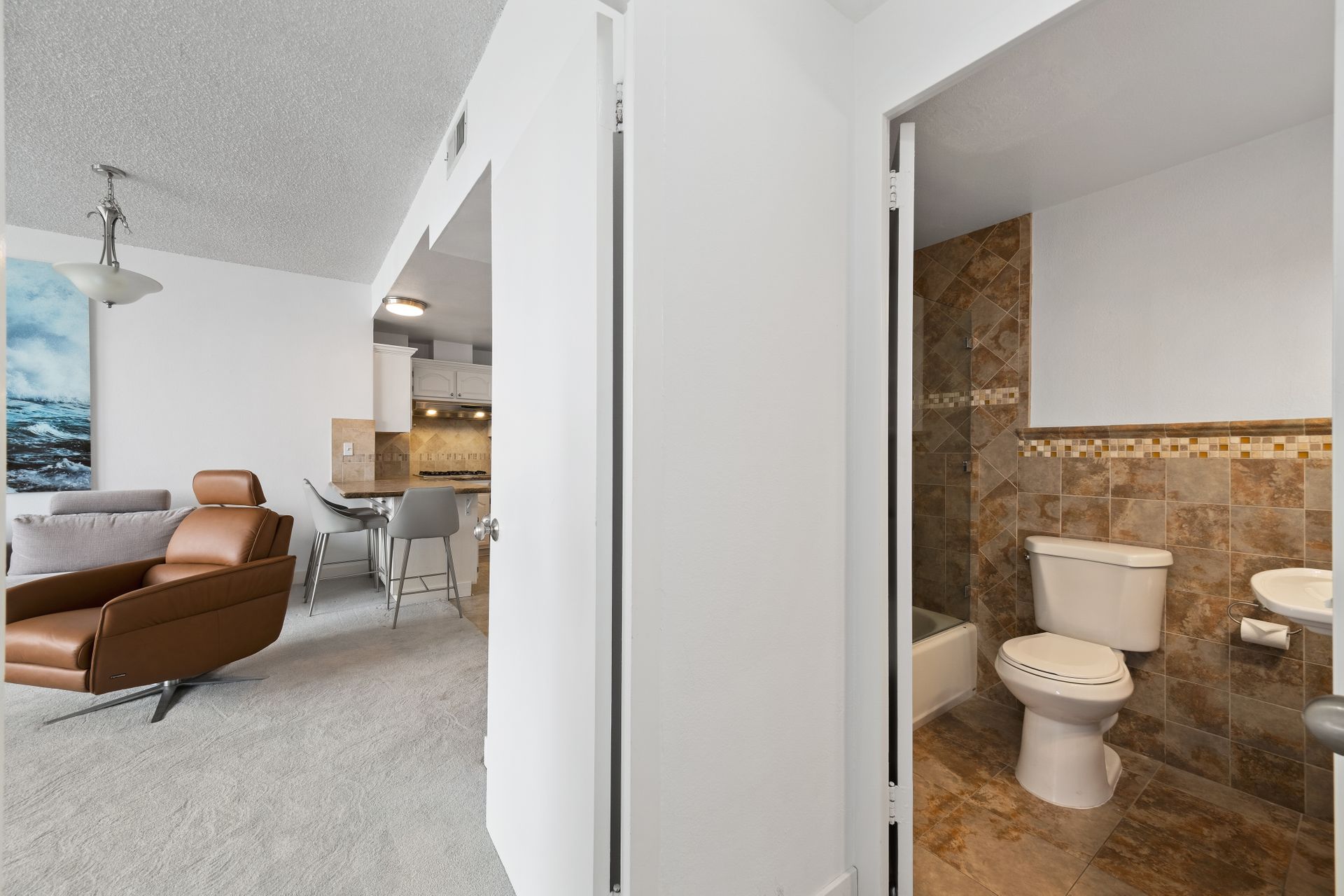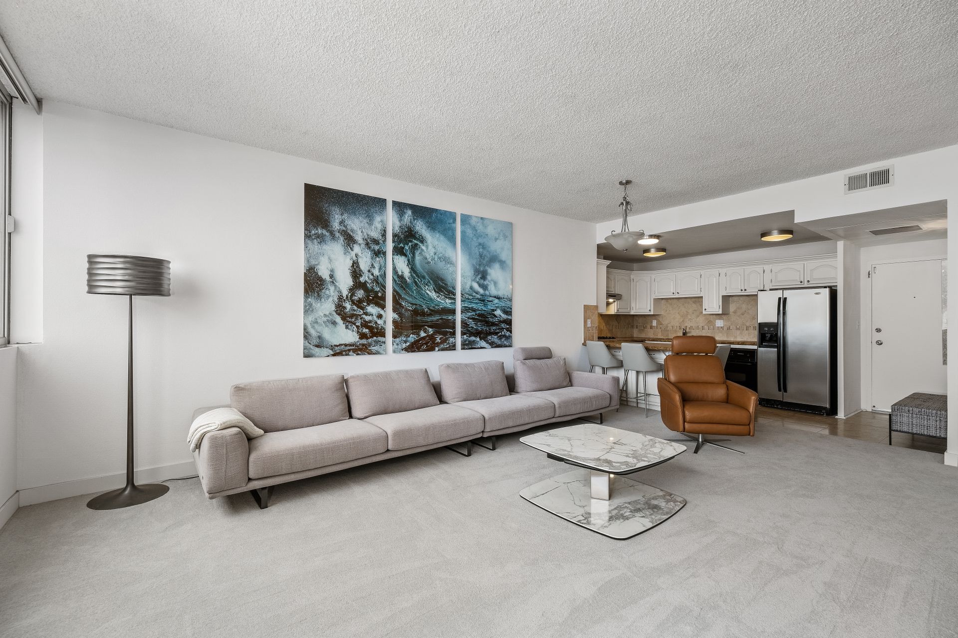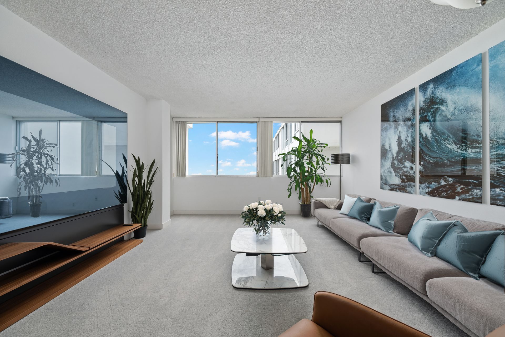 Ocean views abound from your own sanctuary with a spacious living/dining room, updated kitchen with breakfast bar, and generous bedroom with private balcony. Enjoy being within close proximity of famed beaches and restaurants. The 24-hour guard-gated Edgewater Towers is set on nearly five acres of manicured grounds creating a resort-style experience with two pools/spas, tennis court, sport court, fitness center, dog park, private hiking trails, and barbecue/picnic areas and grassy areas above the popular surf breaks and incomparable ocean views. Just minutes to the Palisades Village, Malibu, and Santa Monica.