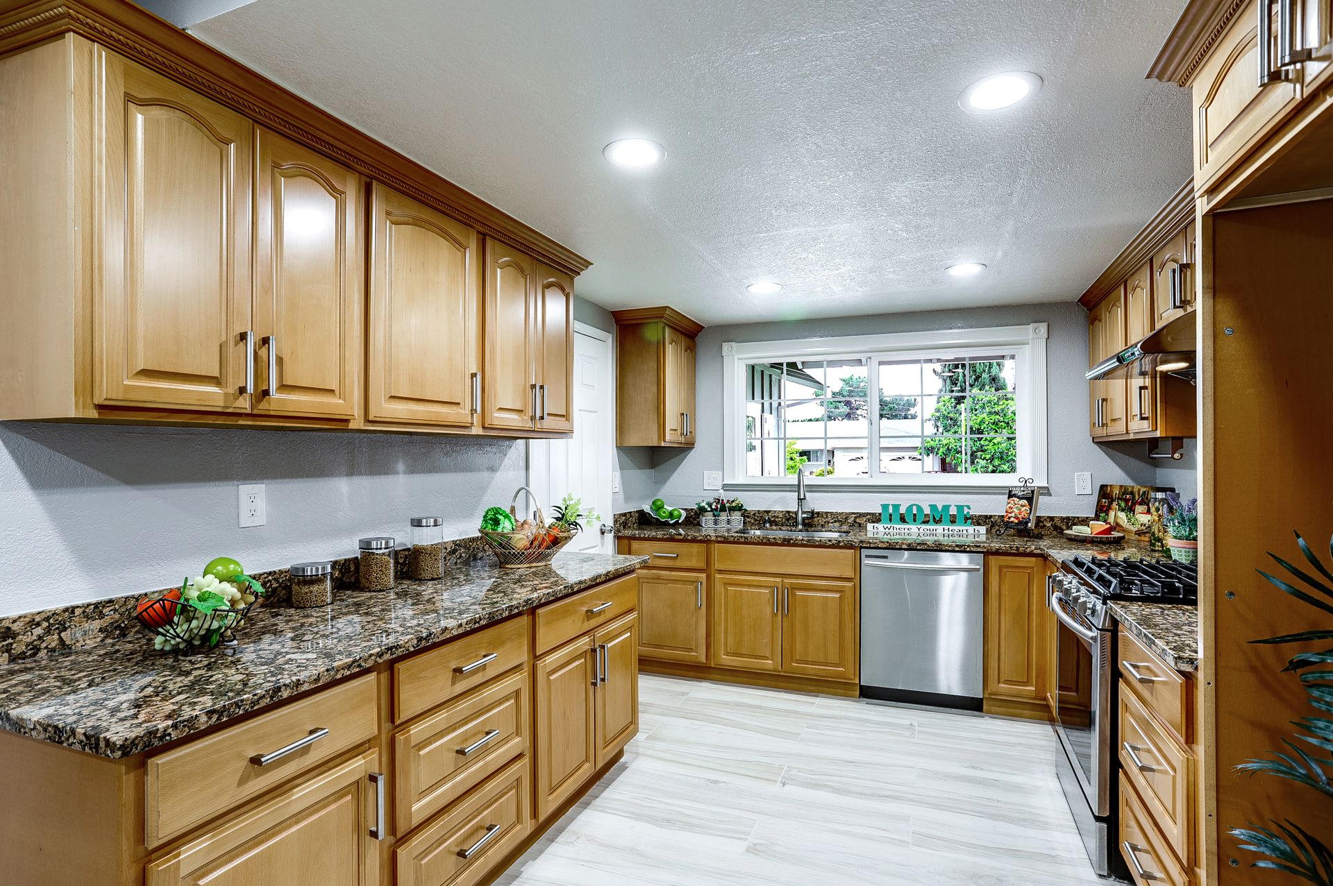 This UNIQUE house is what you have been looking for with 4 bedrooms, 2 bathrooms home in a desirable area with great schools. It is remodeled with Designer touches throughout - all work is done in the last 3 years - class apart landscaping and back patio, flooring, paint, baths, kitchen, roof, gutters with gutter guards, dual paned windows and concealed lighting.