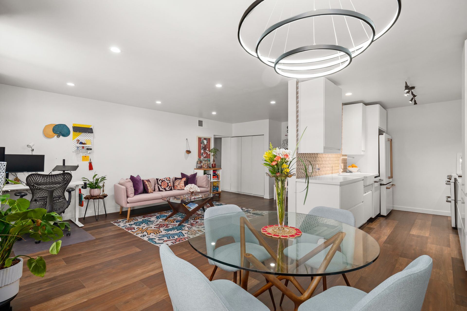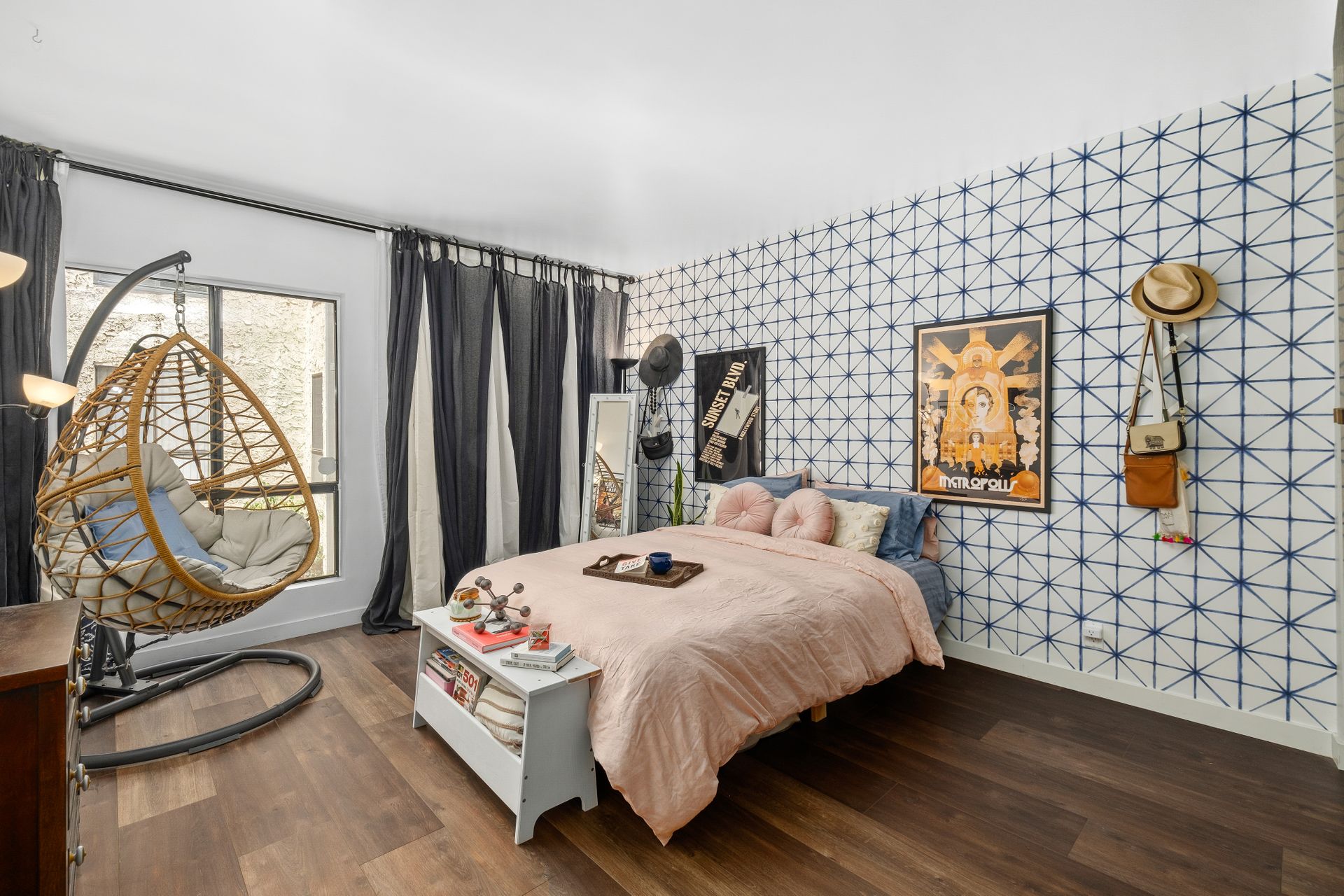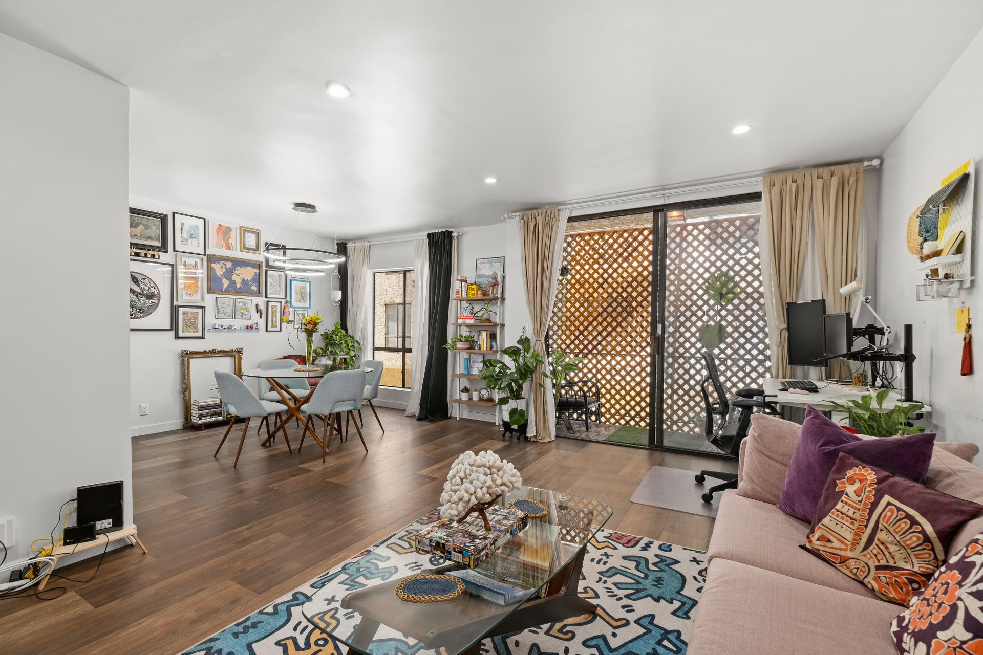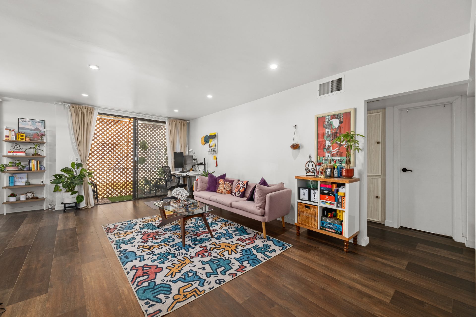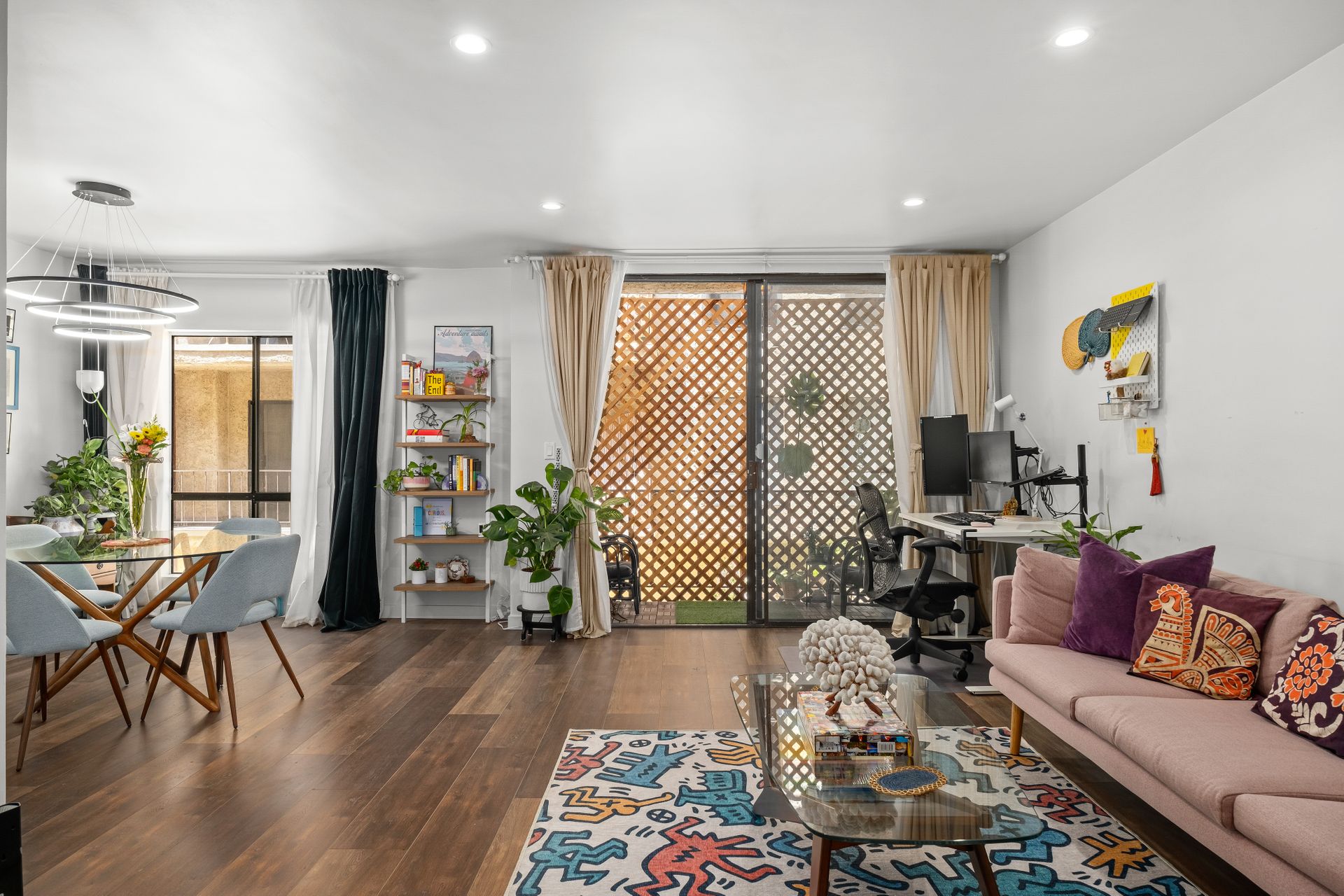 Upgraded modern-boho condo in the heart of Los Angeles. This tasteful bright modern-bohemian condo features top-of-the-line upgrades. In the kitchen, you’ll find newer European kitchen cabinets with a 3D marble backsplash, wifi enabled chef-inspired Café appliances with brass finishes, a farmhouse sink and loads of counter space all looking out to a dining room washed in light from tall windows. The spacious living room boasts sliding patio doors that let in plenty of natural light. The living room opens to a relaxing plant-filled patio. There are beautiful wide plank oak floors throughout and a washer and dryer in the unit. With custom-made wardrobes in the living room hallway and bedroom, this place is sure to go quickly. This beautiful and chic property is located one minute from Runyon Canyon and in close proximity to the best that LA has to offer and only moments away from historic Hollywood Boulevard. This is a great complex with gyms, saunas, a pool, security, two-car parking and onsite management.
