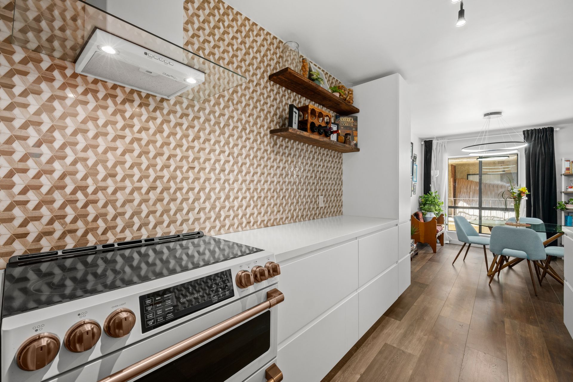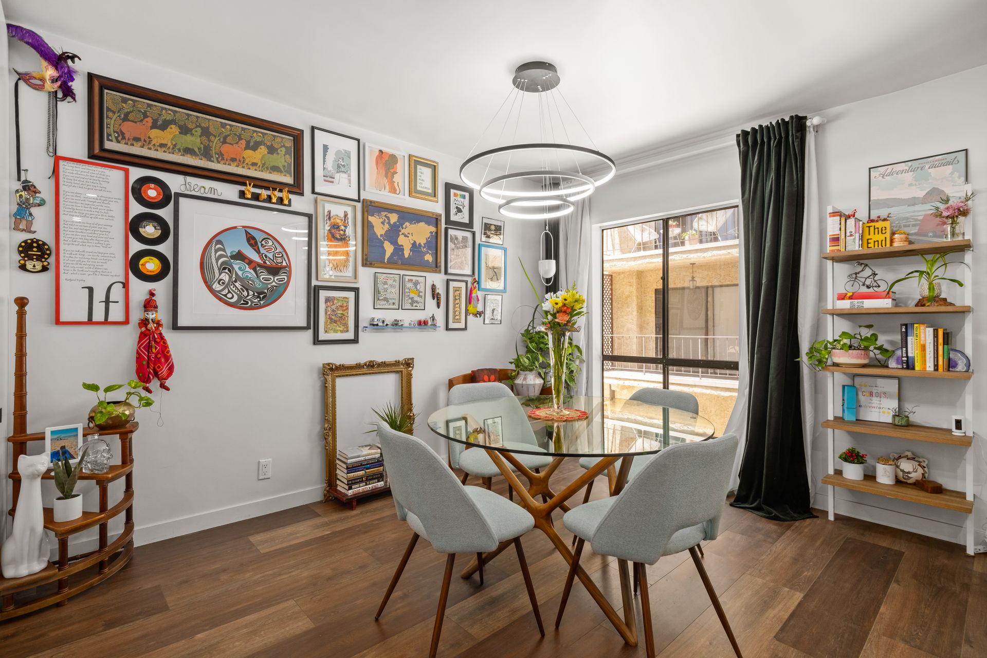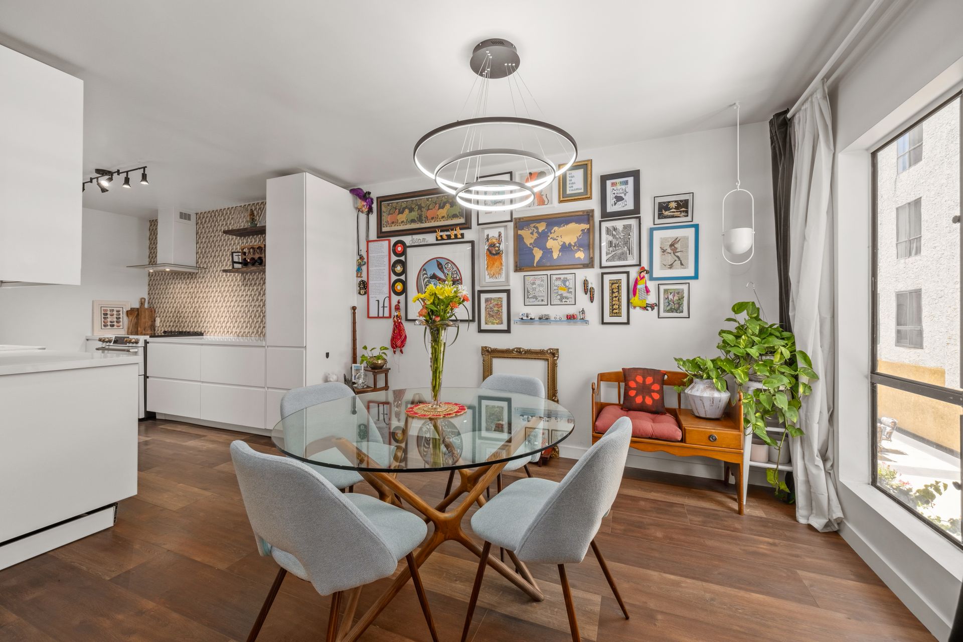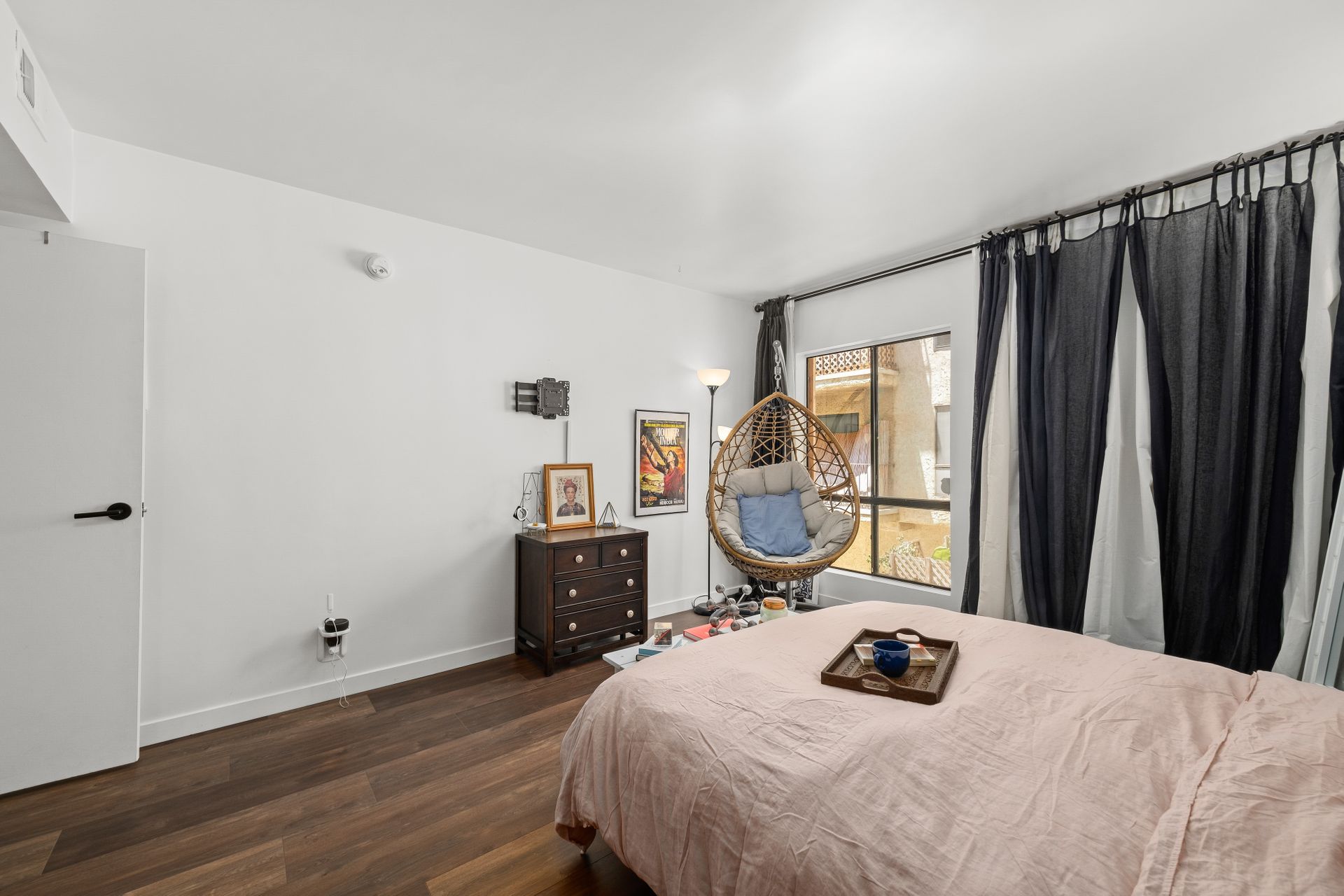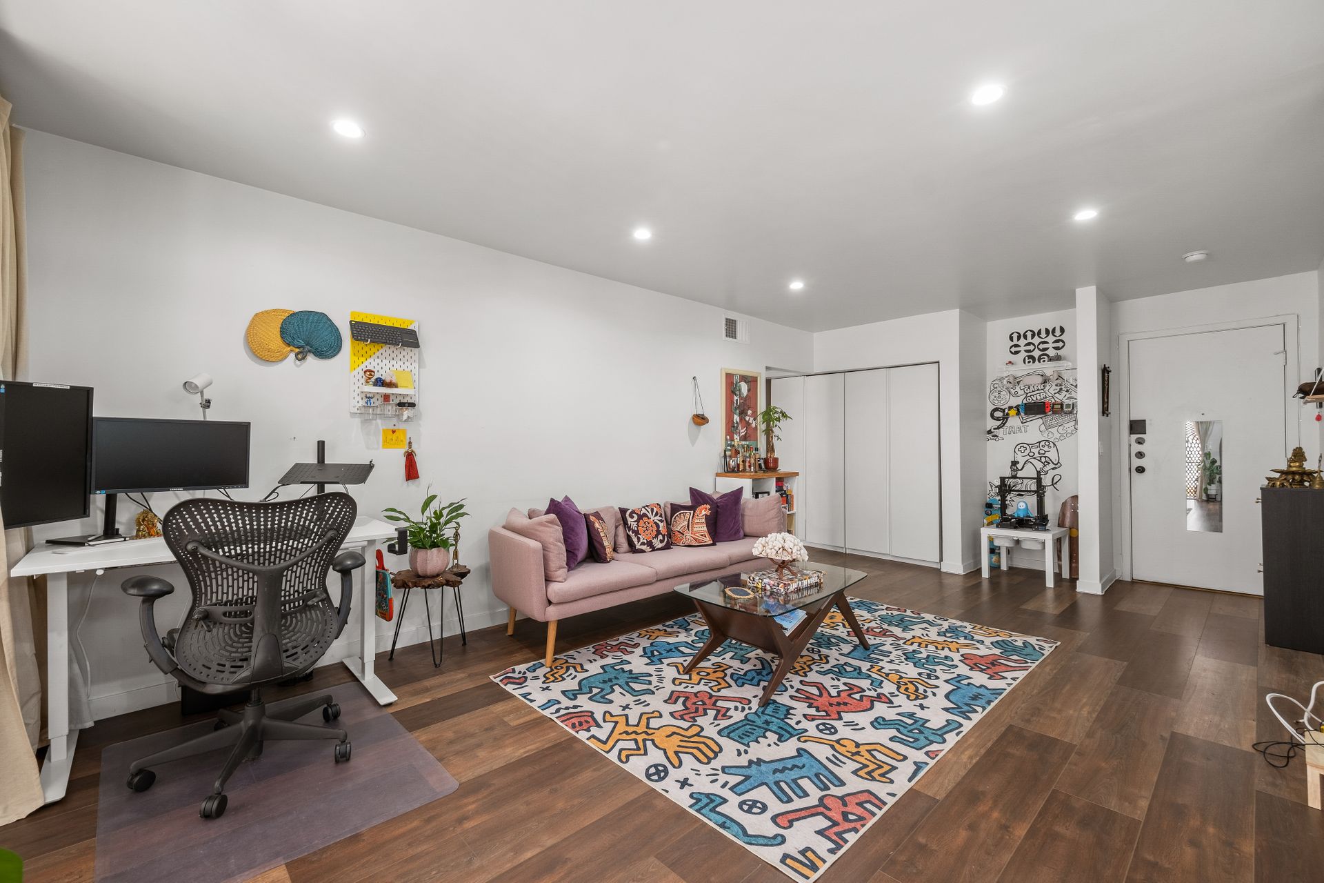 Upgraded modern-boho condo in the heart of Los Angeles. This tasteful bright modern-bohemian condo features top-of-the-line upgrades. In the kitchen, you’ll find newer European kitchen cabinets with a 3D marble backsplash, wifi enabled chef-inspired Café appliances with brass finishes, a farmhouse sink and loads of counter space all looking out to a dining room washed in light from tall windows. The spacious living room boasts sliding patio doors that let in plenty of natural light. The living room opens to a relaxing plant-filled patio. There are beautiful wide plank oak floors throughout and a washer and dryer in the unit. With custom-made wardrobes in the living room hallway and bedroom, this place is sure to go quickly. This beautiful and chic property is located one minute from Runyon Canyon and in close proximity to the best that LA has to offer and only moments away from historic Hollywood Boulevard. This is a great complex with gyms, saunas, a pool, security, two-car parking and onsite management.