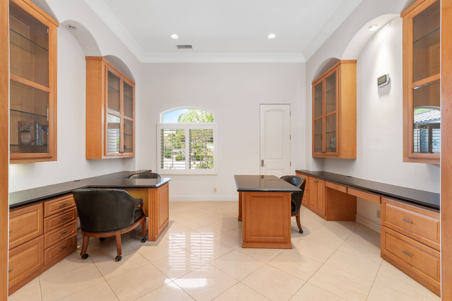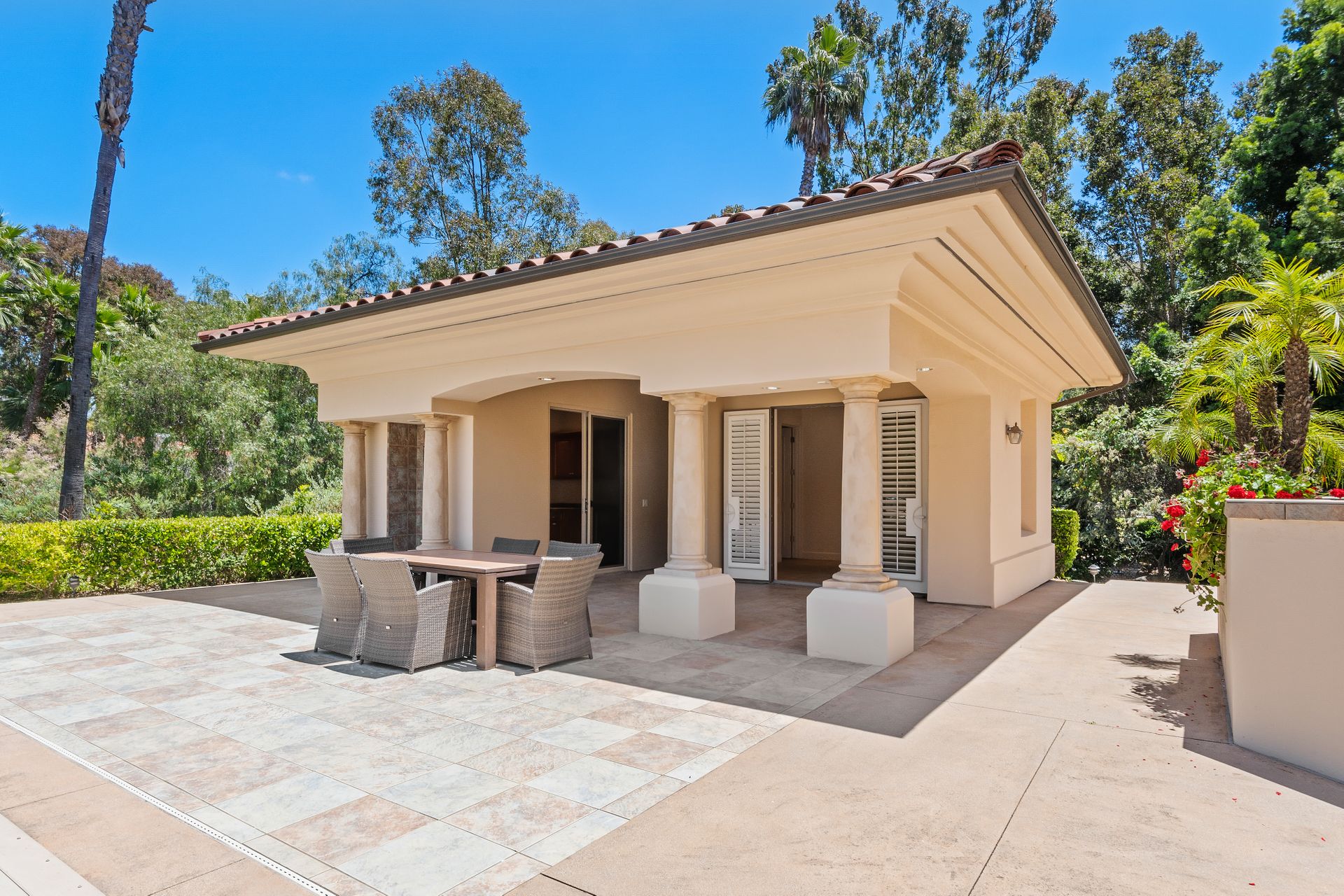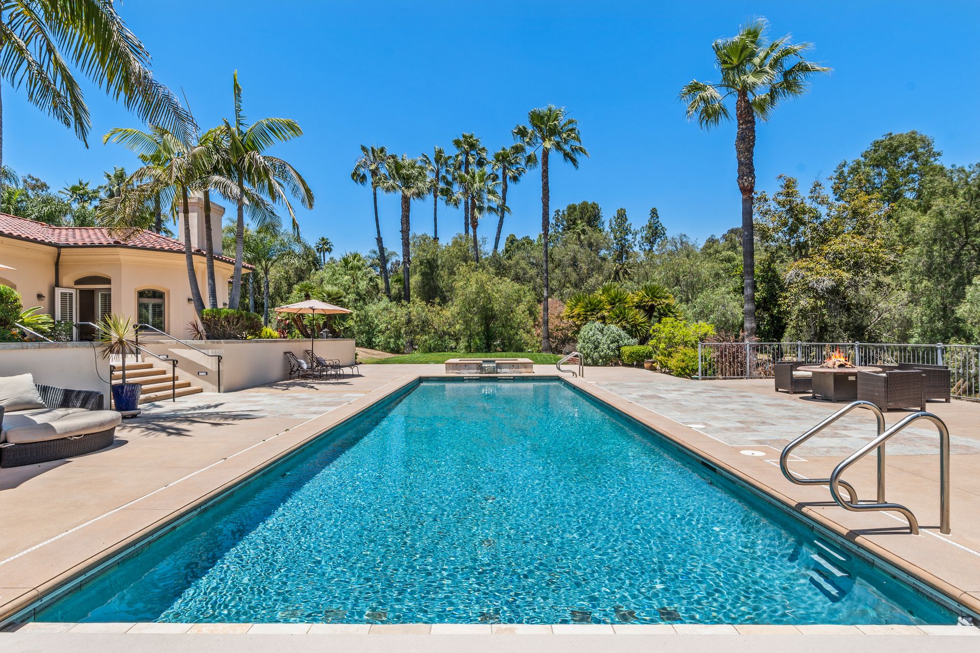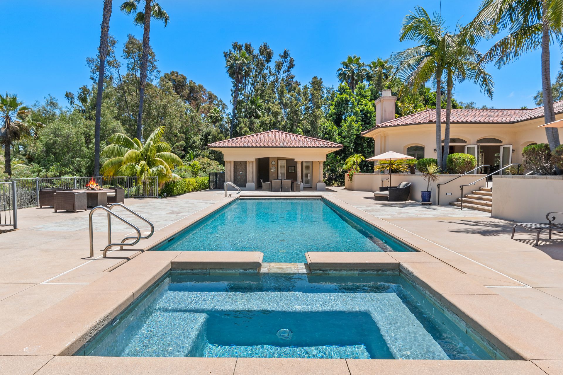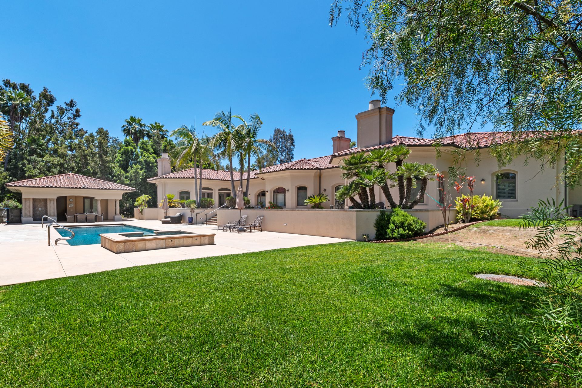 This home features beautiful high-end upgrades throughout. The spacious chef's kitchen opens to a large family/great room. There is a large primary suite with dual bathrooms and walk-in closets. All of the bedrooms have en-suite bathrooms. The large office has custom built-ins. There are three fireplaces. The resort-like pool area offers a spa, pool/guest house, built-in barbeque and grass yard. Appreciate the attached four-car garage, plus additional parking and/or RV parking that is available. A gated entry leads to the large fully fenced approximately 1.4 acre lot. This property can be sold furnished with artwork.