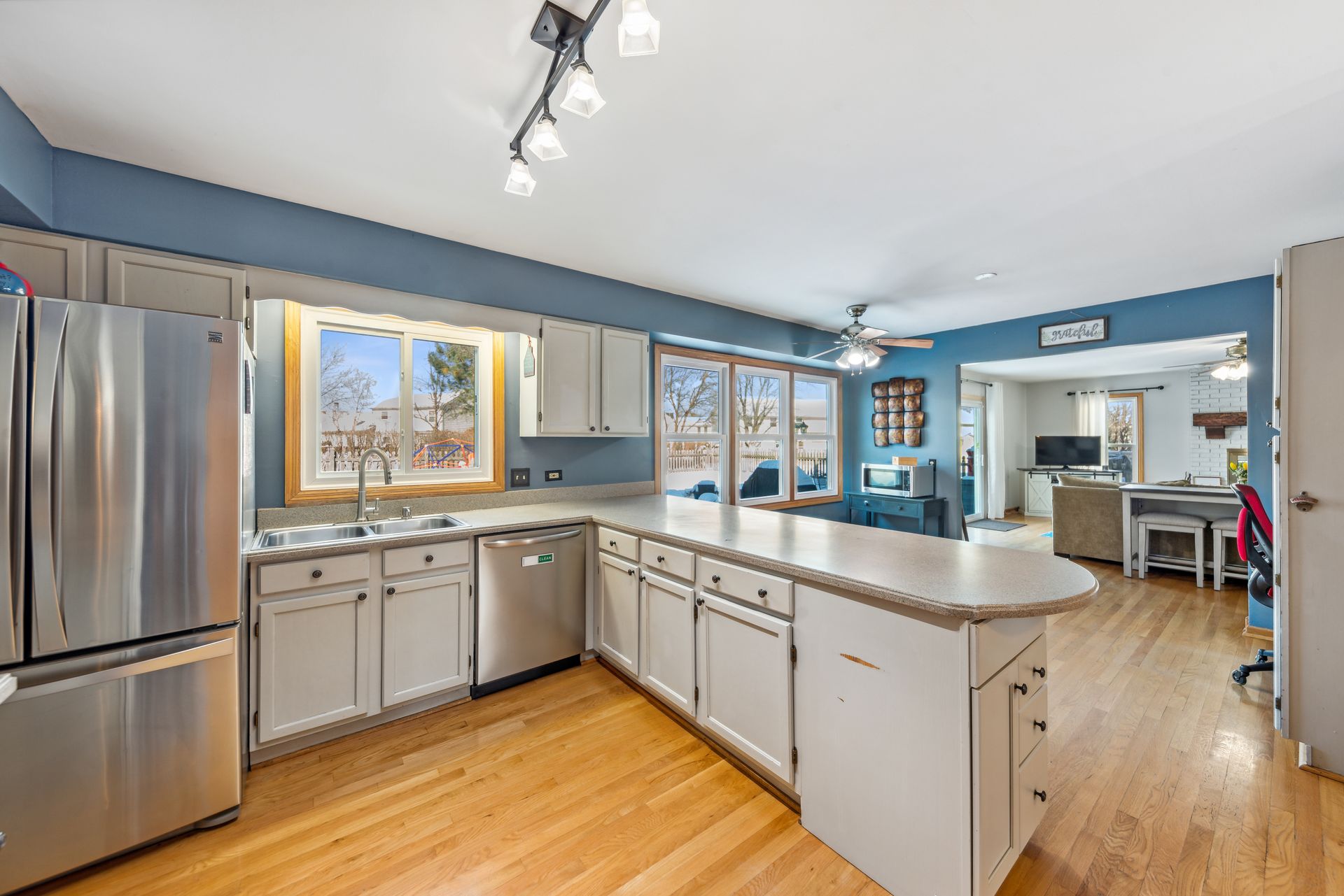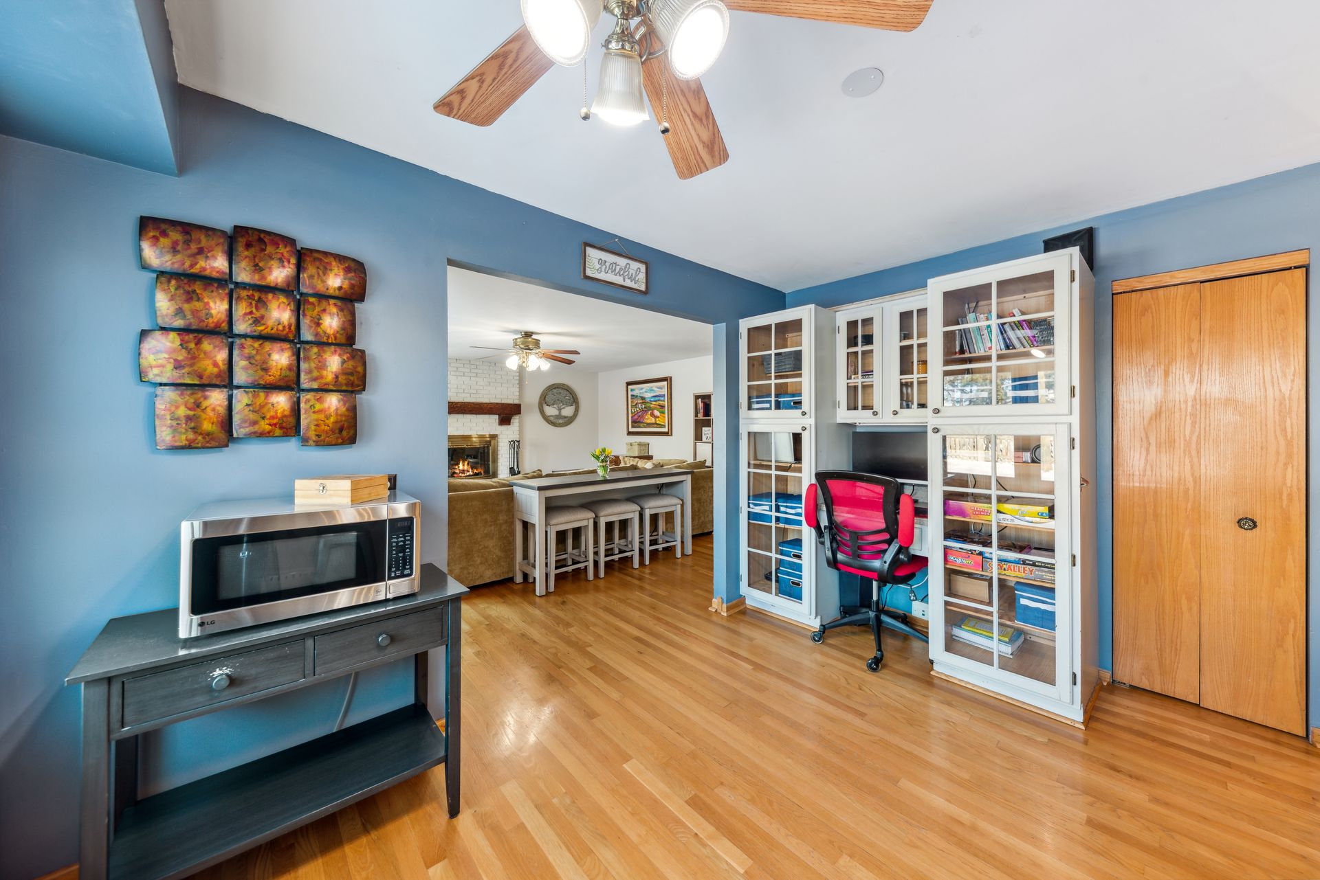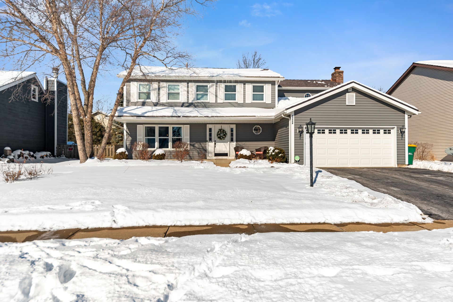 Beautiful four bed, two and one-half bath two-story home located in the desirable Country Towne subdivision offers plenty of living space to satisfy all your needs! Gorgeous hardwoods flow throughout the foyer, kitchen and family room. This spacious home offers a quaint, formal living room, extra-large dining room with glass doors leading to the oversized four-season sunroom which features a cathedral ceiling and access to the fenced backyard. Enjoy creating new dishes in this generous sized kitchen with newer stainless steel appliances, large breakfast bar, built-in cabinetry for your "fancy dishes" and pantry, built-in desk area and nice-sized eat-in kitchen table area. You will be wowed by the amazing family room complete with the white brick and wood surround fireplace which is a gas starter/gas logs and wood-burning. Great access to the patio and backyard are offered through the newer sliding family room door. Convenient first-floor laundry, interior door to the attached two-car garage and a charming built-in vanity with a custom sink and mirror! Upstairs, you'll find your massive primary suite with two nice-sized walk-in closets and an en-suite bath with newer vanity, double sinks, private walk-in shower, commode and whirlpool tub for two. Three additional rooms and a full shared bath round out the second floor. Head down to the full footprint of the home unfinished basement for even more living space. Perfect for a game room, home gym or theater and more. A home warranty is included. Schedule your tour today!