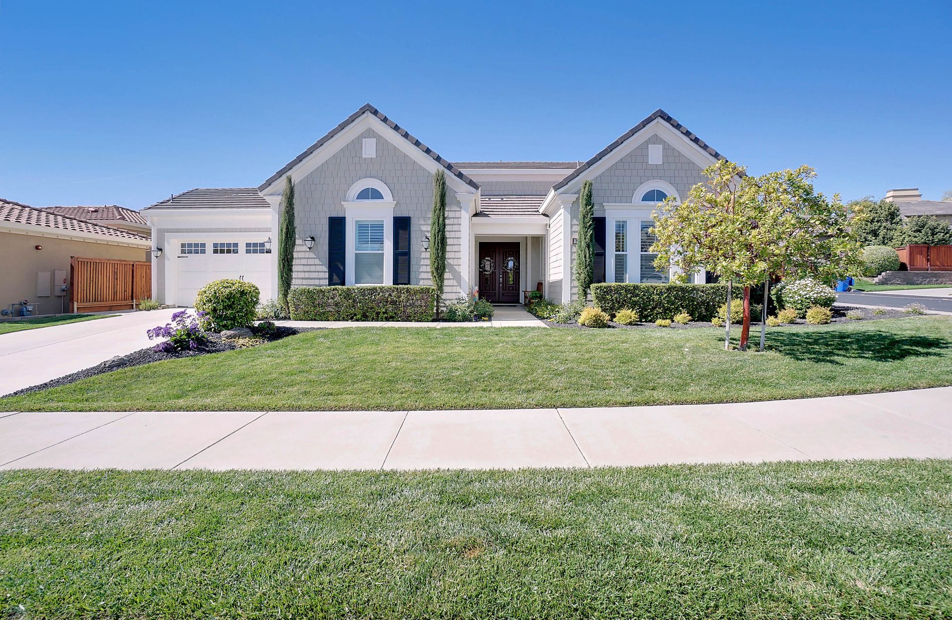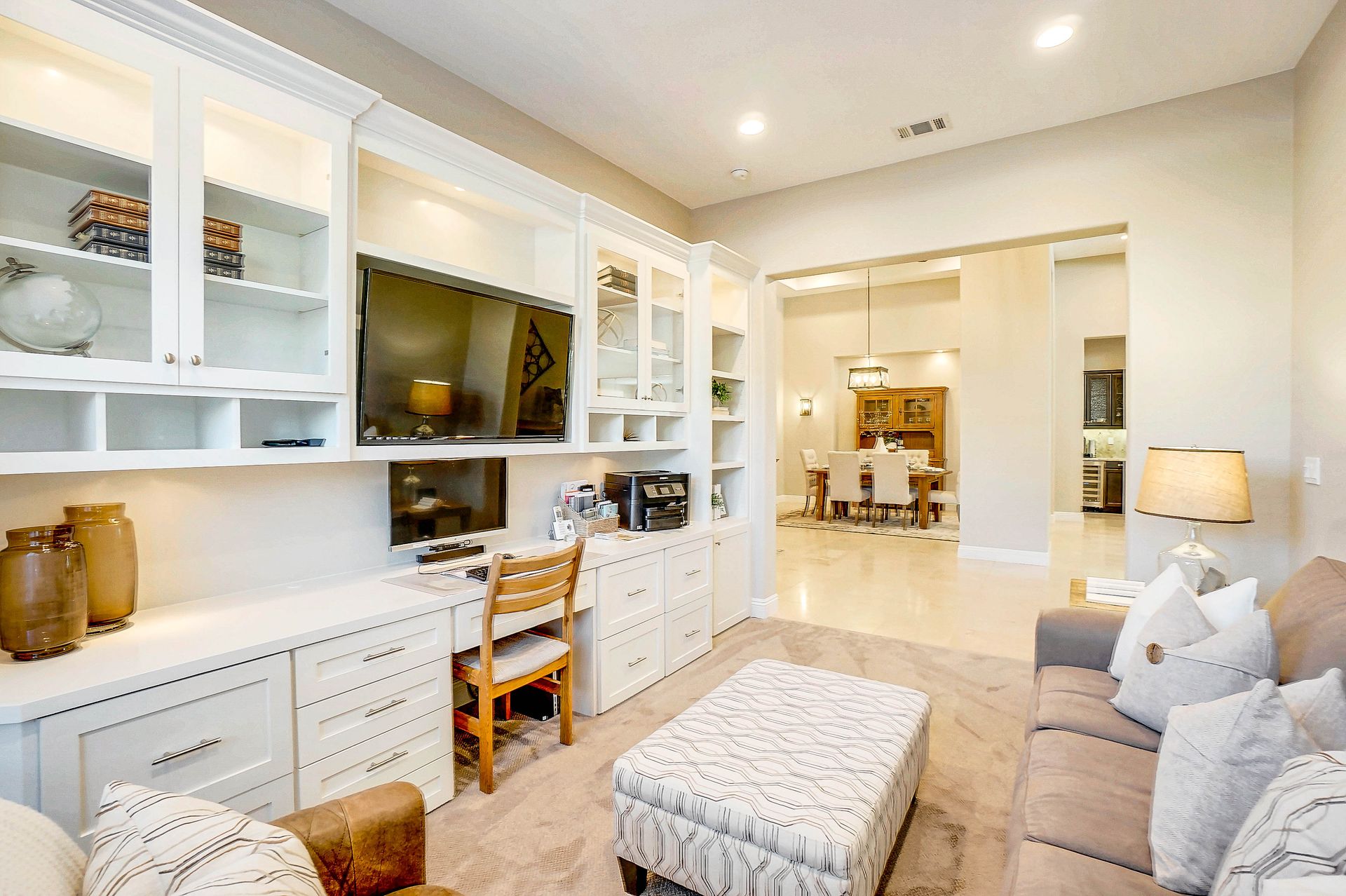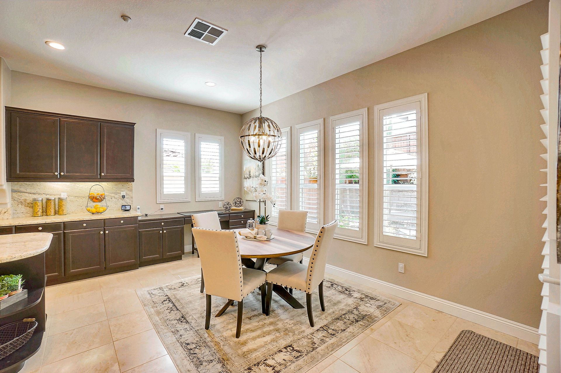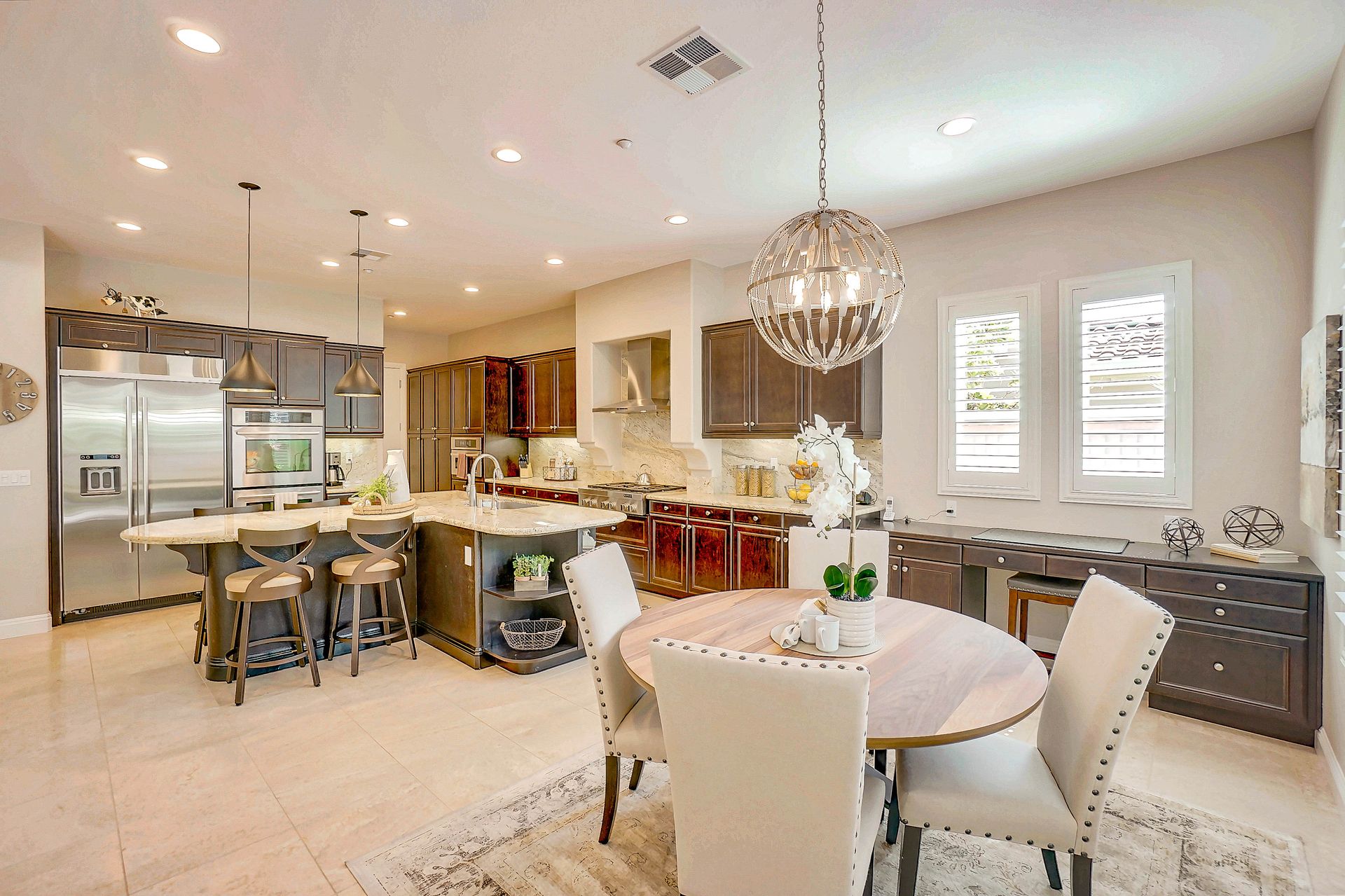 You won't want to miss this meticulously maintained home. This stunning 'Tropez' model features many upgrades and amenities. The gourmet kitchen has granite countertops, a breakfast bar, stainless steel appliances, a Jenn-Air refrigerator/freezer, a six-burner gas stove and more. There is a butler pantry and a wine refrigerator too! Work from home in the office with a built-in custom bookcase/desk. Recently painted interior, updated carpet and plantation shutters throughout. The romantic, spacious primary bedroom leads to the oversized bathroom with double entry walk-in closets. The second bedroom is a junior master suite. The great room has a built-in entertainment center and allows natural lighting throughout with the expansive windows opening to the colorfully landscaped backyard. The backyard has an extended stamped patio and a newer insulated patio cover. Trilogy at the Vineyards is a 55+ Resort Community with a gym, spa, indoor/outdoor pools, library, tennis courts and more! The garage has custom storage cabinets, workbench and overhead storage racks. Prepaid solar lease!