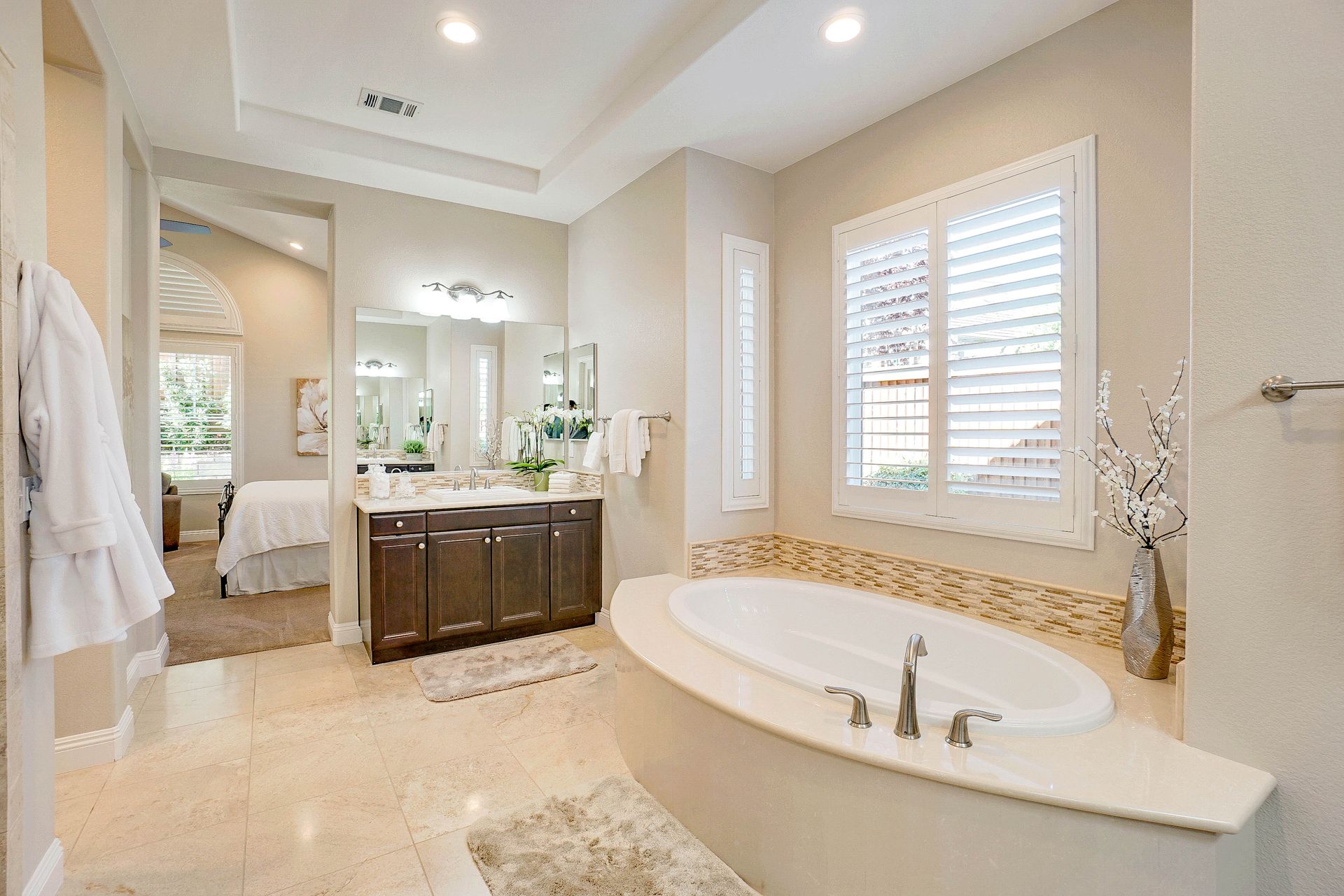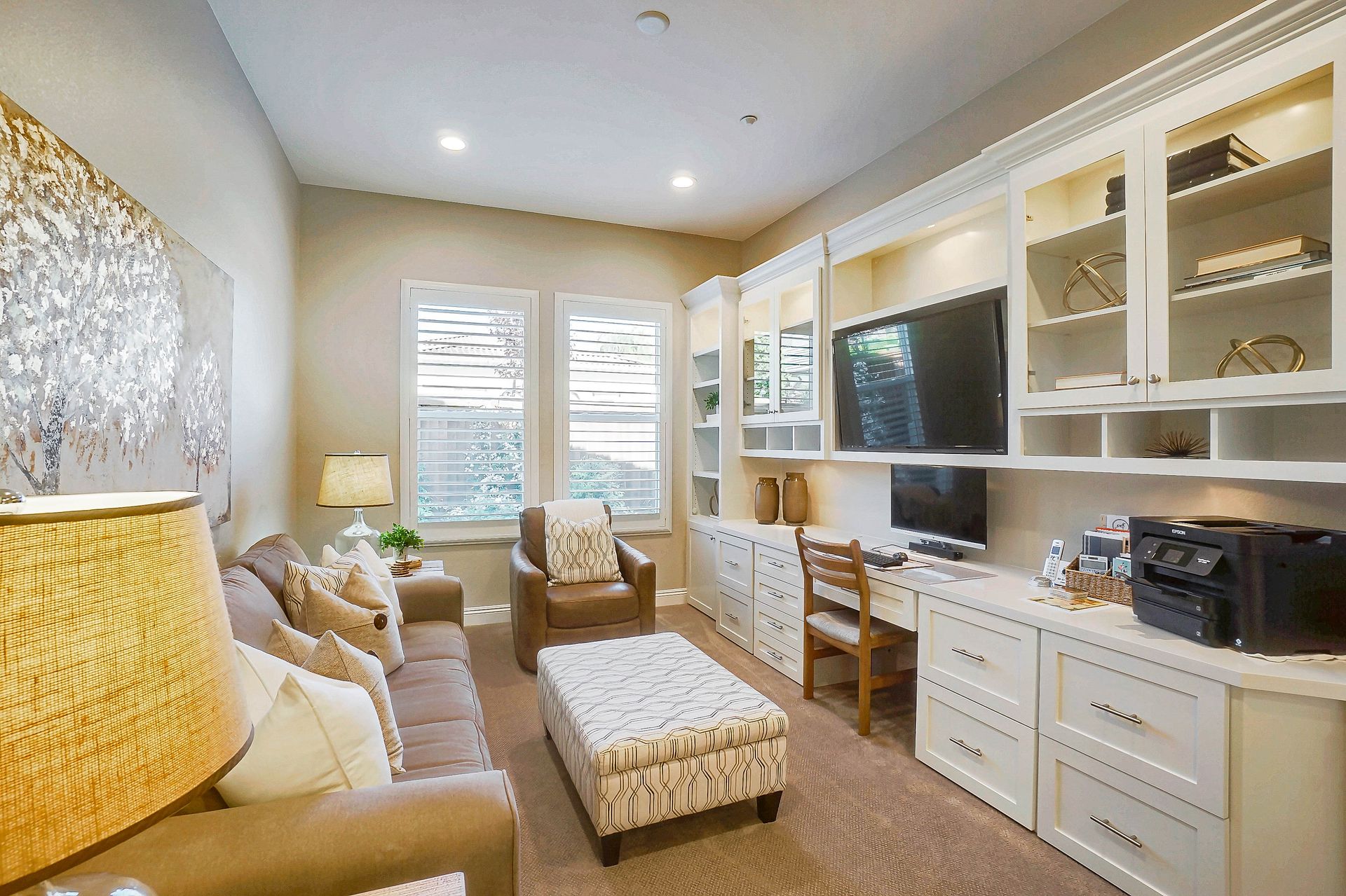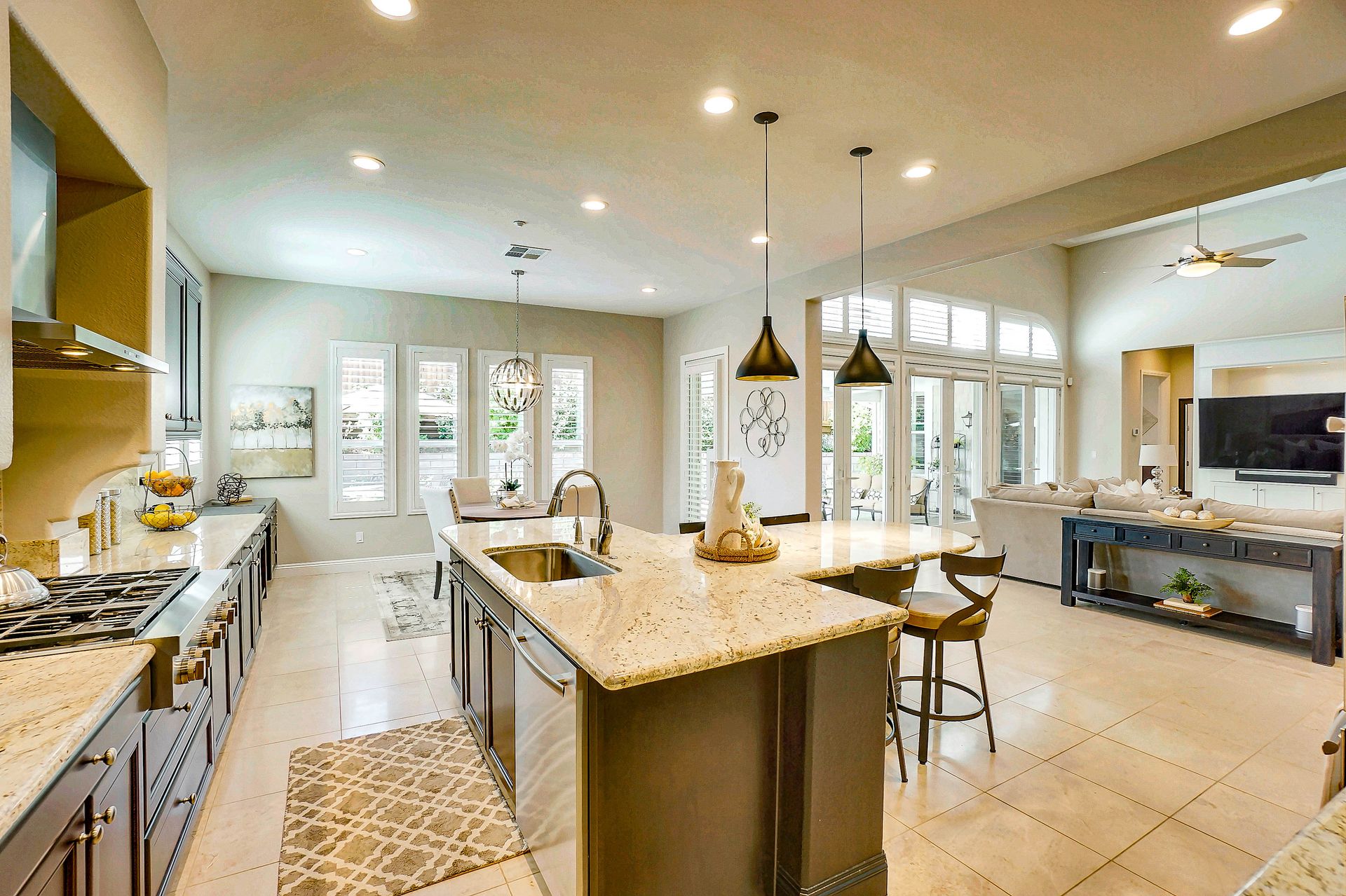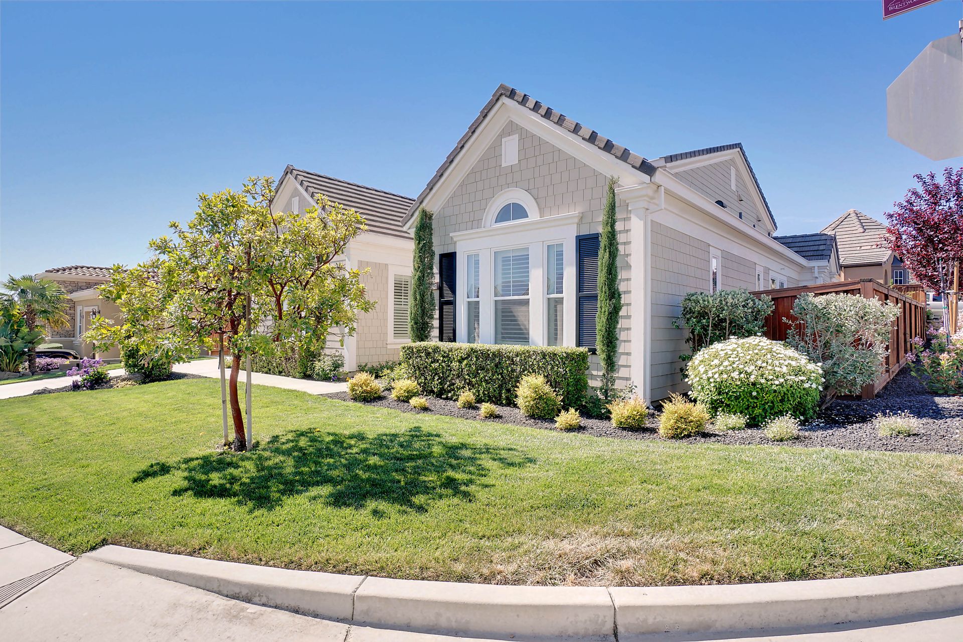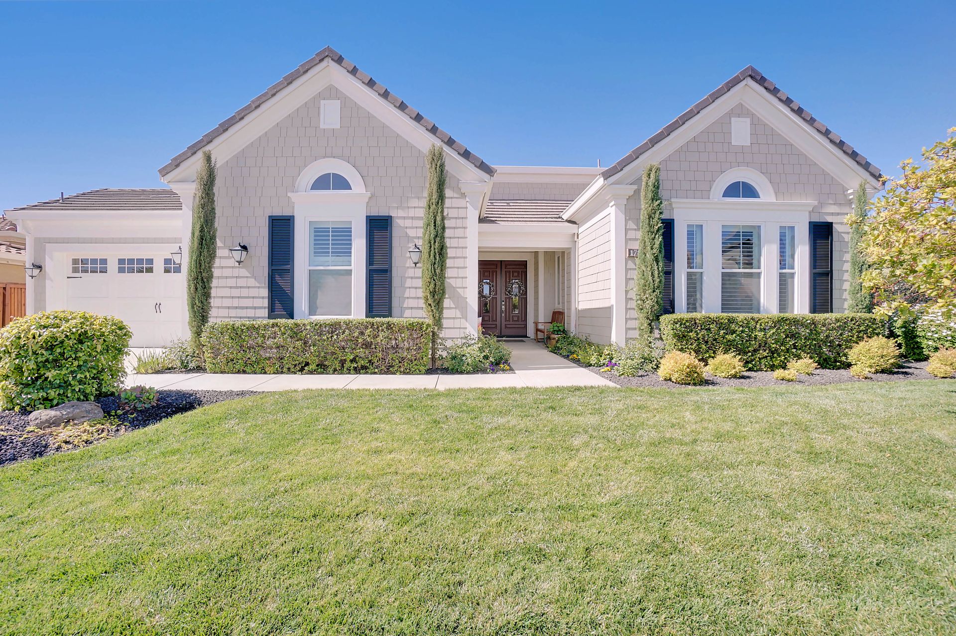 You won't want to miss this meticulously maintained home. This stunning 'Tropez' model features many upgrades and amenities. The gourmet kitchen has granite countertops, a breakfast bar, stainless steel appliances, a Jenn-Air refrigerator/freezer, a six-burner gas stove and more. There is a butler pantry and a wine refrigerator too! Work from home in the office with a built-in custom bookcase/desk. Recently painted interior, updated carpet and plantation shutters throughout. The romantic, spacious primary bedroom leads to the oversized bathroom with double entry walk-in closets. The second bedroom is a junior master suite. The great room has a built-in entertainment center and allows natural lighting throughout with the expansive windows opening to the colorfully landscaped backyard. The backyard has an extended stamped patio and a newer insulated patio cover. Trilogy at the Vineyards is a 55+ Resort Community with a gym, spa, indoor/outdoor pools, library, tennis courts and more! The garage has custom storage cabinets, workbench and overhead storage racks. Prepaid solar lease!