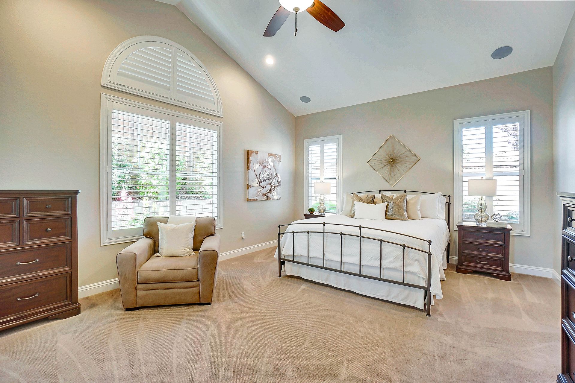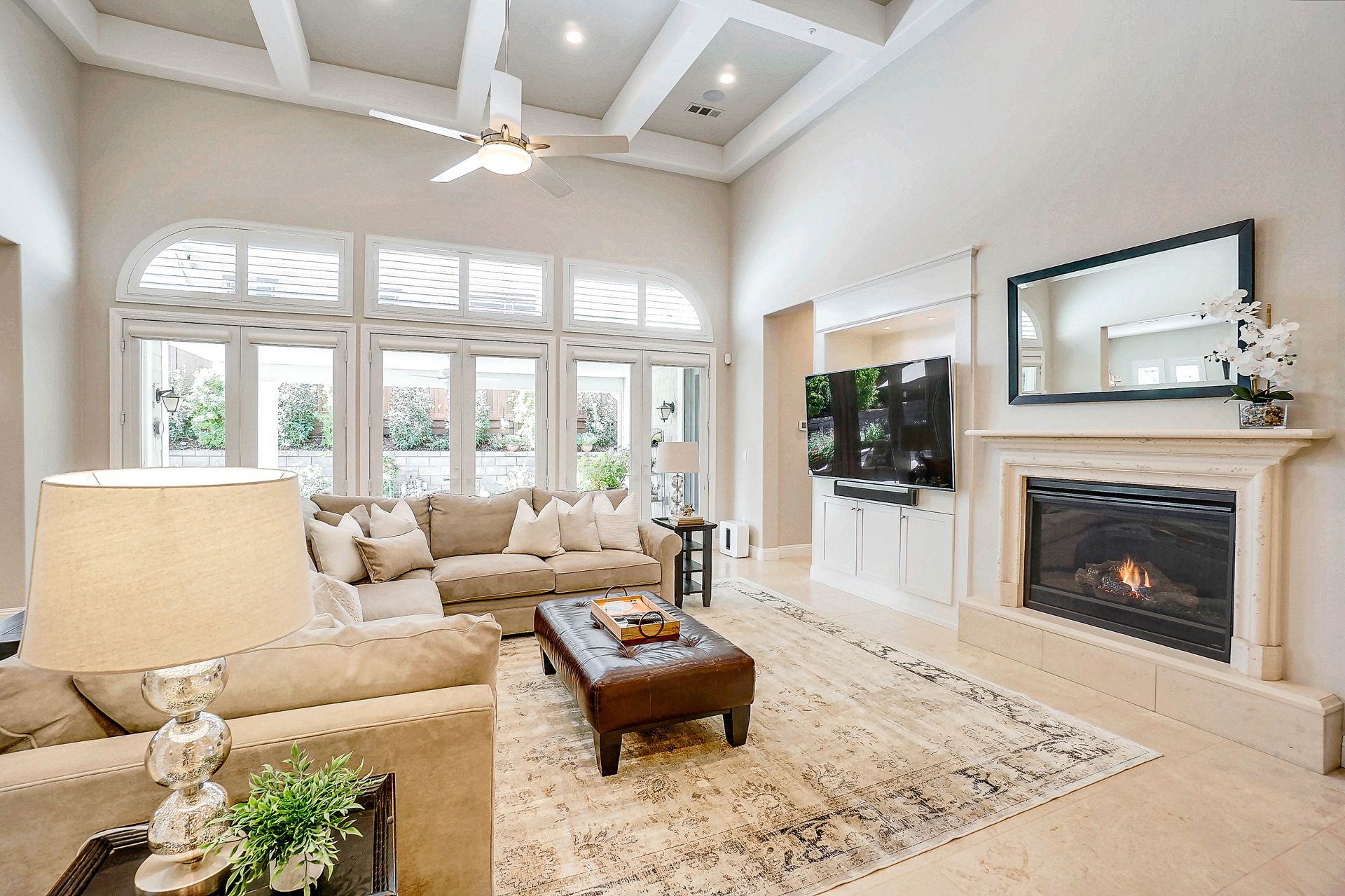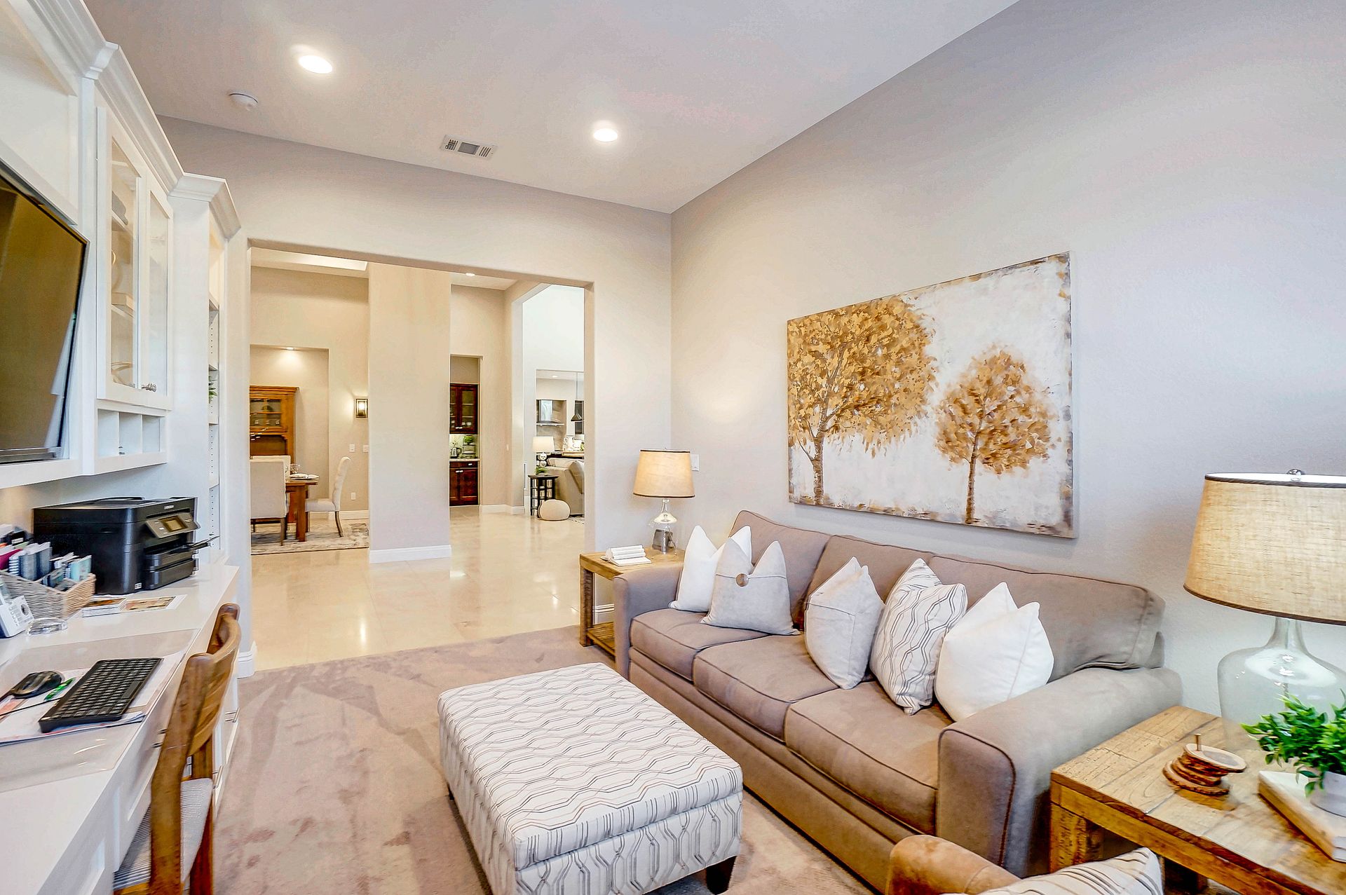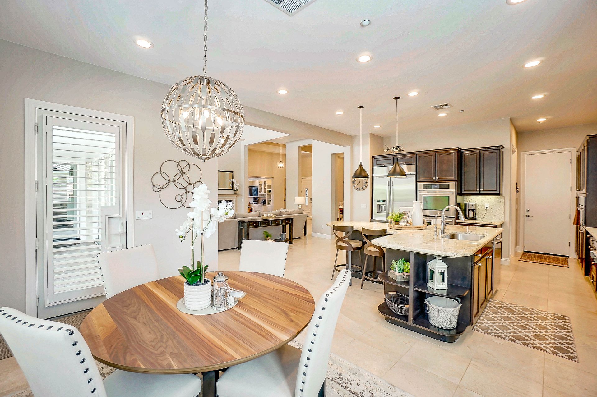 You won't want to miss this meticulously maintained home. This stunning 'Tropez' model features many upgrades and amenities. The gourmet kitchen has granite countertops, a breakfast bar, stainless steel appliances, a Jenn-Air refrigerator/freezer, a six-burner gas stove and more. There is a butler pantry and a wine refrigerator too! Work from home in the office with a built-in custom bookcase/desk. Recently painted interior, updated carpet and plantation shutters throughout. The romantic, spacious primary bedroom leads to the oversized bathroom with double entry walk-in closets. The second bedroom is a junior master suite. The great room has a built-in entertainment center and allows natural lighting throughout with the expansive windows opening to the colorfully landscaped backyard. The backyard has an extended stamped patio and a newer insulated patio cover. Trilogy at the Vineyards is a 55+ Resort Community with a gym, spa, indoor/outdoor pools, library, tennis courts and more! The garage has custom storage cabinets, workbench and overhead storage racks. Prepaid solar lease!
