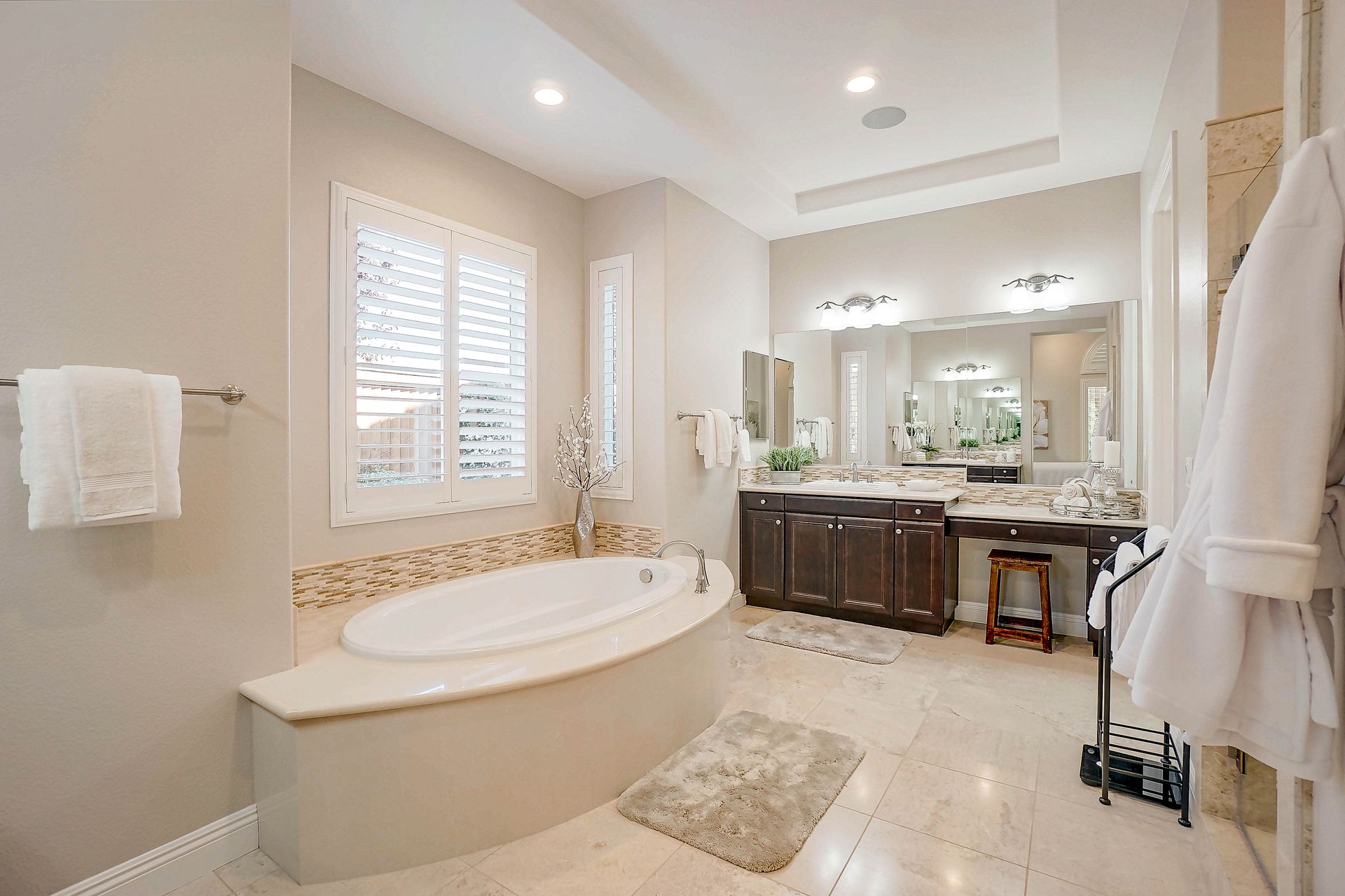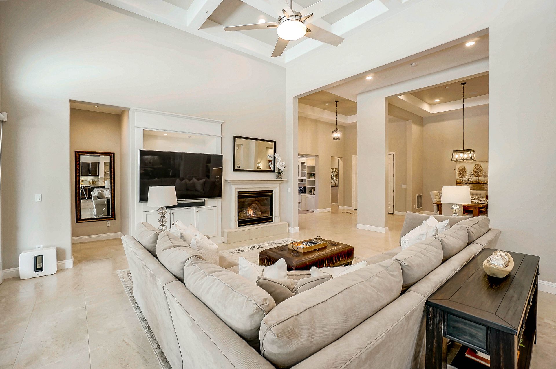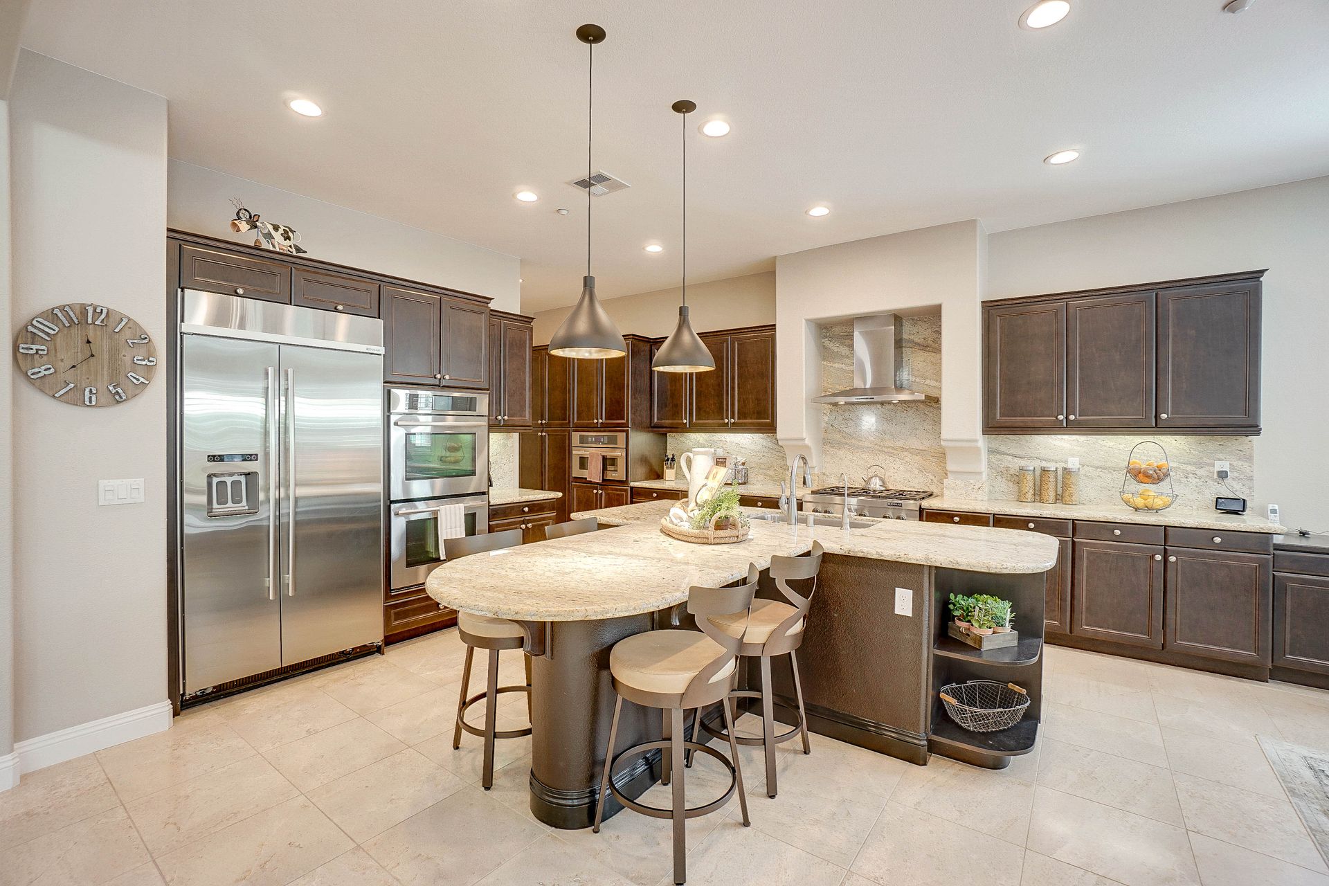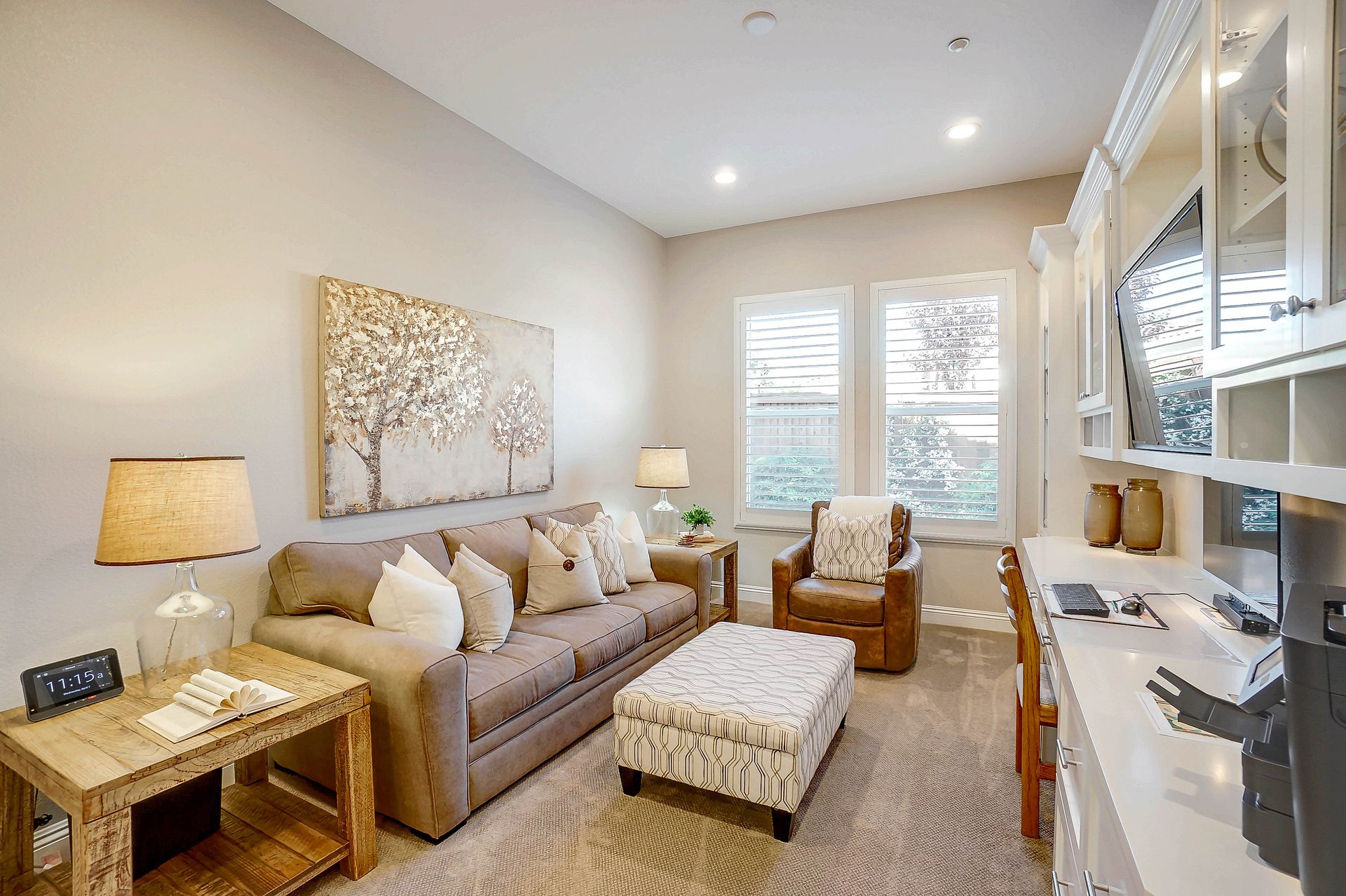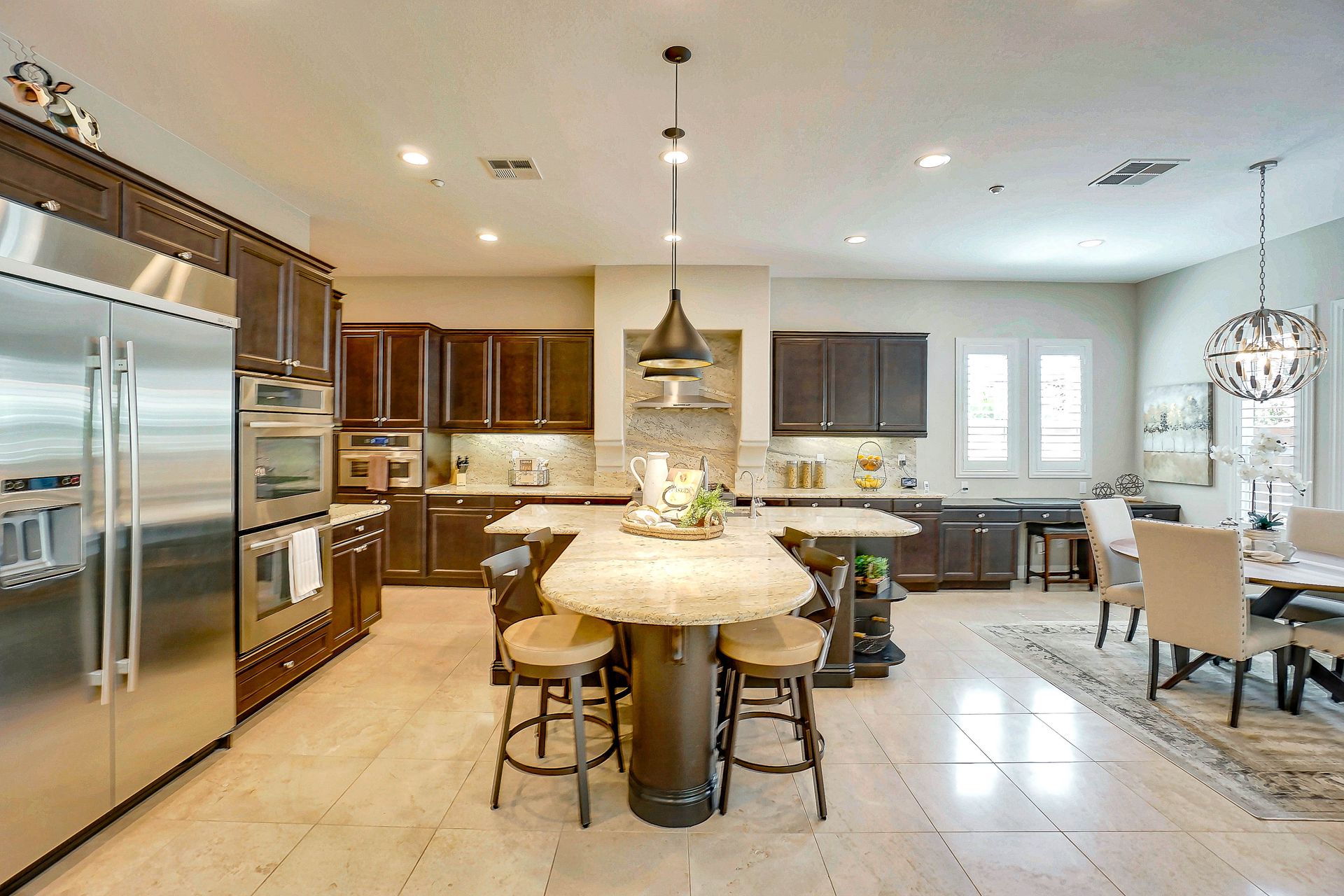 You won't want to miss this meticulously maintained home. This stunning 'Tropez' model features many upgrades and amenities. The gourmet kitchen has granite countertops, a breakfast bar, stainless steel appliances, a Jenn-Air refrigerator/freezer, a six-burner gas stove and more. There is a butler pantry and a wine refrigerator too! Work from home in the office with a built-in custom bookcase/desk. Recently painted interior, updated carpet and plantation shutters throughout. The romantic, spacious primary bedroom leads to the oversized bathroom with double entry walk-in closets. The second bedroom is a junior master suite. The great room has a built-in entertainment center and allows natural lighting throughout with the expansive windows opening to the colorfully landscaped backyard. The backyard has an extended stamped patio and a newer insulated patio cover. Trilogy at the Vineyards is a 55+ Resort Community with a gym, spa, indoor/outdoor pools, library, tennis courts and more! The garage has custom storage cabinets, workbench and overhead storage racks. Prepaid solar lease!